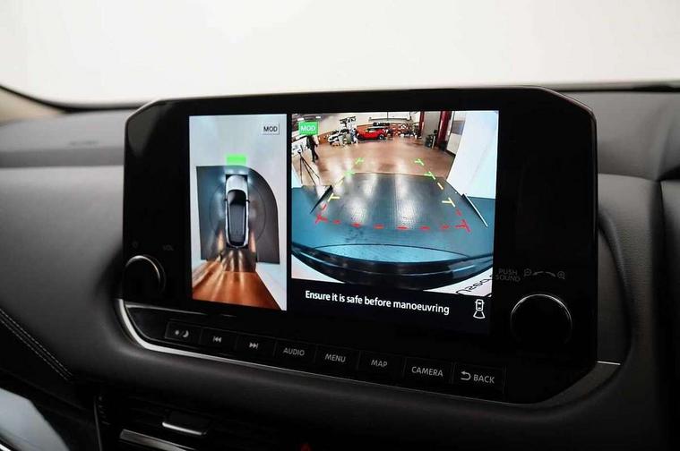 Android auto/Apple CarPlay (Wired), Blind spot warning, Drive modes (sport, normal, eco), Electric speed sensitive power steering, Emergency and breakdown call, Front and rear parking sensors, Full Digital 12.3" TFT Digital Combimeter, Google maps services - search, weather, 3D maps and Google street view, Idle stop/start system, Intelligent around view monitor, Intelligent Cruise control (ICC), Intelligent driver alert system, Intelligent forward collision warning, Intelligent lane intervention, Lane departure prevention, Lane departure warning system, Maximum speed limiter, Moving object detection, Nissan connect 12.3 inch touchscreen infotainment system, Nissan connect navigation, Push button starter, Rear cross traffic alert, Rear view camera, Remote control services - door locks, lights, horn and car locator, Telematics - notifications and connectivity services, TomTom live traffic services, Traffic sign recognition with legal speed adjustment, Trip computer, Virtual personal assistant and firmware over the air capability, Wireless apple carplay, 6 speakers, AM/FM audio system with DAB, Bluetooth audio streaming, Front USB connections (Type-A and Type-C), Rear USB charging only ports (Type-A and Type-C), Auto dimming rear view mirror, Auto rear wiper when reversing, Automatic hazard signal with emergency stop signal, Body colour mirror caps, Body coloured door handles, Bodyside mouldings, Chrome side window finisher, Door handle with button, Electric auto folding door mirrors, Electrically adjustable and heated door mirrors with LED turn indicator, Follow me home headlights, High beam assist, Intelligent auto headlights, LED daytime running lights, LED Headlights, LED rear lights, One touch front and rear electric windows with remote opening and closing, Partially body coloured bumpers, Privacy glass, Rear bumper with graphite insert, Rear reversing light (bulb lighting), Rear roof spoiler, Rear side wing doors, Rear styling plate, Shark fin antenna, Splash free rain sensing wipers, Super UV and infrared cut glass, Three blink turn signal, 12v power socket in dashboard and luggage, 2x Rear coat hooks, 3 bench rear seats in 2nd row, 3 rear headrests, 4 folding assist grip, 6 Luggage hooks - 4 on floor, 2 on side, 6-way manually adjustable driver's seat, 60/40 split folding rear seat bench, Ambient lighting around centre console, Centre console storage tray, Chrome interior door handles, Cloth monoform upholstery, Driver and front passenger sunvisors with illuminated vanity mirrors, Driver seat back pocket, Dual zone automatic climate control with pollen filter, Electrically adjustable lumbar support for driver, Front and rear door storage, Front centre console and armrest, Front cupholders x 2, Front door with bottle holders, Glovebox with light, Hard trunk cover, Height adjustable driver's seat, Height adjustable front headrests, Height adjustable passenger seat, Leather shift knob, Leather steering wheel, Luggage board system, Luggage space lighting, Manually adjustable passenger (slide recline + lifter), Multifunction steering wheel, Passenger seat back pocket, Rear armrest with 2 cupholders, Rear door bottle holders, Single front passenger seat, Soft PVC kneepad, Steering wheel switches, Sunglasses holder, Tilt/telescopic adjustable steering wheel, Two rear isofix child seat anchorage points with top tether, Welcome light and console tray ambient lighting, 3x3 point rear seatbelt pretensioners + load limiters, ABS with EBD and brake assist, Active brake limited slip, Auto hold function, Child locks on rear doors, Curtain and front side, far side airbags, Driver and passenger airbags, Driver, passenger and 2nd row rear seat belt reminder, Electronic parking brake, Front seatbelt pretensioners + load limiters, Height adjustable front seatbelts, Hill start assist, Intelligent blind spot intervention, Intelligent front emergency braking with pedestrian, cyclist recognition and junction assist, Intelligent rear automatic braking, Tyre pressure monitoring system, Vehicle dynamic control, Capless fuel filler, Engine immobiliser, Intelligent Key, Remote central door locking with deadlocking, Thatcham Cat.1 alarm, Interior instrumental panel B finisher, 18" Diamond cut alloy wheels, Tyre puncture repair kit,