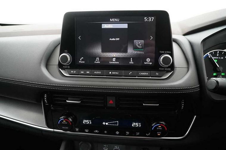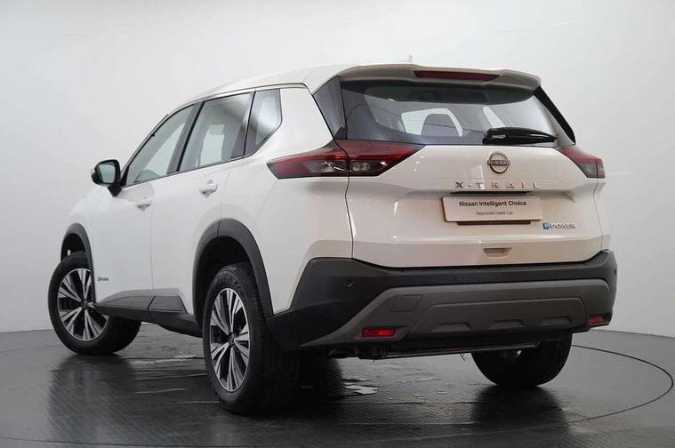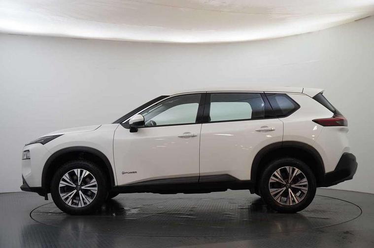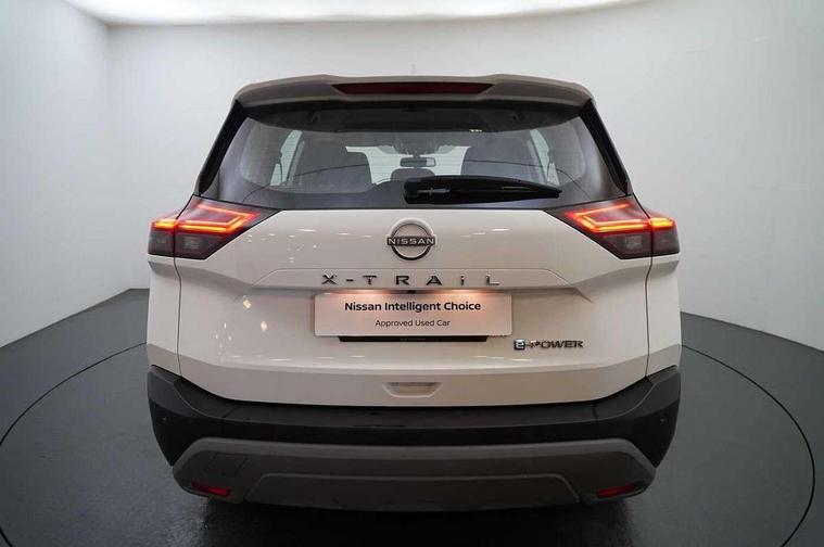 Android auto/Apple CarPlay (Wired), Blind spot warning, Drive modes (sport, normal, eco), e-Pedal step, Electric speed sensitive power steering, Emergency and breakdown call, Front and rear parking sensors, Idle stop/start system, Intelligent Cruise control (ICC), Intelligent driver alert system, Intelligent forward collision warning, Intelligent lane departure warning, Intelligent lane intervention, Intelligent lane keep assist, Maximum speed limiter, Moving object detection, Nissan connect 8" touchscreen infotainment system, Push button starter, Rear cross traffic alert, Rear view camera, Traffic sign recognition with legal speed adjustment, Trip computer, 6 speakers, AM/FM audio system with DAB, Bluetooth audio streaming, Front USB connections (Type-A and Type-C), 3rd brake light, Auto dimming rear view mirror, Auto rear wiper when reversing, Body colour mirror caps, Body coloured door handles, Bodyside mouldings, Chrome side window finisher, e-POWER badging, Electric auto folding door mirrors, Electrically adjustable and heated door mirrors, Follow me home headlights, High beam assist, Intelligent auto headlights, LED daytime running lights, LED Headlights, LED rear lights, One touch front and rear electric windows with remote opening and closing, Partially body coloured bumpers, Rain sensing wipers, Rear reversing light (bulb lighting), Rear roof spoiler, Rear side wing doors, Rear styling plate, Shark fin antenna, Splash free wipers, Three blink turn signal, 12v power socket in dashboard and luggage, 3 bench rear seats in 2nd row, 3 rear headrests, 60/40 split folding rear seat bench, Butteryfly console, Chrome interior door handles, Cloth monoform upholstery, Driver and front passenger sunvisors with illuminated vanity mirrors, Driver seat back pocket, Dual zone automatic climate control with pollen filter, Front centre console and armrest, Front cupholders, Front door with bottle holders, Height adjustable driver's seat, Height adjustable front headrests, Height adjustable passenger seat, Leather shift knob, Leather steering wheel, Luggage space lighting, Multifunction steering wheel, Passenger seat back pocket, Rear armrest with 2 cupholders, Rear door bottle holders, Single front passenger seat, Tilt/telescopic adjustable steering wheel, Two rear isofix child seat anchorage points with top tether, 3x3 point rear seatbelt pretensioners + load limiters, ABS with EBD and brake assist, Active brake limited slip, Auto hold function, Child locks on rear doors, Curtain and front side, far side airbags, Driver and passenger airbags, Driver, passenger and 2nd row rear seat belt reminder, Electronic parking brake, Front seatbelt pretensioners + load limiters, Height adjustable front seatbelts, Hill start assist, Intelligent blind spot intervention, Intelligent front emergency braking with pedestrian, cyclist recognition and junction assist, Intelligent rear automatic braking, Tyre pressure monitoring system, Vehicle dynamic control, Engine immobiliser, Intelligent Key, Remote central door locking with deadlocking, Thatcham Cat.1 alarm, 18" Diamond cut alloy wheels, Tyre puncture repair kit,