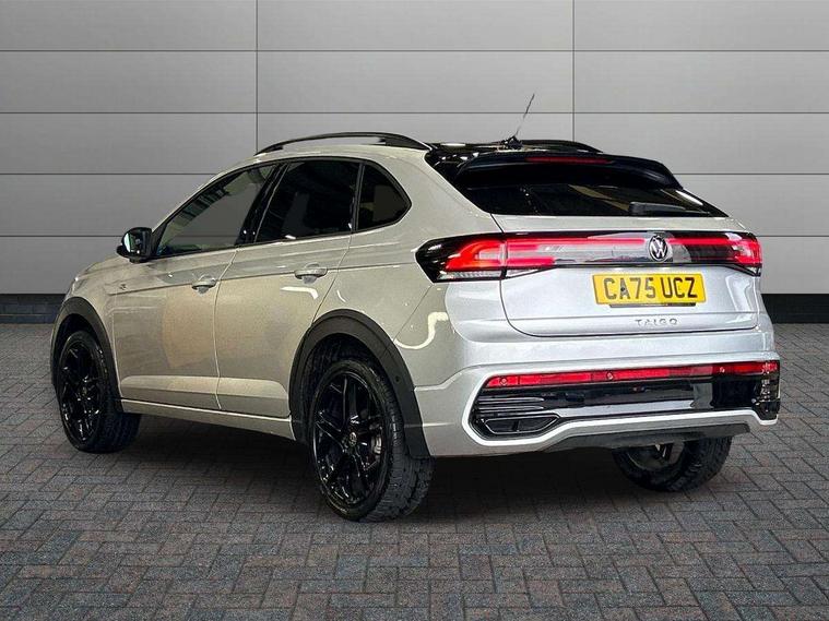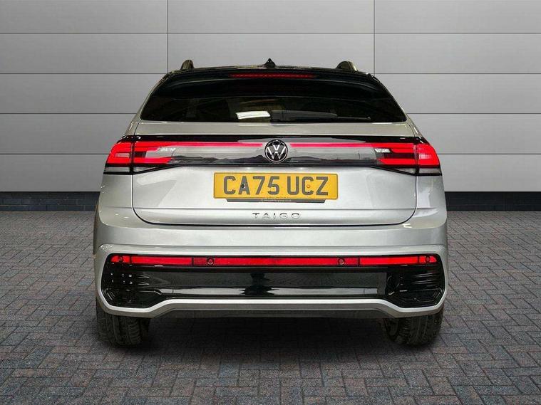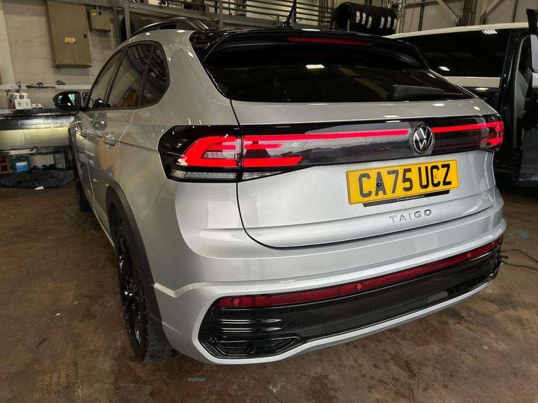 Adaptive cruise control, Advanced driver attention and drowsiness monitor, Digital cockpit pro - 10.25" high resolution TFT dash display screen with customizable menus and information, Driving profile selection, e-Call (emergency call), Power Steering, Travel assist including emergency assist, Washer fluid level indicator, Wireless Charging including Bluetooth, Start-stop system with battery regeneration (recuperation - energy recovery during braking), XDS electronic differential lock for improved traction and handling, Digital radio reception (DAB+), WeConnect plus, Ambient lighting with logo projection, Aspherical driver's exterior mirror, Auto headlights, Body coloured bumpers, Body coloured door handles, Cornering headlights, Electric windows, External USB type C socket and charging sockets, LED rear combination lamp, LED third brake light, Left convex exterior mirror, Power folding adjustable/heated exterior mirrors and front passenger exterior mirror lowering function, Rear fog light on one side, reversing light on both sides, Rear side wing doors, Rear wash/wipe with intermittent wipe setting, 12V socket in centre console, 2 front reading lights, 3 rear head restraints, 3 seat bench in 2nd row, Air care climatronic air conditoning system with active combination filter and 2-zone temperature control, Black carpets, Black roof lining, Child seat anchor for child seat system i-Size, 2x top tether and child seat anchor in front on front passenger side, Chrome bezel for instrument cluster, vents, door handles + gear shift, Driver and front passenger seat height adjustment, Front + rear carpet mats, Front centre armrest, Front footwell illumination, Front sports comfort seats, Heated front seats, Height and reach adjustable steering wheel, Interior ambient lighting and surround lighting, Karoso artvelours cloth upholstery, Leather trimmed gear knob, Leather wrapped multifunction steering wheel, Luggage compartment floor, Luggage compartment light, Lumbar support for driver's and front passengers seat, Seat covers in grey + titanium black, Single front passenger seat, Split folding backrest with centre armrest and unsplit rear seat bench, Stainless steel pedals, Storage compartment under front seats, Sun visors with illuminated vanity mirrors, Black design pack - Taigo Black Edition, Black roof pack with mirror housing - Taigo, IQ.LIGHT - LED matrix headlights pack - Taigo, Light and Sight pack including High beam assist - Taigo, 2 x 3-point seatbelts/outer rear seats with ECE label, 3-point seat belts in front with pretensioner and height adjustment, 3-point seatbelt for centre rear seat, Adaptive driver and front passenger airbags with passenger airbag deactivation function, Driver and front passenger safety-optimised head restraints, Electronic stability control, Extended and predictive pedestrian/ cyclist protection, Front and rear disc brakes, Front curtain and side airbags with center airbag, Hill start assist, Manual rear child locks, Single tone horn, Tyre pressure loss indicator, Anti-theft alarm system with interior monitoring, backup horn, and towing protection, Grey anodised matte decorative inserts in dash and front door panels, 18" York black alloy wheels with anti theft wheel bolts, Breakdown kit, Low rolling resistance tyres,
