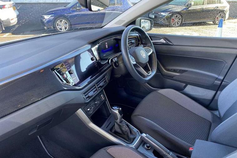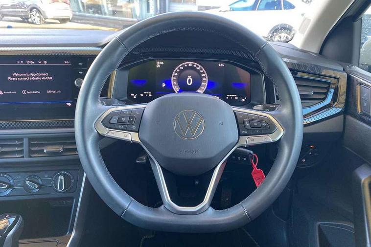 Adaptive cruise control with follow-to-stop and speed limiter, Bluetooth mobile phone interface, Driver alert system, Emergency call service, Front assist system, Power assisted speed sensitive steering, Preparation for We connect and We connect plus, Speedo and rev counter, electronic odometer, trip, service interval display and fuel gauge, Standard rear axle, Travel Assist - Lane keeping system and traffic jam assist, Travel assist including emergency assist, Trip computer, Warning signal and warning light for front and rear seatbelts not fastened, Washer fluid level indicator, Wireless app connect, Front wheel drive, Rear shock absorpion, Start-stop system with battery regeneration (recuperation - energy recovery during braking), DAB Digital radio, Diversity antenna for FM reception, Front and rear 6 speakers, Automatic dimming interior rear view mirror, Body colour bumpers, Body colour door handles, Body colour door mirrors, Electric front windows, Heat insulating darkened glass in side and rear windows, Heat insulating glass windscreen, Power folding adjustable/heated exterior mirrors and front passenger exterior mirror lowering function, Rain sensor, Rear electric windows, Rear fog light, Rear side wing doors, Rear windscreen washer and wiper with interval delay, Third brake light, 12V power socket in centre console, 2 front and 2 rear reading lights, 2 USB-C ports in the front, 2 USB-C charging sockets on the center console in the rear, 3 rear head restraints, 60/40 split folding rear seat and rear seat bench not split, Chrome plated radiator grille inserts, air vent surrounds and light switch surrounds, Door and side trim panel, Driver and front passenger seat height adjustment, Driver/passenger sunvisors with illuminated vanity mirrors, Front centre armrest, Front seat backrest storage pockets, Front standard seats, Handbrake lever handle in leather, Hartley/Thomas cloth upholstery, Headliner in recycled material, Isofix child seat preparation easy-fit (for two outer rear seats, and front passenger seat) compatible with I-size, Leather trimmed gear knob, Luggage compartment cover, Luggage compartment floor, Luggage compartment lighting, Single front passenger seat, Standard pedal cluster, Three spoke leather wrapped multifunction steering wheel with shifting paddles, Light and vision pack - Polo, 3 point height adj front seatbelts + pretensioners, 3x3 point rear seatbelts, ABS, Driver and front passenger airbag with front passenger airbag deactivation, Drivers and front passengers safety optimised head restraints, ESC (Electronic stability control) + EDL (Electronic Differntial lock) and ASR (Traction control), Extended and predictive pedestrian/ cyclist protection, Front curtain and side airbags with center airbag, Front disc brakes, Hill hold control, Manual child lock in rear doors, Rear drum brakes, Single tone horn, Tyre pressure loss indicator, Alarm with interior protection, Anti-theft alarm system with interior monitoring, backup horn, and towing protection, Anti-theft wheel bolts, Electronic engine immobiliser, Lava stone black gloss/matt decorative inserts in dash and front door panels, Low rolling resistance tyres,