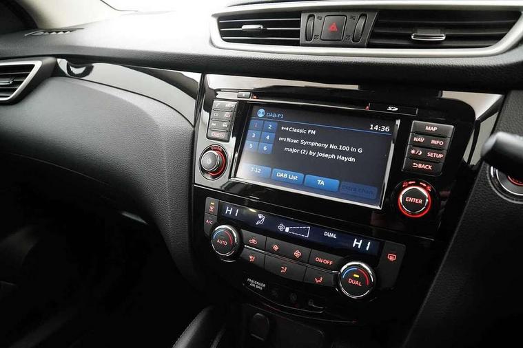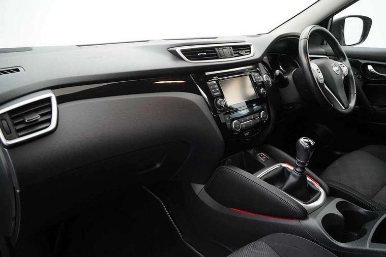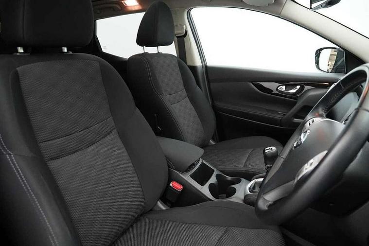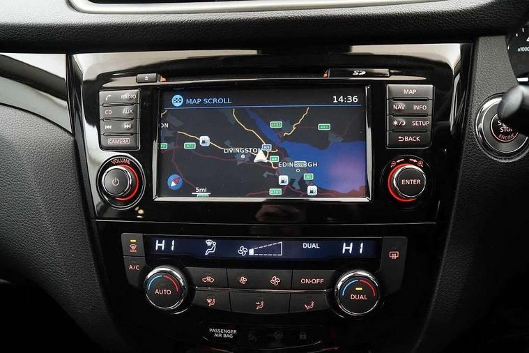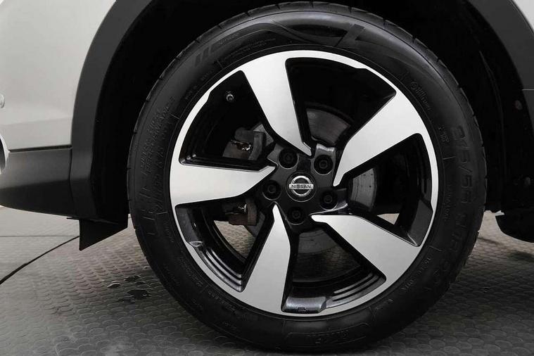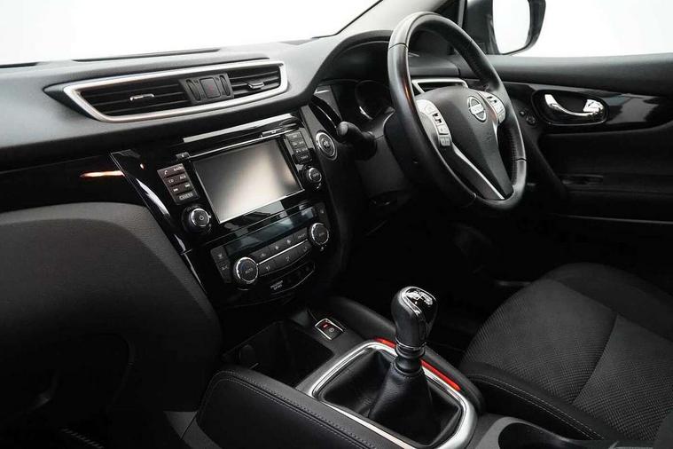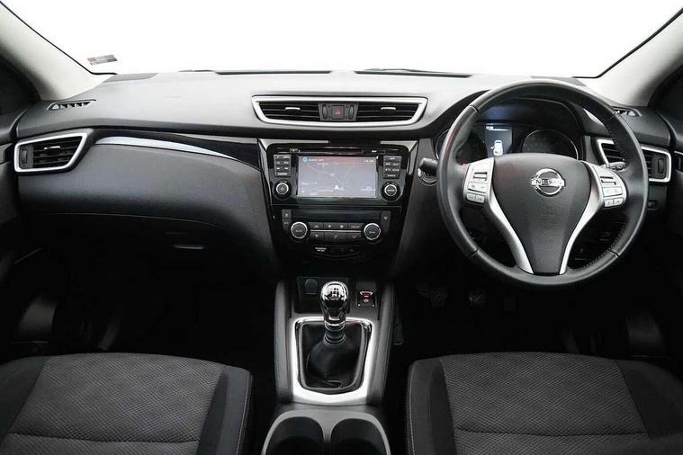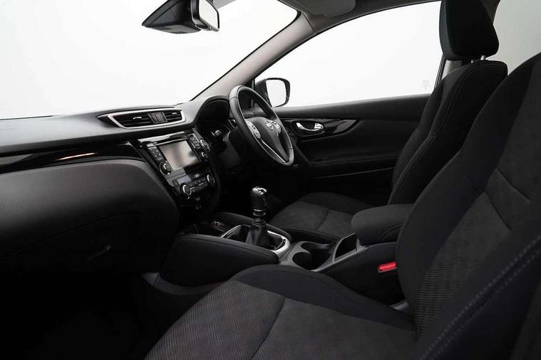 5" TFT driver information centre, 7" touch screen, Around View Monitor, Bluetooth phone integration system, Cruise control, Front and rear parking sensors, Lane departure warning system, Nissan connect sat nav system, Push button starter, Service interval indicator, Speed limiter, Speed sensitive power steering, Traffic sign recognition, Trip computer, 6 speakers, DAB radio/CD player, Steering wheel mounted audio controls, USB/aux input socket, 2 speed wipers+variable intermittent wipe, Automatic headlamp activation, Black honeycomb front grille, Body colour bumpers, Body colour door mirrors and handles, Chrome window surround, Electric folding and heated door mirrors, Electric front/rear windows, Front fog lights with chrome surrounds, High beam assist, Interior mirror with auto anti dazzle, LED daytime running lights, Rain sensor windscreen wipers, Rear privacy glass, Rear wiper, 12V socket, 60/40 split folding rear seat, Ambient interior lighting, Cloth upholstery, Driver's lumbar support, Driver/passenger front seatback pockets, Dual zone climate control, Footwell ambient lighting, Front armrest, Front cupholders x 2, Front headrests, Front seat belt pre-tensioners with load limiters, Height adjustable driver's seat, Height adjustable passenger seat with lumbar support, Illuminated glovebox, Isofix child seat preparation, Leather gearknob, Leather steering wheel, Luggage area divider, Map reading lamp, Pollen filter, Rake/reach adjustable steering wheel, Rear armrest with 2 cupholders, Rear headrests, ABS, brake assist and EBD, Active Trace Control, Child locks on rear doors, Curtain airbags, Driver/front passenger airbag, Electronic parking brake, ESP + traction control, Forward emergency braking, Height adjustable front seatbelts, Hill start assist, Side airbags, Three 3 point rear seatbelts, Tyre pressure monitoring system, Warning triangle and first aid kit, Alarm, Immobiliser, Intelligent Key, Remote central locking, 18" Diamond cut alloy wheels, Tyre puncture repair kit,