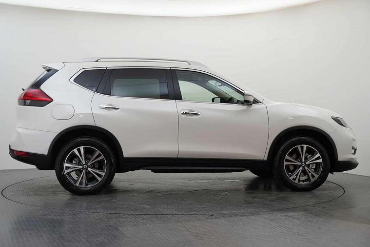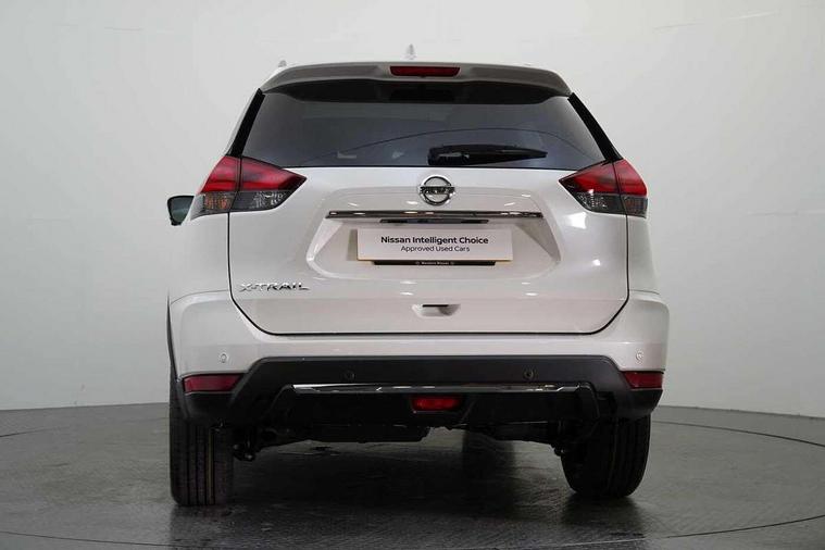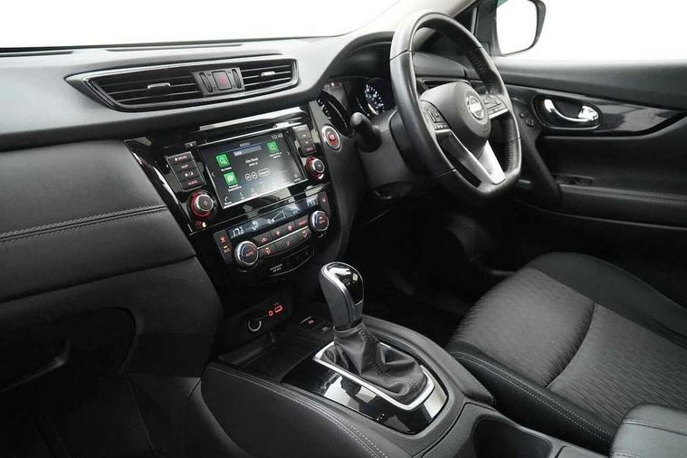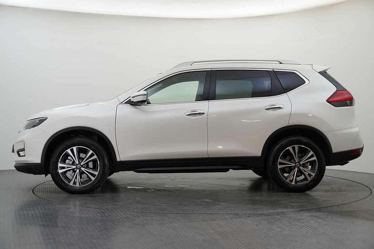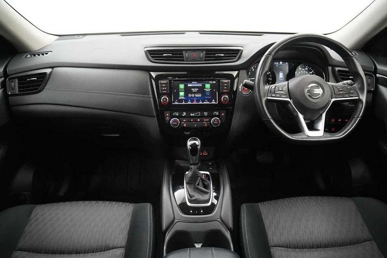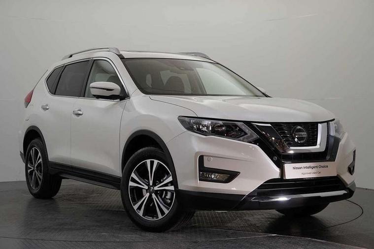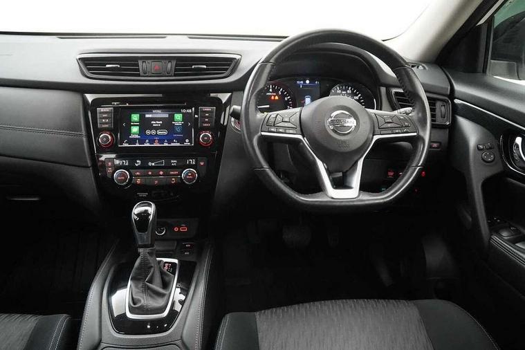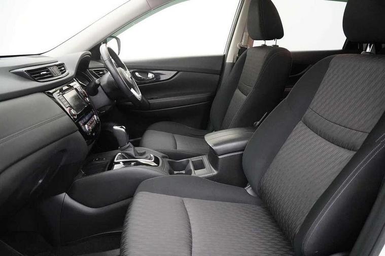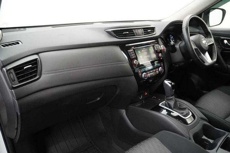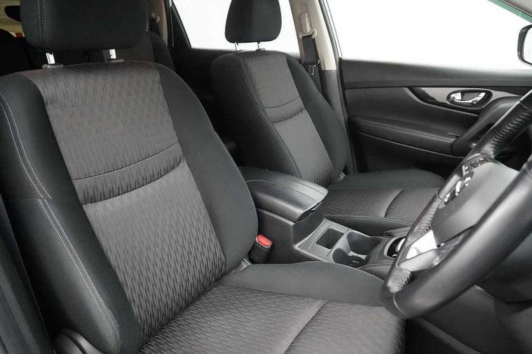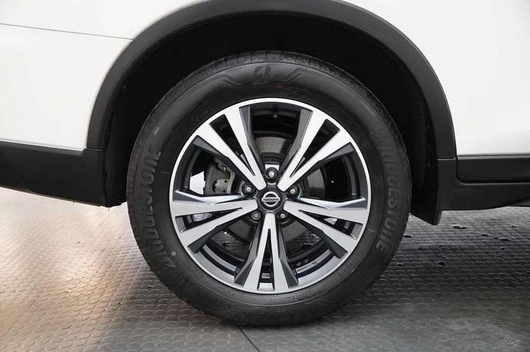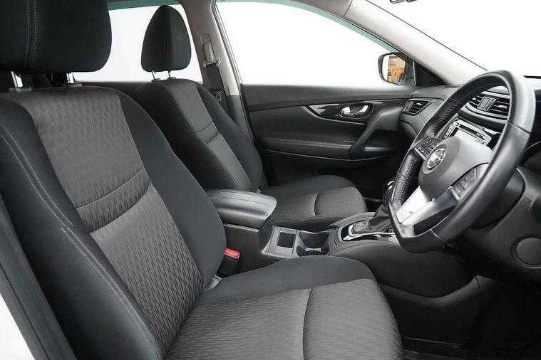 Bluetooth with microphone, Cruise control + speed limiter, Driver attention alert system, Front and rear parking sensors, High definition full colour TFT screen combimeter, Intelligent around view monitor, Lane departure warning system, New NissanConnect 7" touchscreen navigation and entertainment system, One touch automatic opening power tailgate, PAS, Push button start, Smartphone integration with Apple CarPlay and Android auto, Traffic sign recognition, Trip computer, Nissan chassis control (intelligent ride control, intelligent trace control, intelligent engine brake), DAB/AM/FM/CD Audio system with 6 speakers, Rear USB port, Steering wheel mounted audio controls, USB/aux input socket, Anti dazzle rear view mirror, Automatic headlights, Body colour door mirrors, Chrome door handles, Chrome window surround, Electric folding door mirrors, Electric heated mirrors with side turn signal light, Front and rear electric windows, Front fog lights, Halogen headlights, High beam assist, LED daytime running lights, Panoramic sunroof with one touch shade, Rain sensing windscreen wipers, Rear privacy glass, Shark fin antenna, 3 rear headrests, 60:40 rear split folding, reclining and sliding bench, Centre console storage box/armrest, Cloth upholstery, Dual zone automatic air conditioning with pollen filter, Front and rear door pockets with bottle holders, Front row ventilated cupholders, Front/rear armrests, Height adjustable front headrests, Individual rear reading lights, ISOFIX childseat anchorage points (rear), Leather D shaped steering wheel, Leather steering wheel and gear knob, Luggage board system, Manually adjustable driver's seat (side, recline, lifter, lumbar), Manually adjustable passenger (slide recline + lifter), Tilt/telescopic adjustable steering wheel, 3 point seatbelts on all seats, 6 airbags - Driver, front passenger, curtain and side airbags, ABS, Child locks on rear doors, EBD + Brake Assist, Electric parking brake, ESP + traction control, Intelligent emergency braking with pedestrian recognition, Seatbelt warning, Tyre pressure monitoring system, Engine immobiliser, Intelligent Key, Remote control door locking with superlocking, Thatcham alarm, 18" Alloy wheels, Spare wheel,