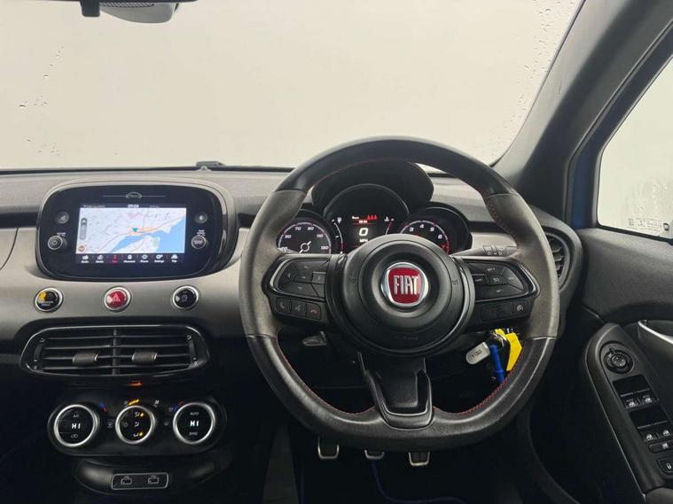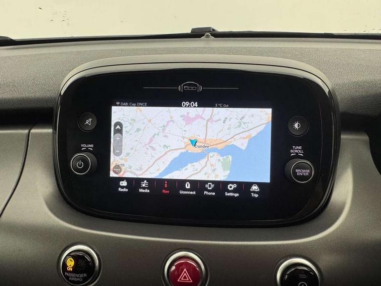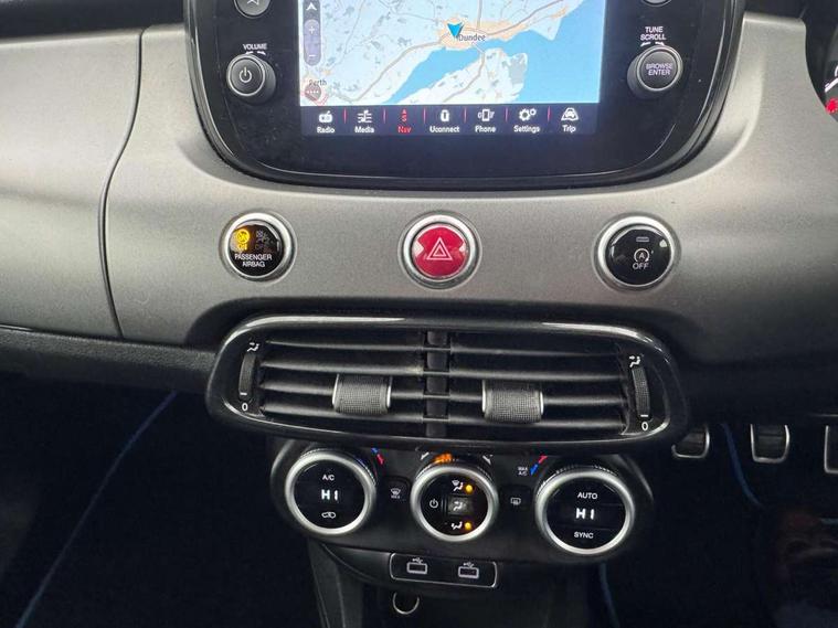 3.5" TFT colour display with specific cluster, Apple car play/Android Auto, Lane assist with intelligent speed assist and traffic sign recognition, Power assist steering, Rear parking sensor, Stop/start system, Uconnect 7" HD Live touchscreen radio with 3D Nav, bluetooth, USB, Aux-in and DAB, Active roll mitigation, Lower ride height, 2 USB ports, Body colour bumpers and side skirting, Body coloured wheel arch extensions, Dark grey electrically adjustable door mirrors, Dark grey fog light surround, Dark tinted rear windows, Dual chrome exhaust, Dusk sensor, Electric front and rear windows, Full LED headlights, Heated rear windows with wash wipe, LED daytime running light and rear braking light, LED front fog lights, Myron grey inserts tailgate, door handles, front moulding, Rain sensor, Rear spoiler, Rear wiper, Silver Sport badge on fender, 60/40 split folding rear seat, Auto dual-zone climate control system, Auxilliary 12V power socket, Cooled glovebox, Courtesy light on sunvisor, Dark grey headliner and pillars, Front head restraints, Height adjustable steering wheel, Parcel shelf, Rear head restraints, Red stitching on steering wheel, Sports seats, Techno leather sport design steering wheel with audio controls, Sport plus pack - 500X, 3x3 point rear seatbelts, 6 airbags - Front, side and window, Electronic parking brake, ESC including ASR, MSR, Hill Holder, ABS, EBD, ERM, DST, BAS, Height adjustable seatbelts, Manual passenger airbag deactivation function, Tyre pressure monitoring system, Deadlocks, Immobiliser, Remote central locking, Dark ambient Myron details, Titanium finished dashboard with Myron 500 logo,