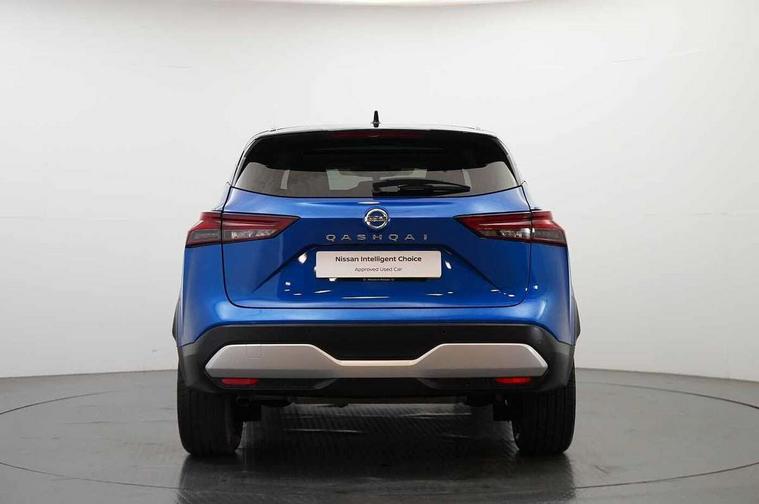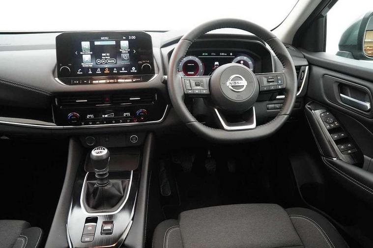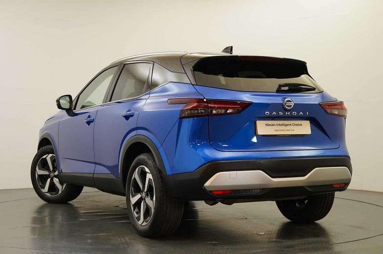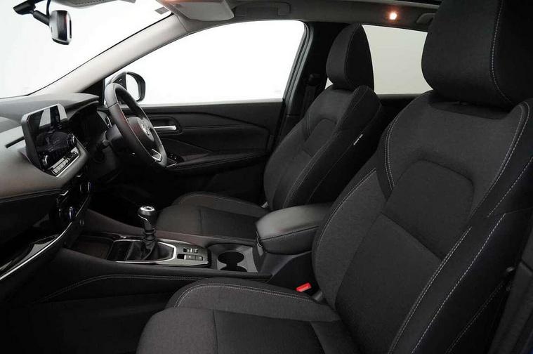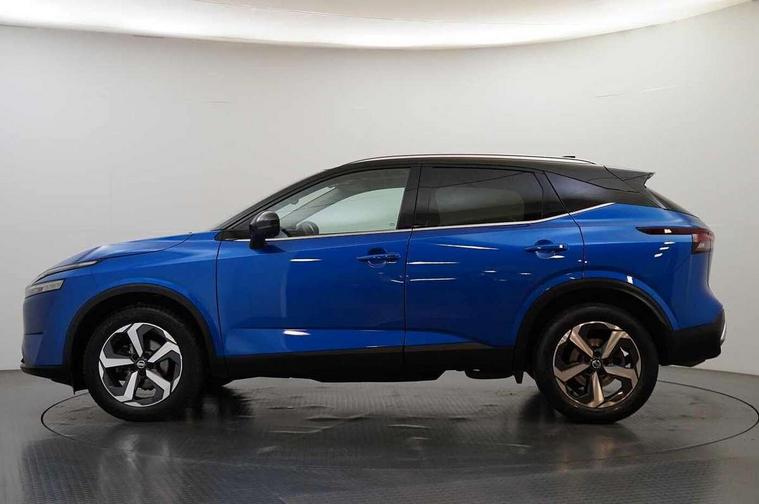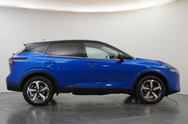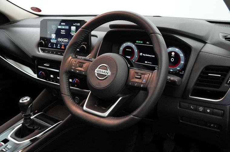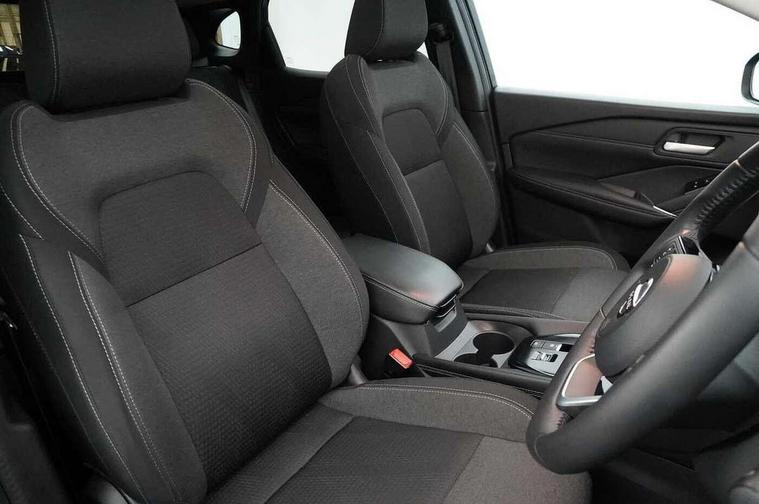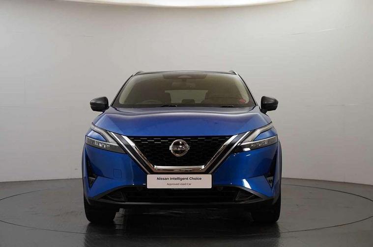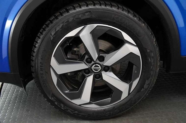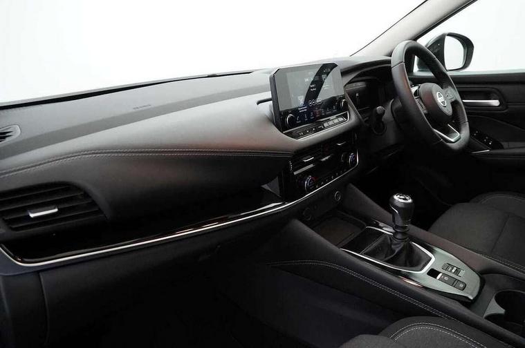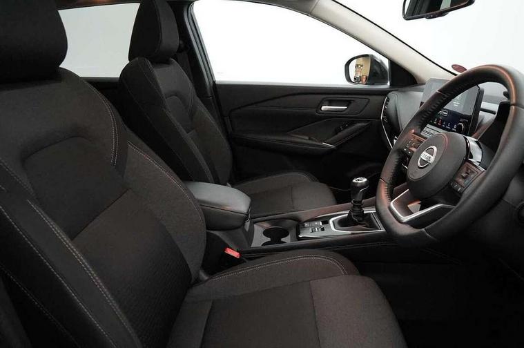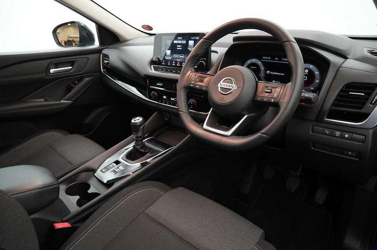 Blind spot warning, Drive modes (sport, normal, eco), Electric speed sensitive power steering, Emergency and breakdown call, Front and rear parking sensors, Full Digital 12.3" TFT Digital Combimeter, Idle stop/start system, Intelligent Cruise control (ICC), Intelligent driver alert system, Intelligent forward collision warning, Intelligent lane intervention, Lane departure prevention, Lane departure warning system, Moving object detection, Push button starter, Rear cross traffic alert, Traffic sign recognition with legal speed adjustment, Trip computer, 6 speakers, AM/FM audio system with DAB, Bluetooth audio streaming, Front USB connections (Type-A and Type-C), Rear USB charging only ports (Type-A and Type-C), 3rd brake light, Auto dimming rear view mirror, Auto rear wiper when reversing, Body colour mirror caps, Body coloured door handles, Bodyside mouldings, Chrome side window finisher, Electric auto folding door mirrors, Electrically adjustable and heated door mirrors with LED turn indicator, Fixed panoramic glass roof with electric sunshade, Follow me home headlights, High beam assist, Intelligent auto headlights, LED daytime running lights, LED rear lights, One touch front and rear electric windows with remote opening and closing, Partially body coloured bumpers, Privacy glass, Rain sensor, Rear roof spoiler, Rear side wing doors, Rear styling plate, Roof rails, Shark fin antenna, Splash free rain sensing wipers, Super UV and infrared cut glass, Three blink turn signal, 12v power socket in dashboard and luggage, 2 way electrical driver lumbar adjustment, 2x Rear coat hooks, 3 bench rear seats in 2nd row, 3 rear headrests, 4 grab handles, 6 Luggage hooks - 4 on floor, 2 on side, 60/40 split folding rear seat bench, Ambient lighting around centre console, Centre console storage tray, Chrome interior door handles, Cloth monoform upholstery, Driver and front passenger sunvisors with illuminated vanity mirrors, Driver seat back pocket, Dual zone automatic climate control with pollen filter, Front centre console and armrest, Front cupholder, Front door with bottle holders, Glovebox with light, Hard trunk cover, Height adjustable driver's seat, Height adjustable front headrests, Leather shift knob, Leather steering wheel, Luggage board system, Luggage space lighting, Manually adjustable passenger (slide recline + lifter), Multifunction steering wheel, Passenger seat back pocket, Rear armrest with 2 cupholders, Rear door bottle holders, Single front passenger seat, Soft PVC kneepad, Steering wheel switches, Tilt/telescopic adjustable steering wheel, Two rear isofix child seat anchorage points with top tether, Welcome light and console tray ambient lighting, Connectivity Pack - Qashqai, Tech Pack (Drive Assist + HUD), 3x3 point rear seatbelt pretensioners + load limiters, ABS, ESP, EBD and brake assist, Active brake limited slip, Auto hold function, Child locks on rear doors, Curtain and front side, far side airbags, Driver and passenger airbags, Driver, passenger and 2nd row rear seat belt reminder, Electronic parking brake, Front seatbelt pretensioners + load limiters, Height adjustable front seatbelts, Hill start assist, Intelligent blind spot intervention, Intelligent front emergency braking with pedestrian, cyclist recognition and junction assist, Intelligent rear automatic braking, Tyre pressure monitoring system, Vehicle dynamic control, Capless fuel filler, Engine immobiliser, Nissan i-key, Remote central door locking with deadlocking, Thatcham Cat.1 alarm, 18" Diamond cut alloy wheels,