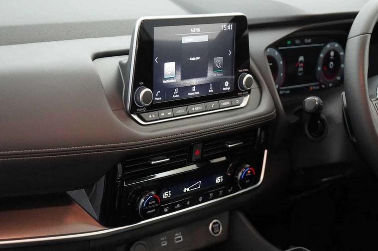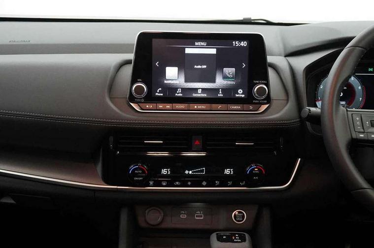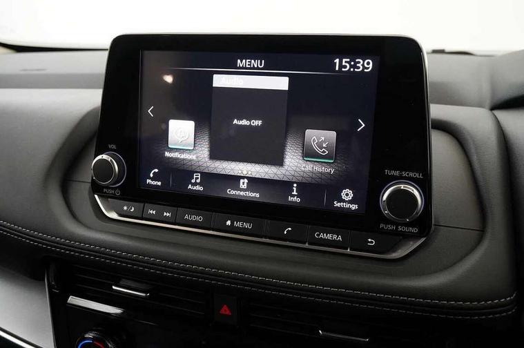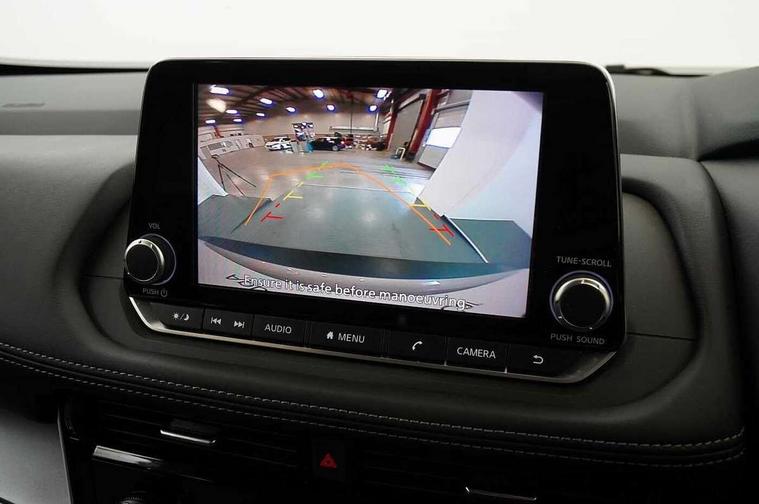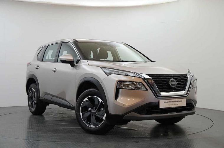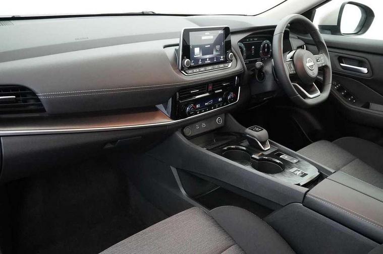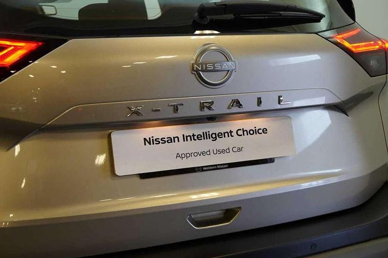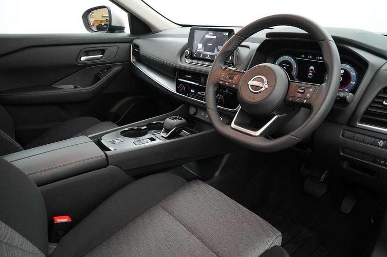 Android auto/Apple CarPlay (Wired), Blind spot warning, Drive assist custom mode, Drive modes (sport, normal, eco), Driver drowsiness and attention warning, Electric speed sensitive power steering, Emergency and breakdown call, Event data recorder, Front and rear parking sensors, Full Digital 12.3" TFT Digital Combimeter, Idle stop/start system, Intelligent driver alert system, Intelligent forward collision warning, Intelligent lane departure warning, Intelligent lane intervention, Intelligent lane keep assist, Maximum speed limiter, Moving object detection, Nissan connect 8" touchscreen infotainment system, Push button starter, Rear cross traffic alert, Rear view camera, Reversing detection, Traffic sign recognition with legal speed adjustment, Trip computer, Wireless charging pad, 6 speakers, AM/FM audio system with DAB, Bluetooth audio streaming, Front USB connections (Type-A and Type-C), Rear USB charging only ports 2 Type-C, Auto dimming rear view mirror, Auto rear wiper when reversing, Body colour mirror caps, Body coloured door handles, Bodyside mouldings, Chrome side window finisher, Electric auto folding door mirrors, Electrically adjustable and heated door mirrors, Follow me home headlights, High beam assist, Intelligent auto headlights, LED 3rd brake light, LED daytime running lights, LED Headlights, LED rear lights, One touch front and rear electric windows with remote opening and closing, Partially body coloured bumpers, Rain sensing wipers, Rear reversing light (bulb lighting), Rear roof spoiler, Rear side wing doors, Rear styling plate, Shark fin antenna, Splash free wipers, Three blink turn signal, 12v power socket in dashboard and luggage, 3 bench rear seats in 2nd row, 3 rear headrests, 60/40 split folding rear seat bench, Butteryfly console, Chrome interior door handles, Cloth monoform upholstery, Driver and front passenger sunvisors with illuminated vanity mirrors, Driver seat back pocket, Dual zone automatic climate control with pollen filter, Front centre console and armrest, Front cupholders, Front door with bottle holders, Height adjustable driver's seat, Height adjustable front headrests, Height adjustable passenger seat, Leather shift knob, Leather steering wheel, Luggage space lighting, Multifunction steering wheel, Passenger seat back pocket, Rear armrest with 2 cupholders, Rear door bottle holders, Single front passenger seat, Tilt/telescopic adjustable steering wheel, Two rear isofix child seat anchorage points with top tether, 3x3 point rear seatbelt pretensioners + load limiters, ABS with EBD and brake assist, Active brake limited slip, Auto hold function, Child locks on rear doors, Curtain and front side, far side airbags, Driver and passenger airbags, Driver, passenger and 2nd row rear seat belt reminder, Electronic parking brake, Front seatbelt pretensioners + load limiters, Height adjustable front seatbelts, Hill start assist, Intelligent blind spot intervention, Intelligent front emergency braking with pedestrian, cyclist recognition and junction assist, Intelligent rear automatic braking, Tyre pressure monitoring system, Vehicle dynamic control, Approach unlock and walk away lock, Engine immobiliser, Remote central door locking with deadlocking, Thatcham Cat.1 alarm, 18" Diamond cut alloy wheels, Tyre puncture repair kit,