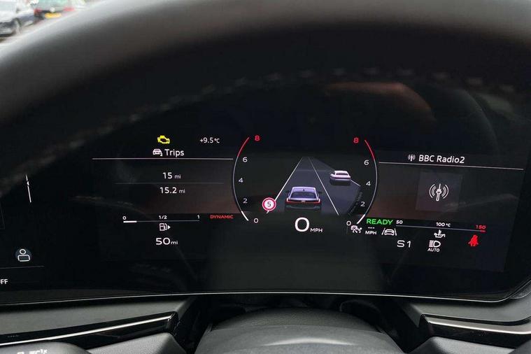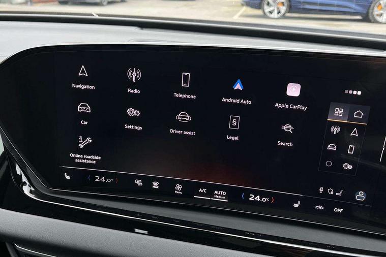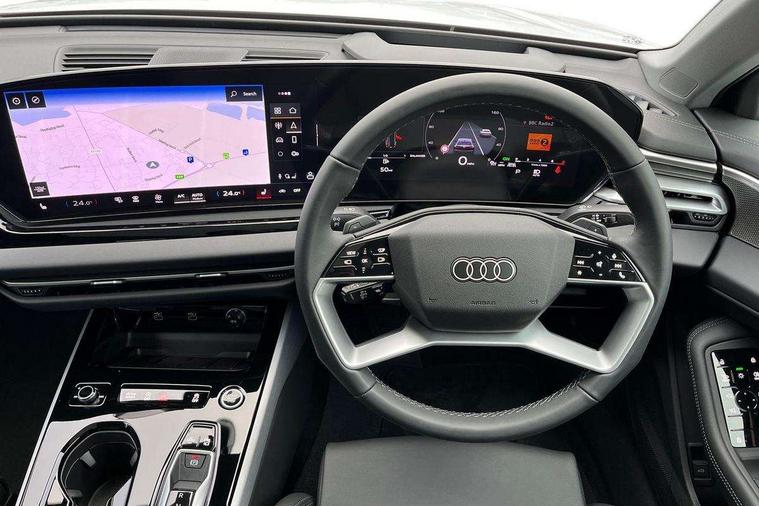 Adaptive cruise control, Attention and drowsiness detection with driver observation, Audi application store, Audi assistant, Audi connect emergency call and service, Audi drive select, Audi virtual cockpit plus with 11.9" OLED colour display, Automatic start/stop system with coasting functionality, Camera based traffic sign recognition, Convenience key, Intersection assist, Lane departure warning, MMI navigation plus with high resolution 14.5" OLED touchscreen colour display, Park assist plus, Parking system plus with 360 display, Progressive steering with servotronic, Rear view camera, Side assist and exit warning, rear cross-traffic assist and rear turn assist, Smartphone interface, Swerve assist and turn assist, Traffic sign based speed limiter, Comfort suspension, Audi sound system impressive sound with 8 loudspeakers including centre speaker and subwoofer, 6-channel amplifier with a total output of 180 watts, DAB digital radio reception, Smartphone compartment with wireless charging, Aluminium window trims, Auto dimming rear view mirror, Body colour door handles, Body colour door mirrors, Clear glass windows, Door mirrors - electrically adjustable, heated, folding and auto dimming on both sides, Front and rear electric windows, Front door sill trims with aluminium inlays, High beam assist, LED headlights Plus incl. digital daytime running lights, turning light, all-weather light, motorway light, manouevring light and intersection light, LED rear lights pro incl. dynamic rear indicators and illuminated light strip with animated coming and leaving home function, LED third brake light, Rear and side windows with heat insulating glass, Rear boot, Rear side wing doors, Sport bumpers, radiator grille and diffuser in scandium grey and diffuser insert in matt selenite silver, White rhombus logo projection light in exterior mirrors, Windscreen with acoustic glazing, 3 rear headrests, 3 seat rear bench, 3-zone automatic climate control, 40:20:40 split folding rear seat bench with centre armrest and cup holders, Comfort front centre armrest, Expedition cloth upholstery, Front and rear floor mats, Front seats with manual adjustment for position and 4-way electric lumbar support, Front sport seats with integrated head restraints, Heated front seats, i-Size child seat mounting on the front passenger side and outer rear seats, i-Size and top tether on the outer rear seats, Increased charging capacity for USB ports 2X100 Watts in rear, 2X60 Watts in front, Luggage compartment lid, electrically opening and closing, Manual steering column height and depth adjustment, Rock grey cloth headlining, Single front passenger seat, Twin spoke leather steering wheel with multi-function buttons with touch control, shift paddles and trim in chrome look, Interior lighting in white package pro - A5, 3x3 point rear seat belts, Driver airbag, Electric child safety locks, First aid kit with warning triangle and vests, Front emergency brake assist, Front passenger airbag, Front passenger airbag deactivation, Front side airbags with head airbag system and front interaction airbag, Hill hold assist, Seat belt monitoring with rear seat occupant reminder, Tyre pressure loss indicator, Anti theft alarm, Anti-theft wheel bolts, Digital key, Keyless Go, Accent surfaces and control buttons in matt black, Black dashboard with contrast stitching, Inlays in laser structure, black, Softwrap in impressum cloth, Tyre repair kit,