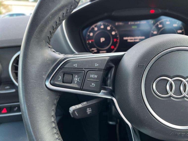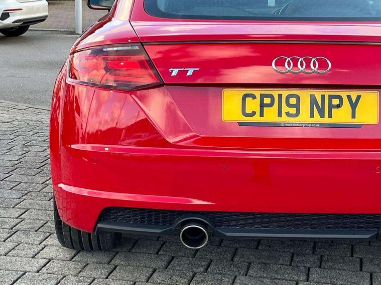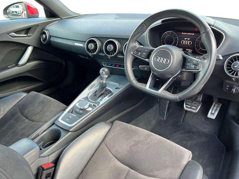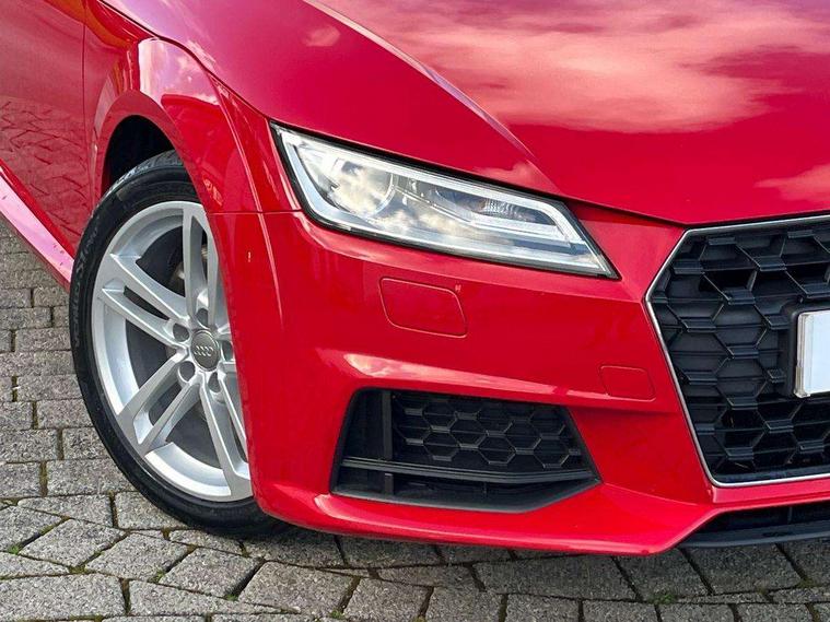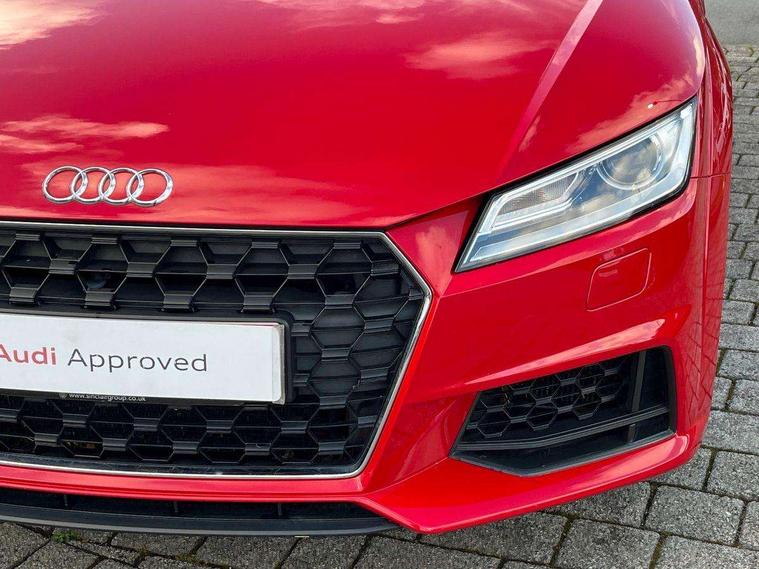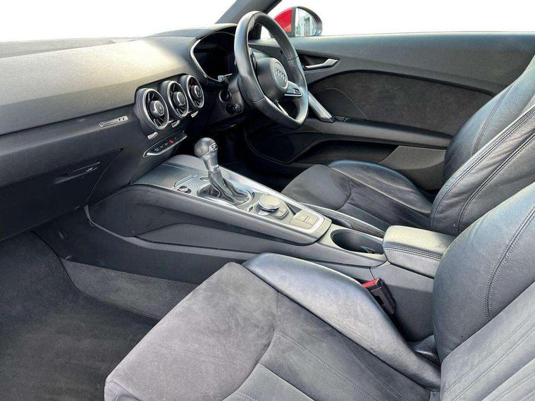 Aluminium design inlays, Non smoking pack - TT/TT RS, Tyre repair kit, Anti theft alarm, Anti theft wheel bolts, Immobiliser, Keyless Go, Remote central locking, 8 speakers, AM/FM radio, Audi music interface, Bluetooth audio streaming, DAB Digital radio, MMI Radio with CD player and SD/XC card slot, 3 point front seat belts, ABS, ASR traction control, Brake energy regeneration, Curtain airbags, Driver and front passenger airbag with front passenger airbag deactivation, EDL traction control, Electromechanical parking brake, ESP, First aid kit, Front side airbags, Head airbags, Hill hold assist, Seatbelt warning, Tyre pressure warning, Warning triangle, Auto dimming rear view mirror, Auto headlight range control, Body colour bumpers, Electric front windows, Front fog lights, Green tinted heat insulating glass, Light and rain sensors, Retractable rear spoiler, Sunband for windscreen, Xenon headlights with LED daytime running lights with automatic headline range control + LED rear lights, brake lights and rear indicators, 12V socket, 3 spoke flat bottomed high multi-function leather sport steering wheel with gearshift paddles, Alcantara/Leather upholstery includes seat centre panels, door trim inserts in black Alcantara with side bolsters, head restraints in black leather, Aluminium door sill trims, Front centre armrest, Heated front seats, Height adjustable driver's seat, Height adjustable front head restraints, Height/reach adjust steering wheel, ISOFIX child seat mounting for front passenger seat with airbag deactivation, Reading lights, Rear top tether child seat ISOFIX attachment, Split folding rear seat, Tool kit, Top tether anchor plate for isofix child seat, Audi active lane assist, Audi drive select with 4 Pre configured modes, Cruise control + speed limiter, MMI touch panel, Progressive power assisted steering, Rear parking sensors, Service interval indicator, Start/Stop system with energy recuperation, TP memo, Sports suspension,