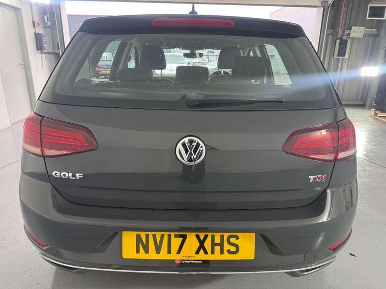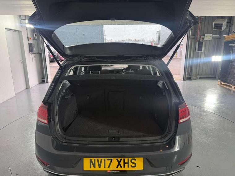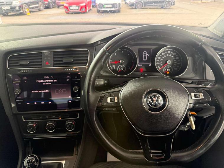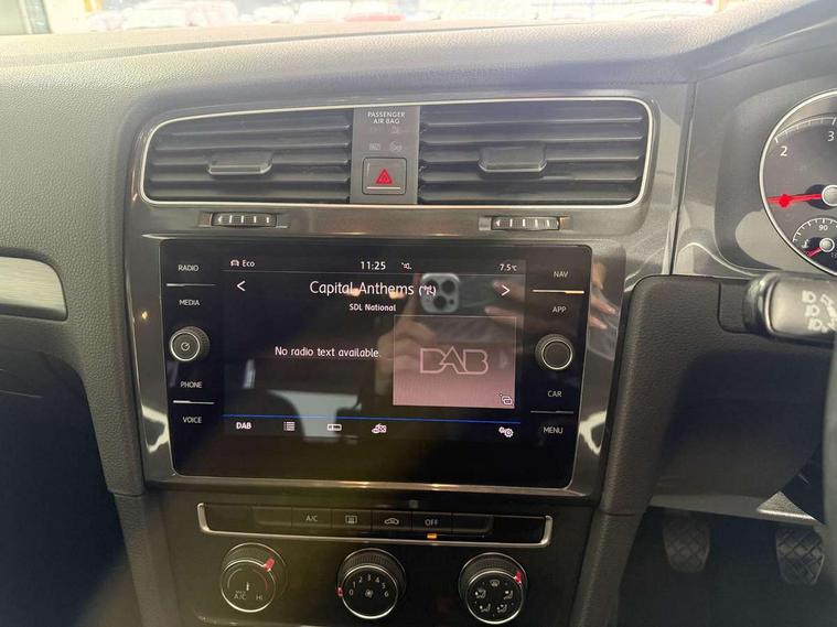 App-Connect, 'Lights On' Reminder warning buzzer, 8" touch screen, Adaptive Cruise Control with pedestrian detection and speed limiter, Bluetooth hands free telephone connection, Brake pad wear indicator warning light, Driver alert system, Driver profile selection, Exterior temperature gauge, Front assistant collision mitigation, Instrument cluster in white, Multifunction computer, PAS - speed related, Rev counter, Trip and service interval display, Ultrasonic front and rear optical and audible parking sensors, Warning buzzer and light for front seatbelts unfastened, Diesel particulate filter, XDS electronic differential lock, CD/MP3/WMA, USB and SD card reader, aux-in, Composition media system, DAB Digital radio, Auto dimming rear view mirror, Automatic coming/leaving home lighting function, Automatic headlights, Black front air intake and radiator grille with chrome insert, Black rear diffuser, Body colour bumpers, Body colour door handles, Body colour door mirrors, Electric front windows, Electric rear windows, Electrically adjustable and heated door mirrors, Heated rear windscreen, LED daytime running lights, LED rear lights, Rain sensor, Rear roof spoiler, Rear windscreen washer and wiper with interval delay, 12V socket in luggage compartment, 3 rear headrests, 3 spoke steering wheel, 60/40 split folding rear seat, Bag hook in luggage compartment, Boot lashing points, Cooled glovebox, Courtesy light delay, Cover for storage compartment in centre, Dust/pollen filter, Front and rear reading lights, Front centre armrest with storage box and rear air vents, Front passenger drawer stowage, Front passenger seat height adjust, Front seat back storage pockets, Grab handles, Height adjustable driver's seat, Height/reach adjust steering wheel, Illuminated vanity mirrors, Isofix preparation for 2 rear child seats, Load through provision with rear centre armrest and cupholders x2, Luggage compartment cover, Luggage compartment lighting, Multifunction leather steering wheel with leather gear knob/handbrake grip, Overhead storage box, Pearl grey headlining, Storage box in luggage compartment, Storage compartments in doors, Sun visors, Variable boot floor, height adjustable and removable, Mirror pack - Golf, 3 point height adj front seatbelts + pretensioners, 3 rear 3 point seatbelts, ABS, Automatic post collision braking, Child locks on rear doors, Driver/Front Passenger airbags, Driver/Passenger whiplash optimised head restraints, Drivers knee airbag, Electronic parking brake with auto hold, ESP with EDL + ASR, Front and rear curtain airbags, Front passenger airbag deactivation, Front side airbags, Pre crash system, Tyre pressure monitor, Alarm with interior protection, Electronic engine immobiliser, Remote central locking with 2 remote folding keys, Brushed dark metal decorative inserts, Chrome-plated light switch surround, Polar night black centre console, Steel space saver spare wheel,