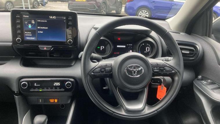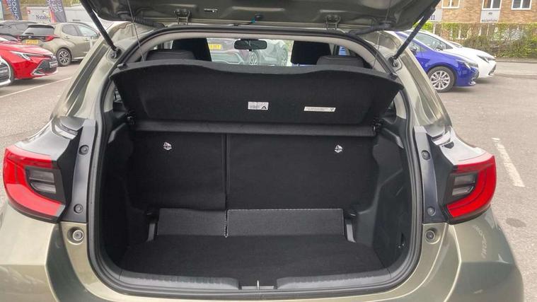 Adaptive cruise control, Adjustable speed limit with speed warning, Bluetooth connectivity, Colour binocular inspired displays with digital speedometer, E-call, Electric power steering, Hybrid energy display, Multi information display switches on steering wheel, Reversing camera, Smartphone integration with Apple CarPlay and Android auto, Tailgate, Voice recognition, Vehicle Stability Control (VSC), 4 speakers, 8" Multimedia display touch screen, USB connection, Acoustic windscreen glass, Auto windscreen wipers, Automatic headlights, Body coloured door mirrors, Electric adjustable heated door mirrors, Follow me home headlights, Front auto power windows with anti jam protection, Full LED rear lights, LED daytime running lights, LED front fog lights, LED front light guide, LED Headlights, LED High mounted stop lamp, LED Indicators, LED rear light guide, Manual headlight levelling, Painted chequered front grille, Rain sensor, Rear auto power windows with anti jam protection, Rear privacy glass, Rear side wing doors, Rear spoiler, Rear wiper, Shark fin antenna, Turning signal integrated indicators in door mirrors, Variable front intermittent wipers, 3 adjustable rear headrests, 3 spoke leather steering wheel, 60/40 split folding rear seat, Active headrests, Adjustable boot height, Auto air conditioning, Coat hooks in rear grab handles, Cup holders (2 front & door), Data Communication Module (DCM) connected services, Fabric upholstery, Front armrest, Glovebox, Grey roof lining, Height adjustable driver's seat, Isofix seat fixing, Leather gearshift, Pollen filter, Shopping bag hooks, Single front passenger seat, Tilt/telescopic steering column, 3 point seatbelts on all rear seats, ABS+EBD+Brake assist, Electronic parking brake, Emergency brake light system (EBS), Front passenger airbag on/off switch, Front seatbelt reminder, Hill start assist control (HAC), Rear child proof door locks, Rear seat belt reminder, Supplemental Restraint System (SRS) 8 airbags: Driver & passenger's airbags, dual side curtain airbags, side impact airbags, front centre airbag, Toyota Safety Sense 2, Precollison + Night time Pedestrian & Cyclist Detection, Lane Trace Assist, Auto High Beam, Intelligent ACC & Road Sign Assist, Tyre pressure warning system, 2x Master key, Alarm/immobiliser, Remote powered central double locking doors, Soft touch instrument panel, Space saver spare wheel,