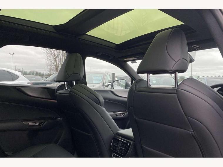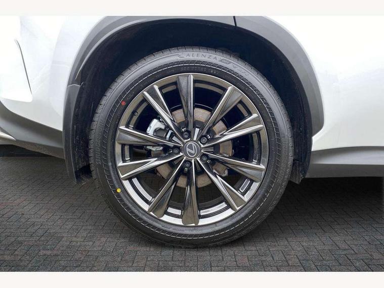 360 degree panoramic view monitor, 7" colour multi information display, 7" display in instrument binnacle, Blind spot monitoring with rear cross traffic alert, Bluetooth telephone connectivity, Digital speedometer, Drive Mode Select (Eco, Normal, Custom, Sport S, Sport +), Driver monitor camera, eCall emergency system, Electric speed sensitive power steering, Emergency driving stop system, Emergency steering assist, Front cyclist detection, Front motorcycle rider detection daytime, Head up Display, Intelligent parking sensors - 4 front and 4 rear with object and pedestrain detection, Intersection turn assist, Lane change flasher function, Lexus link connect - Cloud based navigation, cloud based voice assistant, always online, 14" HD touchscreen, embedded nav and faster CPU, Pre-crash system, Proactive driving assist (PDA), Push button starter, Reversing camera with back guidelines, Road sign linked speed limiter, Service interval indicator, Tailgate, Tailgate electric lift and close, Tailgate height memory function, Tazuna cockpit with 7" improved meters display, 10" HUD and capacitive touch steering wheel switches, Trip meter, Variable ratio rack steering, Wireless Apple CarPlay/Android Auto, Wireless Smartphone charger, 5m mode 3 charging cable, 6.6 kW onboard charger, All Wheel Drive (AWD), Front and rear performance dampers, Hybrid automatic transmission, Key cylinder protector, Predictive efficient drive, Sport suspension, Vehicle Dynamics Integrated Management (VDIM), Vehicle Stability Control (VSC), 10 speakers, 3 USB Type-C charging ports, DAB Digital radio, 4 eye LED headlight with adaptive high beam, Acoustic glass (front side and windshield glass), Active brake lights, Auto dimming interior rear view mirror, Auto levelling headlights, Automatic headlights, Automatic rear flashing hazard lights, Black door mirrors, Black roof, Black roof rails, Black window frame moulding, Body coloured door handles, Body coloured roof spoiler, Double hidden exhaust pipes, Electrically adjustable door mirrors, Electrochromatic driver's door mirror, F SPORT exterior styling - Black mesh front grille, enhanced side rockers, metallic front bumper, badging, black outside mirror covers, Front and rear one touch power windows, with anti-jam protection, Headlight cleaners, Heated, auto-folding, auto-dimming outside mirrors with reverse tilt function and turn indicators, Hidden exhaust in rear bumper, Illuminated door handles with puddle light, LED brake lights and rear lights with emergency brake signal, LED cornering lights, LED daytime running lights, LED front fog lights, LED front indicators, LED rear fog lights, Muffler, Optical rear view mirror, Power back door with kick sensor, Privacy glass, Puddle lights, Radiator grille, Rain sensor windscreen wipers, Rear side wing doors, Rear wiper, Shark fin antenna, Ultra Violet (UV) and heat insulating tinted glass, 12V accessory port centre console and luggage compartment, 12V socket in front and boot, 12V socket in rear, 2 cupholders in front centre console, 2 way electrical lumbar adjustment for driver, 2 way manually adjustable rear headrests, 2 x fixed shopping bag hooks in boot, 2 x sun visors with vanity mirror and lamp, 3 seat bench in 2nd row, 4 way manually adjustable front headrest, 4 x tie down hooks in the boot, 60/40 split folding rear seat, 8 way driver/passenger electrically adjustable front seats, Active sound control, Adjustable rear seat backrest, Automatic air circulation control, Card holder installed in driver and passengers sun visors, Centre armrest with storage box, Driver seat easy entry and exit function, Driver seat memory function, Driving position memory for 3 users (seat, steering wheel & door mirrors), Dual zone climate control air conditioning system with humidity sensor, Electric adjustable steering column, Electronic climate control with nanoeTM, F Sport front stainless steel scuff plate, F SPORT logo embossed on front headrests, F SPORT seats - Leather upholstery, Front and rear textile carpet mats, Front passenger seat, Glove box with key, Heated and ventilated front seats, Heated rear seats, Heated steering wheel, Illuminated entry system, LED ambient lighting, LED boot light, LED Door courtesy lights, LED Glovebox light, LED interior illumination, Lexus climate concierge, Luggage cover manually folding, Machined aluminium footrest for driver, Machined aluminium sports pedals, Overhead front console sunglasses holder, Perforated leather gearshift, Power adjustable F SPORT leather steering wheel with paddle shifts, Rear centre armrest with 2 cupholders, S-Flow technology for climate control, Steering wheel easy entry and exit function, Steering wheel mounted customizable touch control, USB port (Type - A) front centre console, Whiplash Injury Lessening (WIL) feature (active headrest) for seats, 18" front disc brake, 3 point ELR front seatbelts with pretensioners, 3x3 point rear seat belts, ABS, Acoustic vehicle alerting system, Adjustable seat belt anchor points, Driver 2 stage airbag, Driver/front passenger side airbags, Drivers knee airbag, E-Latch with safe exit assist, EBD + Brake Assist, ECB (Electronically Controlled Brake System), Electronic parking brake, Front and rear curtain shield airbags, Front center airbag, Front passenger seat cushion airbag, Front passenger single stage airbag, Hill assist control, Lexus safety system - dynamic radar cruise control, pre collision system day and night, lane tracing assist, road sign, automatic high beam, OTA, Manual rear child locks, Outer rear seatbelt pretensioners, Passenger airbag cut-off device, Rear wheel brake - 17inch discs, Safety kit, Traction control, Tyre pressure warning with auto location, Anti-theft system with alarm, intrusion sensor, glass breakage sensor, tilt sensor and engine immobiliser, Double door lock, Locking wheel nuts, Smart entry ( front/rear/boot), Smart key, Speed sensitive auto door locking, Ultra Wide Band (UWB) Anti-theft system, VIN W
