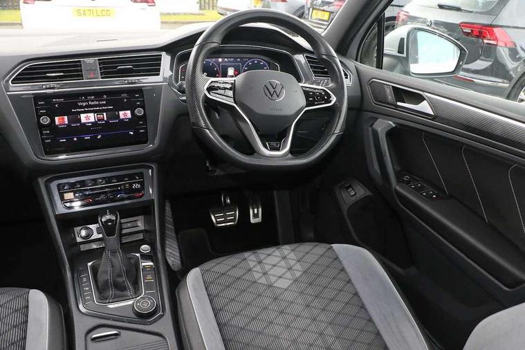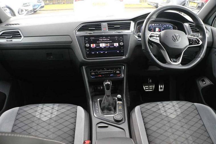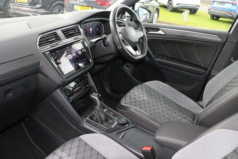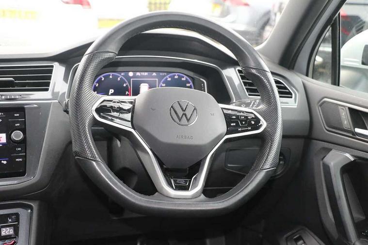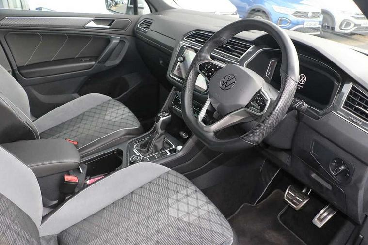 Adaptive cruise control ACC stop and go including speed limiter, App-Connect incl. App-Connect Wireless for Apple CarPlay and Android Auto, Bluetooth phone integration system, Distance control assist, Driver alert system, Driver profile selection, Dynamic road sign display, eCall emergency call system, Electromechanical speed sensitive power steering, Engine start/stop button, Lane keeping system Lane Assist, Lights on warning, Multifunction front facing camera, Outside temperature display, Premium multifunction display with multi colour display, Remote control boot opening, Rev counter, Revision / skills operating concept travel assistant, Service interval indicator, Speed limit display, Start/stop system with regenerative braking, Trip computer, Warning sound and light for doors and tailgate open, All wheel drive - 4Motion, Battery regeneration during braking, XDS electronic differential lock for improved traction and handling, 4 X 20 watt output, 8 Speakers, Diversity antenna for FM reception, Radio, SD card slot, Simultaneous pairing of 2 compatible mobile devices, SMS functionality - read, compose and send SMS messages using touch-screen display, Title and cover art display, USB C ports, Auto dimming interior rear view mirror, Automatic headlight control system, Body colour door handles, Chrome moldings on the side windows, Coming/leaving home lighting function, Dynamic headlight range control, Front and rear electric windows, Heated rear window, High level 3rd brake light, Laminated safety glass windshield, heat and sound insulating, LED headlamps with LED separate daytime running light and dynamic cornering light, LED rear combination lamps, LED rear number plate lights, License plate carrier in front and rear, Poor weather light and cornering light, R Line body kit, R Line side sills, Rain sensor windscreen wipers, Rear exhaust tailpipe, Rear fog lamp, Rear side wing doors, Rear spoiler in R style, Rear windscreen washer and wiper with interval delay, Side and rear windows in heat insulating glass, Trailer Stability Programme, Unique R Line badging, Windscreen wipers/ intermittent wipe + 4 position delay, 12V outlet in center console rear and in luggage compartment, 12V outlet in front and tray, 2 cup holders in front, 2 LED front reading lights, 2 LED rear reading lights, 3 bench rear seats in 2nd row, 3 rear headrests, 4 load lashing points, 40:20:40 split folding rear seats, Air Care Climatronic 3 zone automatic climate control with enhanced air filter and controls in the rear, Backrest release for left front seat, Black headlining, Brushed stainless steel pedals and footrest, Carpet mats in front and rear with decorative stitching in Gray, Climate control unit rear with touch function, Door and side trim panel in foam film, insert in leatherette, Front centre armrest, Front footwell illumination, Front seats head restraints (x-adjustment), Height adjustable front seats, Height/reach adjust steering wheel, Instrument lighting white adjustable panel illumination, Interior light with delay, Isofix Preparation 2 Rear child seats, Leather gear knob, Lockable cooled glovebox, Luggage compartment lighting, Luggage net, Rear bench seat asymetrically split folding, longitudinally movable and folding with load-through hatch and center armrest, Remote unlocking for rear seat backrest, Removable luggage cover, Removable rear headrests, Safety optimised front head restraints, Single front passenger seat, Sliding/reclining rear seats, Standard rear seat release, Storage compartment in driver's door, Storage compartment in passenger's door, Storage compartment in rear doors, Storage compartments in luggage area left and right, Storage tray on dashboard, Sun visors with illuminated vanity mirrors, Top front comfort seats, Variable boot floor, height adjustable and removable, Driver assistance pack plus - Tiguan DSG, 3 point seat belt for centre rear seats, 3 point seat belts with seat belt pretensioners for the outer rear seats, Active bonnet, Curtain airbags for front and rear passengers, Driver/Front Passenger airbags, Drivers knee airbag, Electronic parking brake with auto hold, Electronic Stability Control with driver steering recommendation, ABS, ASR, EDL, EDTC and trailer stabilization, Front assist with autonomous emergency braking (for Adaptive Cruise Control ACC up to 130 mph), Front disc brakes, Front passenger airbag deactivation, Front side airbags, Height adjustable front 3 point seatbelts + pretensioners, Hill hold control, Manual child proof rear door locks, Pedestrian monitoring system, Power assisted brakes, Proactive passenger protection system in combination with front assist, Rear disc brakes, Rigid safety cell with front and rear crumple zones, Two tone horn, Warning sound and light for front seat belts if unfastened, Anti theft alarm system with interior monitoring, backup horn and towing protection, Anti theft wheel bolts, Electronic engine immobiliser, Tool kit,