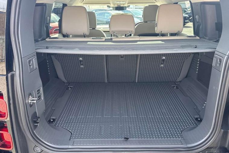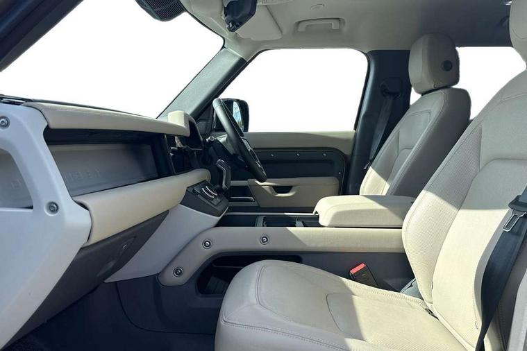 360 degree parking aid, 3D Surround Camera with 360 View, 180 Rear View, Front Traffic Detection, Forward Vehicle Guidance, Tow Hitch Assist and clear sight Ground View, Android Auto, Apple CarPlay, Assisted tailgate with soft close, Blind spot assist, Bluetooth system, Brake pad wear indicator, Clear exit monitor, Connected navigation pro, Cruise control + speed limiter, Driver condition monitor, Electric power assisted steering (EPAS), Interactive driver display, Lane keep assist, Push button start, Rear traffic monitor, Traffic sign recognition with adaptive speed limiter, Trip computer, Wade Sensing, 8 speed automatic transmission, Adaptive dynamics, All wheel drive system, Electronic air suspension, Twin speed transfer box, DAB Radio (Digital Audio Broadcasting), Pivi pro connected, Automatic headlight levelling, Automatic headlights, Body coloured roof, Centre high mounted stop light, ClearSight interior rear view mirror, Electric heated/power fold door mirrors with approach lights and auto dimming driver side, Electric windows with one touch open/close and anti-trap, Follow me home lighting, Front fog lights, Heated rear window with timer, Heated windscreen, Illuminated metal treadplates with brand name script, LED tail lights, Matrix LED headlights with signature DRL, Privacy glass, Puddle lights, Rain sensing windscreen wipers, Rear fog lights, Rear side wing doors, Rear wiper, Side hinged tailgate, Signature graphic (with interior storage), Sliding panoramic roof, Trailer stability assist, 12 way heated and cooled electric memory front seats with 2 way manual headrests, 12V power socket in loadspace, 3 seat bench in 2nd row, 40:20:40 folding rear seats with centre armrest, Alpine lights, Configurable cabin lighting, Durable rubber cabin flooring, Durable rubber loadspace flooring, Electric cabin pre conditioning, Electric reach + rake adjustable steering column, Footwell lights, Front centre console refrigerator compartment, Front passenger isofix child seat attachment, Grained Leather upholstery, Heated steering wheel, Leather gearshift, Light oyster morzine headlining, Loadspace cover, Loadspace Hook, Multifunction steering wheel, Overhead stowage for sunglasses, Premium cabin lighting, Rear headrests, Rear ISOFIX, Rear reading lights, Single front passenger seat, Standard interior, Standard leather steering wheel, Standard seat configuration, Storage glovebox, Sunvisors with illuminated vanity mirrors, Online pack with data plan - Defender, XS Edition exterior pack - Defender, 5 x 3 point seatbelts, ABS, Brake hold function, Cornering brake control (CBC), Cross car beam in light grey powder coat brushed finish, Customer configurable autolock, DSC - Dynamic Stability Control, EBD - Electronic brakeforce distribution, Electric parking brake (EPB), Emergency brake assist, Emergency braking, ESP + traction control, Front airbags with passenger seat occupant detector, HDC - Hill descent control, Hill launch assist, Low traction launch, Power operated child locks, Remote for (e-Call, Optimised assistance call, InControl app, Climate, beep and flash and door), RSC - Roll stability control, Seat belt reminder, TPMS (Tyre pressure monitoring system), Alarm, Immobiliser, Intrusion sensor, Keyless entry, Locking wheel nuts,