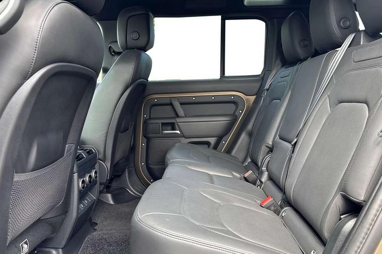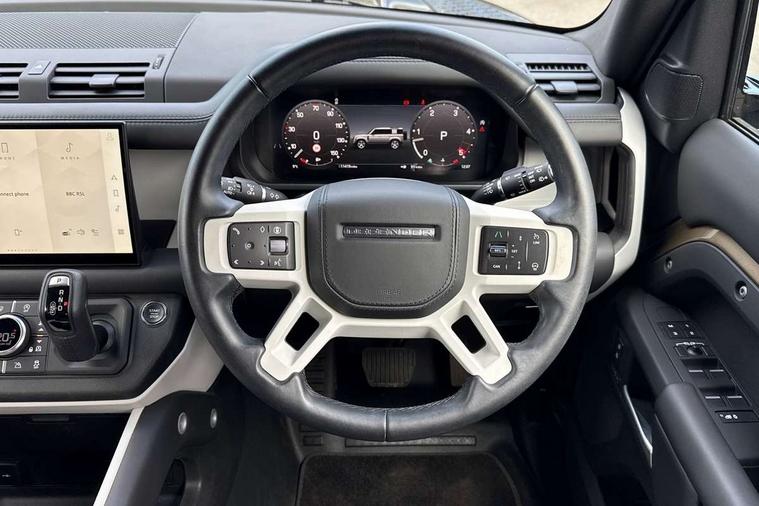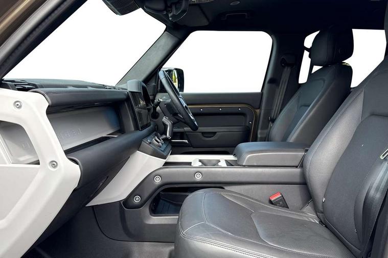 1 x USB-C (power only) & 1 x USB-C (power & data) in Row 1, 2 x USB-C in Row 2, 11.4" touchscreen, 2 x USB-C in Row 3, 360 degree parking aid, 3D Surround Camera with 360 View, 180 Rear View, Front Traffic Detection, Forward Vehicle Guidance, Tow Hitch Assist and clear sight Ground View, Adaptive cruise control, Android Auto, Apple CarPlay, Blind spot assist, Bluetooth system, Brake pad wear indicator, Clear exit monitor, Connected navigation pro, Driver condition monitor, Electric power assisted steering (EPAS), Interactive driver display, Lane keep assist, Push button start, Rear collision monitor, Rear traffic monitor, Traffic sign recognition with adaptive speed limiter, Trip computer, Wireless device charging, 8 speed automatic transmission, All wheel drive system, Twin speed transfer box, DAB Radio (Digital Audio Broadcasting), Meridian 700w surround sound audio system with 15 speakers, Pivi pro connected, Automatic headlight levelling, Automatic headlights, Black exposed rear recovery eyes, Body coloured bonnet, Centre high mounted stop light, Electric heated/power fold door mirrors with approach lights and auto dimming driver side, Electric windows with one touch open/close and anti-trap, Follow me home lighting, Front fog lights, Heated rear window with timer, Heated windscreen, Illuminated metal treadplates with brand name script, LED tail lights, Matrix LED headlights with signature DRL, Privacy glass, Puddle lights, Rain sensing windscreen wipers, Rear fog lights, Rear side wing doors, Rear wiper, Side hinged tailgate, Sliding panoramic roof, Standard tail door, Trailer stability assist, X-Dynamic badge, 12V power socket in loadspace, 2 seat bench in 3rd row, 3 seat bench in 2nd row, Alpine lights, Configurable cabin lighting, Durable rubber cabin flooring, Durable rubber loadspace flooring, Electric reach + rake adjustable steering column, Electrically adjustable steering column, Extended leather upgrade, Footwell lights, Front head restraints, Front passenger isofix child seat attachment, Heated steering wheel, Loadspace cover, Loadspace Hook, Multifunction steering wheel, No flat load floor storage, Overhead stowage for sunglasses, Rear headrests, Rear ISOFIX, Rear reading lights, Single front passenger seat, Soft close tail door, Storage glovebox, Sunvisors with illuminated vanity mirrors, Twin front cupholders, Air suspension pack - Defender SE/HSE/X-Dynamic SE/X-Dynamic HSE, Non-smoker package, Online pack with data plan - Defender, 7 three point seatbelts, ABS, Brake hold function, Cornering brake control (CBC), Customer configurable autolock, Driver and passenger airbags, DSC - Dynamic Stability Control, EBD - Electronic brakeforce distribution, Electric parking brake (EPB), Emergency brake assist, Emergency braking, ESP + traction control, Front airbags with passenger seat occupant detector, HDC - Hill descent control, Hill launch assist, Low traction launch, Power operated child locks, Remote for (e-Call, Optimised assistance call, InControl app, Climate, beep and flash and door), RSC - Roll stability control, Seat belt reminder, TPMS (Tyre pressure monitoring system), Alarm, Immobiliser, Intrusion sensor, Keyless entry, Locking wheel nuts, Secure tracker pro,