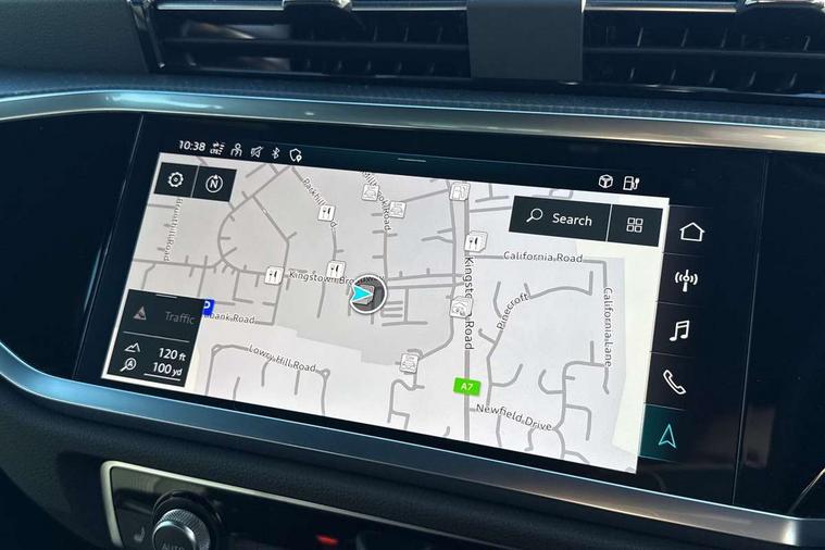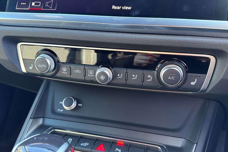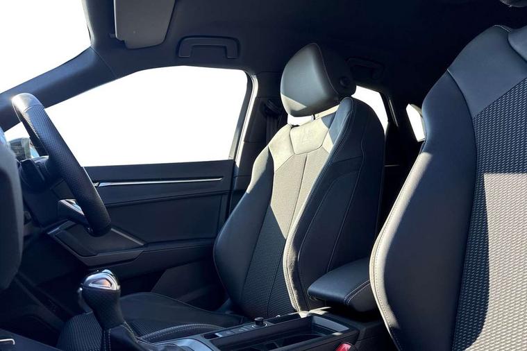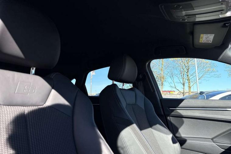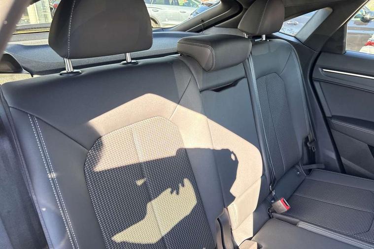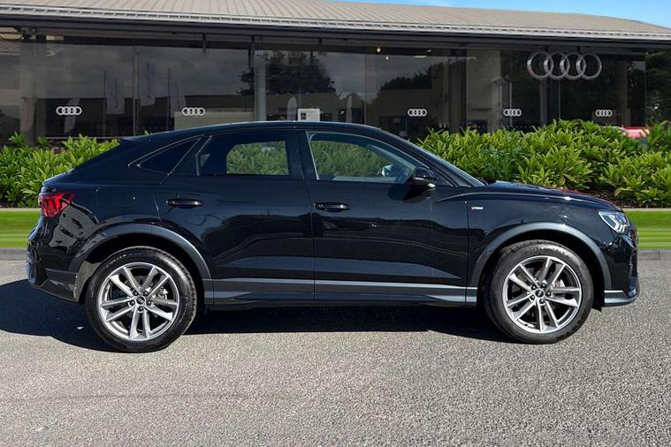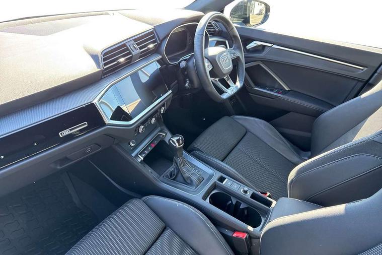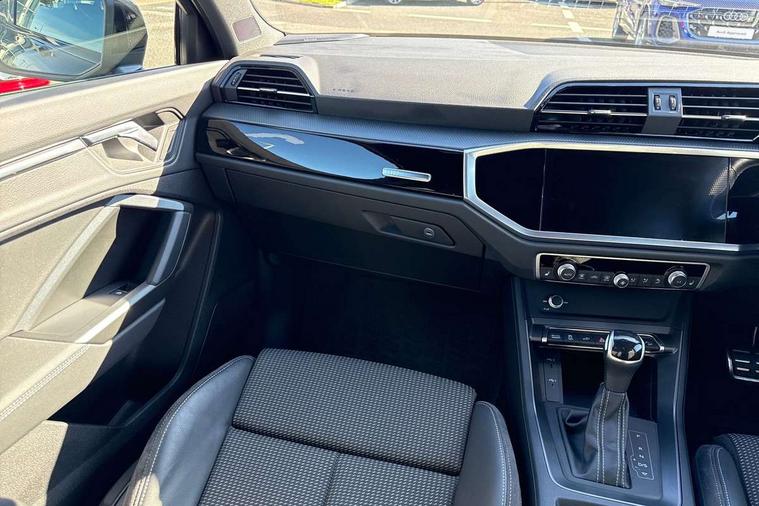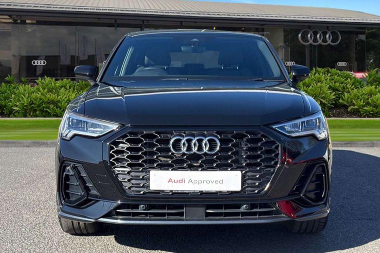 360 degree parking camera, Audi connect safety and service (e-call), Audi drive select, Audi lane departure warning, Audi phone box with wireless charging, Audi smartphone interface includes wireless Apple carplay/Android Auto, Audi virtual cockpit plus, Bluetooth interface, Camera based traffic sign recognition, MMI Navigation Plus with high resolution 10.1 inch touchscreen colour display, Power operated tailgate, Progressive steering, Rear cross traffic assist, Service interval indicator, Start stop system with recuperation, Voice control system with natural language interaction, 3 pin 10 amp domestic charging cable, Adaptive suspension with damping control, Type 2 mode 3 32 amp charging cable, Type 2 socket for AC charging, 2 USB-C ports with charge and data functions, DAB digital radio module, SONOS premium sound system, Acoustic windscreen, Audi Beam uses LEDs to project Vorsprung logo, Auto dimming door mirrors, Auto dimming frameless rear view mirror, Bumpers and underbody protection in contrasting manhattan grey paint finish, Diffuser grille in grained matt black, Diffuser trim in selenite silver, Electrically folding, adjustable and heated door mirrors with integrated LED side indicators and kerb view function for passenger side, Front and rear electric windows, Front fog lights, Front side air inlets in selenite silver, Headlight washers, High gloss black finish B and C pillars, LED daytime running lights, Matrix LED headlights with LED rear lights and dynamic front and rear indicator, Panoramic opening glass sunroof, Privacy glass dark tinted rear and rear-side windows (from B-pillar backwards), Rain and light sensors, Rear side wing doors, Rear underbody protection in matt black, Rear wiper, Third brake light, 12V socket in rear centre console, 3 seat bench in 2nd row, 4 way electric lumbar support for driver and front passenger, 40:20:40 folding with manual adjustment for 60:40 forwards/backwards position and backrest angle, Adjustable rear seat bench/backrest with centre armrest and cupholder, Black cloth headlining, Dual zone electronic climate control, Electrically adjustable front seats, Front and rear black floor mats with contrast stitching, Front and rear headrests, Front and rear roof module including reading lights, Front centre armrest, Glove compartment lighting, Heated front seats, Height and reach adjustable steering wheel, Illuminated door sill trims with S logo, ISOFIX child seat mounting for front passenger with airbag deactivation and outer rear seat including top tether attachment point for outer rear seats, Leather steering wheel in 3-spoke design with multifunction plus and shift paddles, Luggage compartment light, Perforated leather gearknob, Single front passenger seat, Stainless steel luggage compartment sill finisher, Stainless steel pedals, Tool kit, Black styling pack - Q3 Sportback Vorsprung, Driver Assistance Pack - Q3, Multi coloured extended ambient interior lighting pack - Q3, Non smoking pack - Q3, 3x3 point rear seatbelts, 6 airbags - Driver, front passenger, curtain and side windows, Electrically operated child locks on rear doors, Electromechanical parking brake, Electronic stabilisation control including ABS, ASR and EDL, Hill descent control, Hill hold assist, Pre sense basic, Seatbelt monitoring, Tyre pressure warning, Warning triangle and first aid kit, Advanced key, Anti theft alarm, Anti theft wheel bolts, Audi pre-sense front with pedestrain and cyclist recognition, Remote central locking, Black dashboard, Leatherette door armrest, MMI touch colour display in glass look, black with surround in aluminium look, Tyre repair kit,