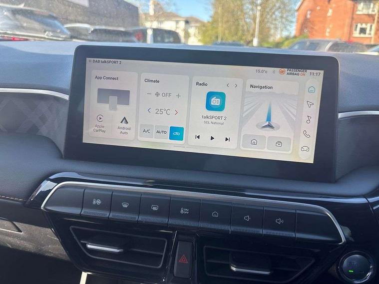 10.25" Colour touchscreen, 360 degree camera with rear sensor, 7" Driver display, Adaptive cruise control, Android Auto, Apple car play, Blind zone detection with lane change assist, Bluetooth connection, Driver attention alert system, E-call, Forward collision warning, Intelligent speed limit assist, Lane keep assist system (LAS) with Lane departure warning system (LDWS), PAS, Rear cross traffic alert, Reverse parking sensors, Satellite navigation with speed limit recognition, Traffic jam assist, Trip computer, 1 x USB port at rear for charging only, 6 speaker audio system, DAB audio, Radio, MP3 and AUX/USB, USB ports (2x front, 1x rear), Auto dimming rear view mirror, Automatic headlamps, Body colour bumpers, Body coloured door handles, Body coloured electrically adjustable heated door mirrors, Follow me home headlights, Front and rear electric windows with driver's one-touch up/down, Intelligent headlamp control, LED centre brake light, LED daytime running lights, LED projector headlights, Rain sensor wiper, Rear privacy glass, Rear side wing doors, Rear window defogger, Rear wiper, 12V socket, 3 seat bench in 2nd row, Air conditioning, Boot space lamp, Driver 6-way adjustable seat, Front centre armrest with storage, Front cup holders, Front headrests, Front interior courtesy light with time delay and reading lights, Front passenger seat map pocket, Front sun visors with driver and passenger mirrors, Heated front seats, Heated steering wheel, Leather style with cloth inserts upholstery, Multifunction steering wheel, One piece folding rear seat, Passenger 4-way adjustable seat, Single front passenger seat, Tilt adjustable steering column, 2 x adjustable rear head rests, 3x3 point rear seatbelts, ABS/EBD, Active emergency braking with pedestrian/Bicycle detection, Drivers seatbelt reminder, Dual front airbags, EBA, Electric parking brake with autohold, ESP, Front and rear passenger seat belt reminder, Front passenger airbag deactivation switch, Front seatbelts (3-point + pretensioner + load limiter), Front side airbags, Hill start assist, Rear child locks, Rear ISOFIX child-seat upper tether & lower anchor, Side curtain airbags, Tyre pressure monitoring system, Alarm & Engine Immobiliser, Keyless entry, Remote Central Locking with Fold-away Key, 16" Atlas alloy wheel, Tyre repair kit,