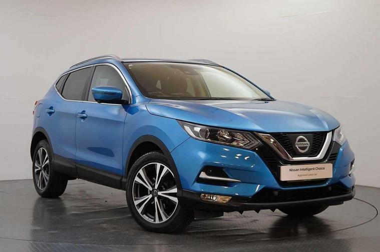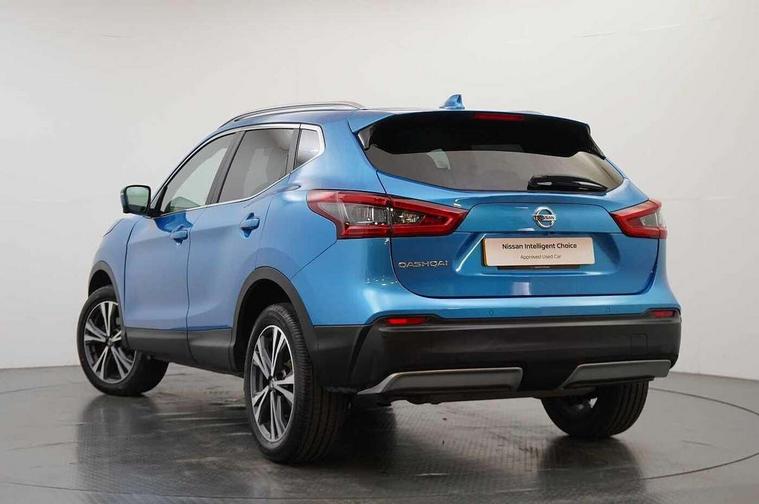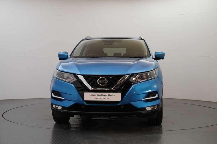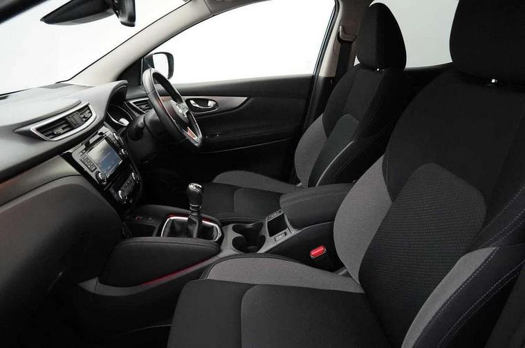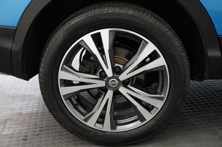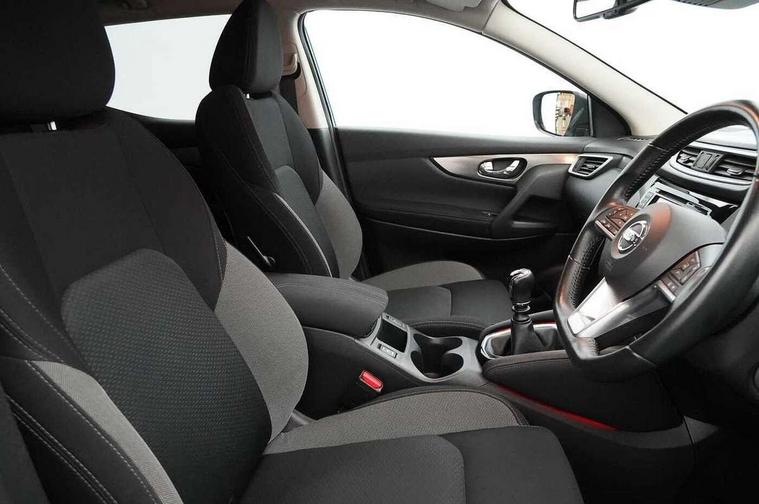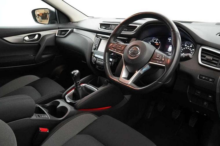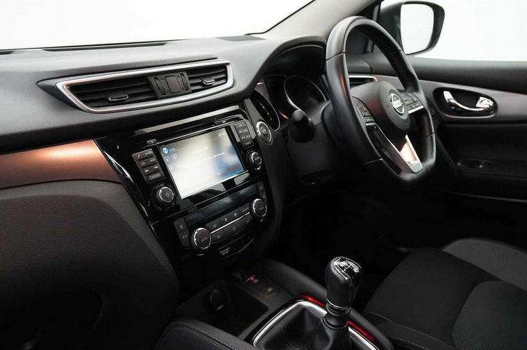 5" TFT driver information centre, Around View Monitor, Bluetooth phone integration system, Cruise control, Electric speed sensitive power steering, Front and rear parking sensors, Lane departure warning system, Nissan connect sat nav system, Outside temperature display, Push button starter, Rear view camera, Service interval indicator, Speed limiter, Traffic sign recognition, Trip computer, 'Shark fin' mobile antenna, 6 speakers, DAB Digital radio, Radio/CD, Smartphone apps, Steering wheel mounted audio controls, USB/aux input socket, Automatic headlamp activation, Body colour bumpers, Body colour door handles, Body colour door mirrors, Chrome window surround, Electric folding and heated door mirrors, High beam assist, Interior mirror with auto anti dazzle, LED indicators in door mirrors, Matt silver roof rails, One touch electric front/rear windows, Privacy glass, Rain sensor windscreen wipers, Rear roof spoiler, Rear wiper, 2 X front 12v power sockets, 60/40 split folding rear seat, Ambient interior lighting, Centre console with armrest, Chrome interior door handles, Cloth upholstery, Configurable luggage board system, Driver + front passenger lumbar support, Dual zone climate control, Front and rear door pockets with bottle holders, Front headrests, Front seat belt pre-tensioners with load limiters, Height adjustable driver's seat, Height adjustable passenger seat, Illuminated electric window switch, Isofix child seat preparation, Leather gearknob, Leather interior door handles, Leather knee rest, Leather steering wheel, Luggage compartment lighting, Parcel shelf, Pollen filter, Rake/reach adjustable steering wheel, Rear headrests, ABS, brake assist and EBD, Child locks on rear doors, Curtain airbags, Driver/front passenger airbag, Electronic parking brake, ESP + traction control, Forward emergency braking, Front passenger airbag deactivation, Height adjustable front seatbelts, Hill start assist, Seatbelt warning, Side airbags, Three 3 point rear seatbelts, Tyre pressure monitoring system, Alarm, Immobiliser, Intelligent Key, Remote central locking, Piano black interior trim, 18" Bi-colour alloy wheels, Tyre puncture repair kit,