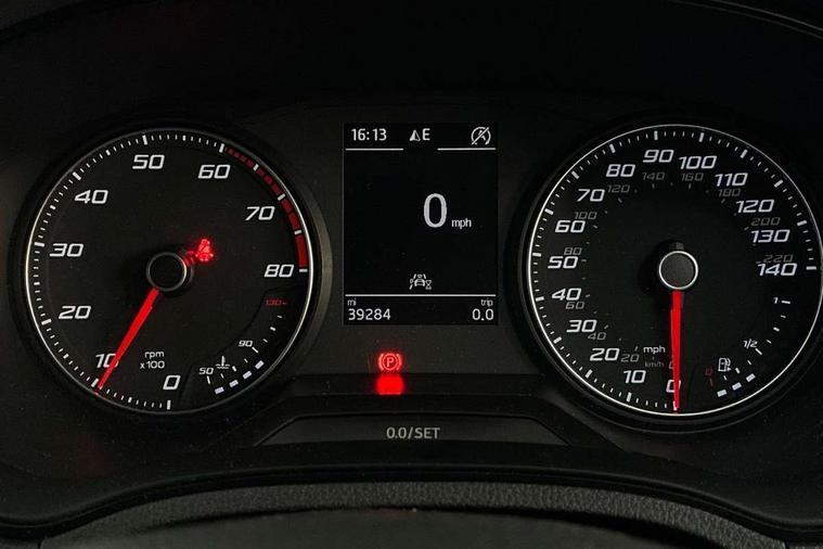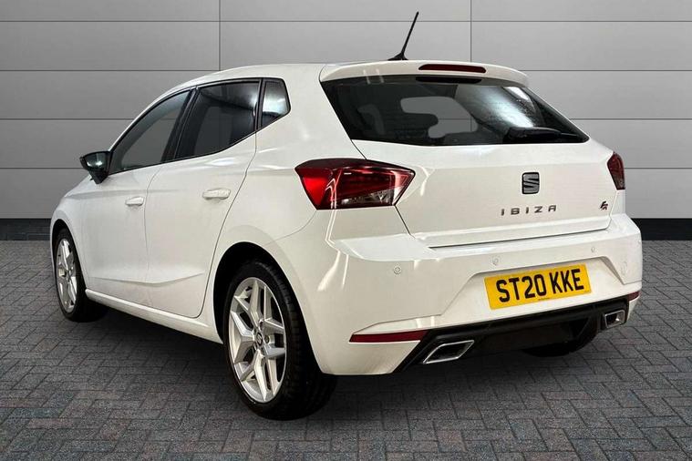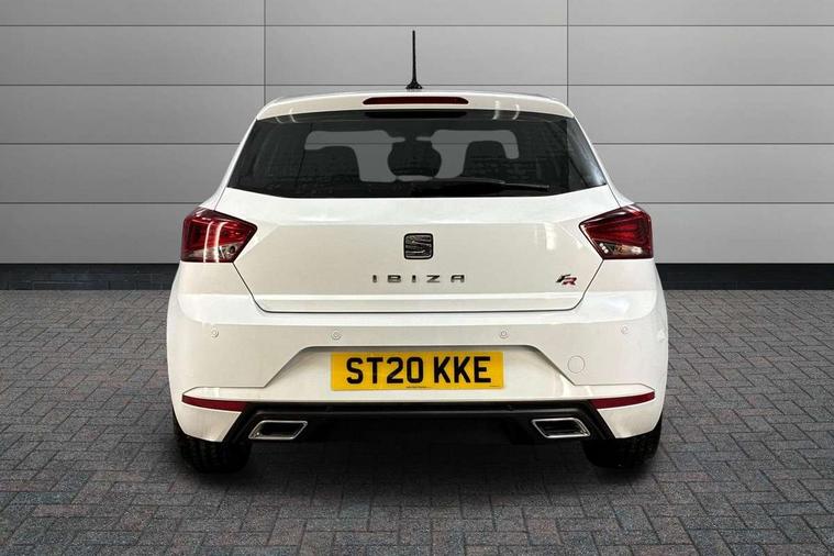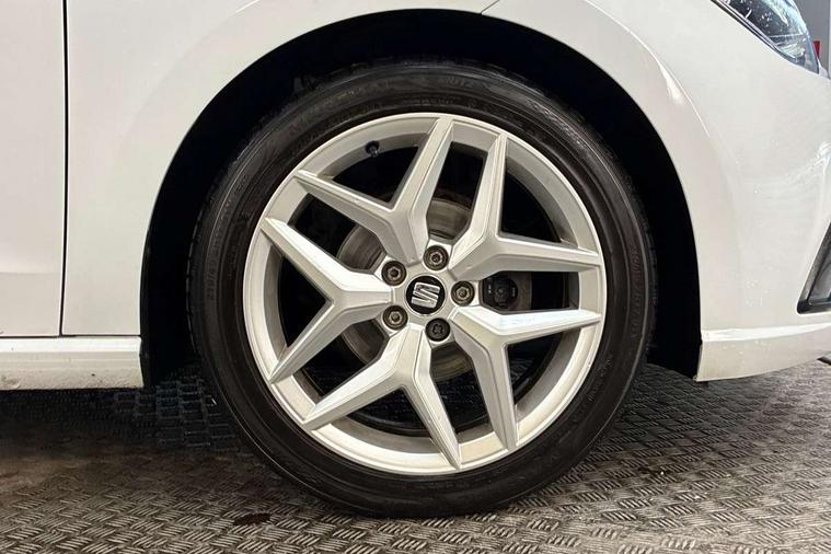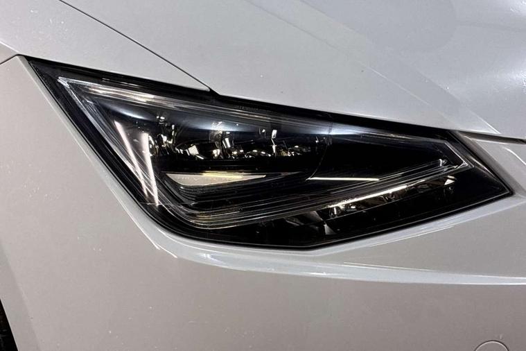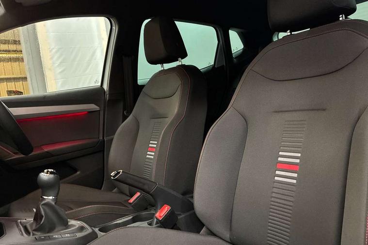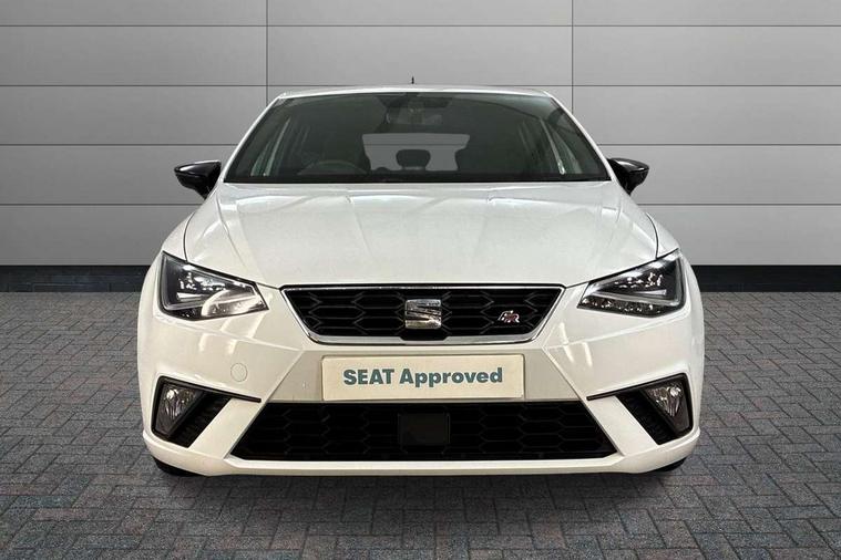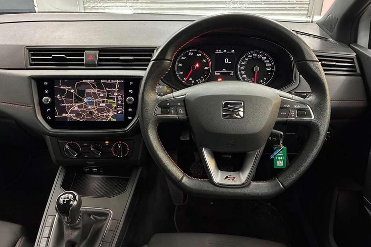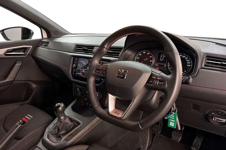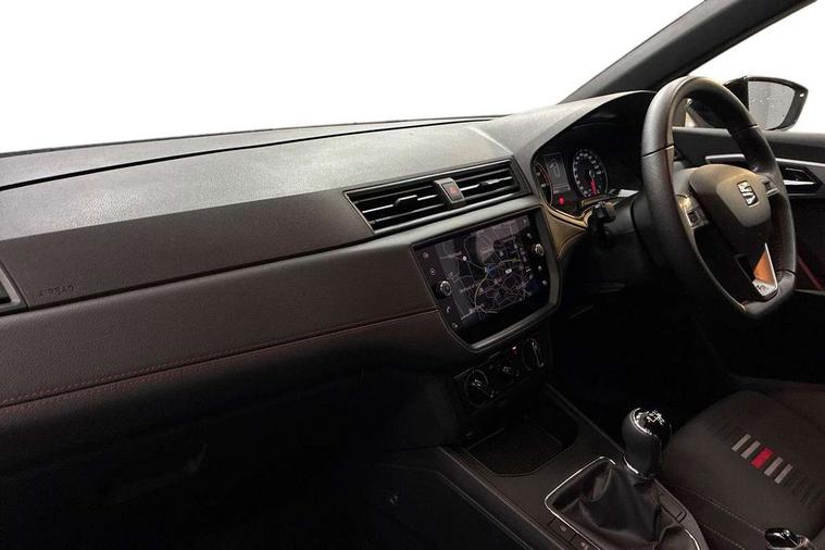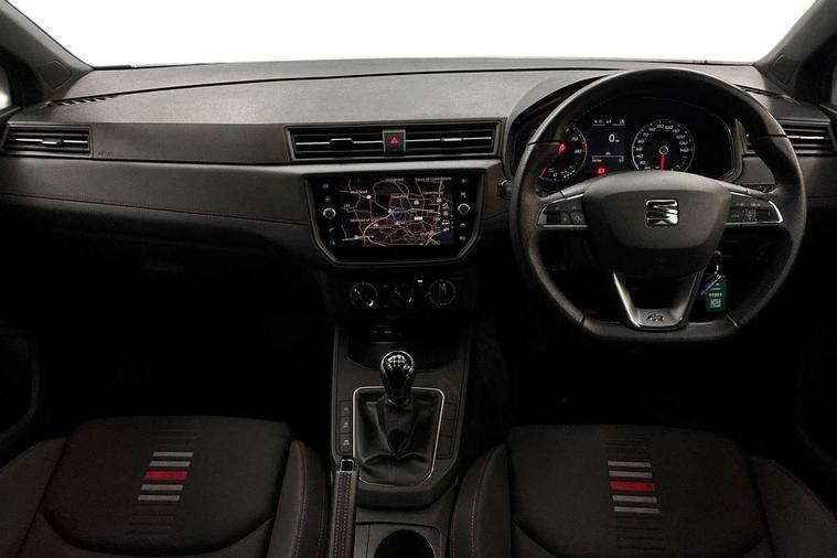 'Lights On' Reminder warning buzzer, Bluetooth Handsfree Phone Connection, Cruise control, Digital clock, Full Link Smartphone Integration with Mirror Link, Apple Car Play, Google Android Auto, Low fuel warning light, Outside temperature gauge, Power Steering, Satellite navigation system with 3D mapping, 8" touch screen, voice control and additional USB port, SEAT Drive profile, SEAT logo boot release, Trip computer, Sports suspension, 6 speakers, Auxiliary input socket, CD player, Digital Audio Broadcast (DAB) Tuner, Radio/MP3 player, SD card slot, SEAT USB media cable, Steering wheel mounted controls, USB port, Anti theft roof antenna, Auto dimming rear view mirror, Automatic headlights, Automatic rain sensing wipers, Body colour bumpers, Body colour door handles, Brilliant black door mirrors, Chrome front grille frame, Chrome grille, Coming/leaving home lighting function, Cornering front fog lights, Dark tinted rear windows, Electric folding door mirrors, Electric front windows, Electric headlight adjustment, Electrically adjustable and heated door mirrors, Exclusive FR rear bumper, Full LED headlights, LED daytime running lights, LED tail lights, Rear fog lights, Twin exhaust pipes, 3 rear headrests, 60/40 split folding rear seat, Air conditioning, Door and steering wheel ice metal decorative inserts, Driver's sunvisor with ticket holder/vanity mirror, Dust/pollen filter, Flat bottomed perforated leather steering wheel with red stitching and FR logo, Front courtesy lights, Front cupholders x 2, Front reading lights, Gear shift indicator, Glovebox, Height adjustable driver's seat, Height adjustable front/rear head restraints, Height adjustable passenger seat, Height/reach adjust steering wheel, Illuminated boot, Instrument lighting with brightness control, Leather handbrake, Multi-colour ambient interior lighting, Nora cloth upholstery, Passenger sunvisor, Rear top tether child seat ISOFIX attachment, Sports seats, Full LED headlight pack - Ibiza, 3 point seatbelts on all 3 rear seats, ABS, Active front headrests, Child locks on rear doors, Curtain airbags, Driver/Front Passenger airbags, ESP+EBA, Front assist (AEB), Front passenger airbag deactivation, Front side airbags, Hill hold control, Multi-Collision braking, Seatbelt warning, Tiredness recognition system, Tyre pressure monitoring system, Electronic engine immobiliser, Locking wheel bolts, Remote central locking + deadlocks, Volumetric alarm with back up horn, Leather dashboard, 17" Dynamic alloy wheels,