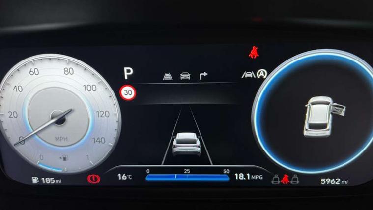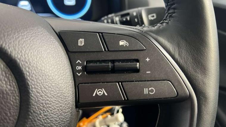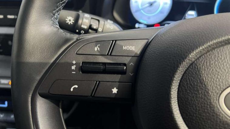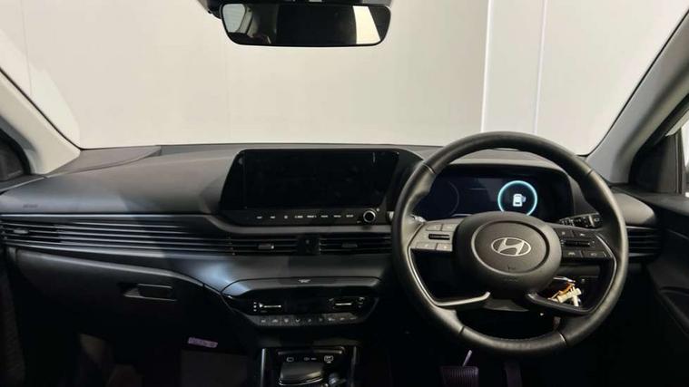 10.25" touchscreen + navigation, 2nd Gen eCall, 8" Touchscreen DAB Radio with android auto and apple carplay, Forward collision assist with car, pedestrian and cycle detection, Front parking sensor, Intelligent speed assist, Intelligent speed limit warning, Lane follow assist, Lane keep assist, MAP OTA updates, PAS, Rear parking sensor, Rear view camera with dynamic guidelines, USB C port front, USB C Port in rear, Automatic headlights with dusk sensor, Electric adjustable heated door mirrors, Electric folding door mirrors, Front grille mesh pattern design, High beam assist, LED 3rd brake light, LED daytime running lights, LED Headlights, LED taillights, Privacy glass - Rear windows and tailgate, Rain sensor, Rear side wing doors, Rear wiper, Repositioned flat metal hyundai emblem, Trailer wiring, 3 seat bench in 2nd row, Adjustable head restraints, Automatic air conditioning, Cloth upholstery, Floor mats, Heated front seats, Heated steering wheel, Leather steering wheel, Multi colour ambient lighting, Single front passenger seat, 3x3 point rear seatbelts, ABS with front and rear diagonally split, Autonomous emergency braking, Child locks on rear doors, Front ventilated disc brakes, Rear solid disc brakes, Tyre pressure monitoring system, 17" Alloy wheels, Tyre repair kit,