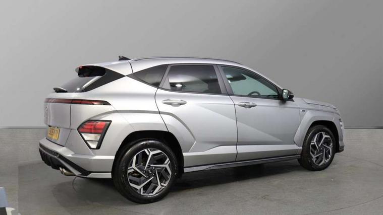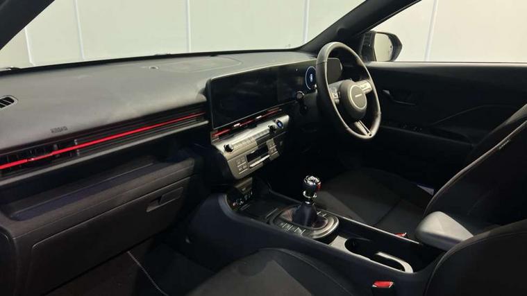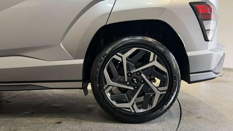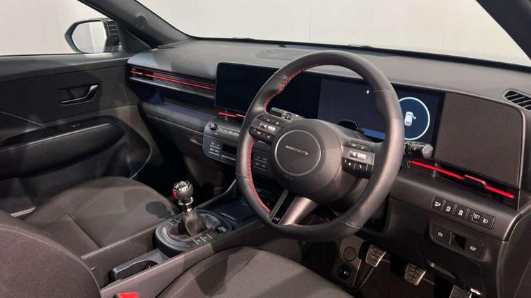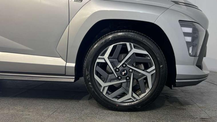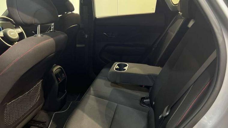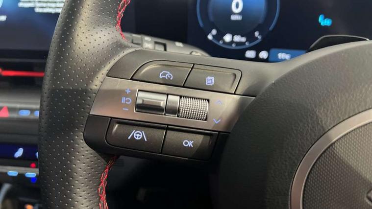 12.3" touchscreen centre console display satellite navigation with bluelink, live services and mapcare, Bluetooth connectivity with voice recognition, Cruise control, Driver status monitor (DSM), Driver supervision instrument cluster with 12.3" LCD display, eCall emergency call system, Feature on demand - Enabled, Forward collision avoidance assist (FCA 1.5) - Car, pededstrian, cycle and junction turning, Front parking sensor, Height adjustable power tailgate, Intelligent speed limit assist, Lane follow assist, Lane keep assist, Leading vehicle departure alert (LVDA), Parking system with rear camera and guidance system, PAS, Rear parking sensor, Roadside assistance, Wireless phone charging pad, Wireless Smartphone Integration includes Apple CarPlay and Android auto, 2 front USB C and 2 rear USB C charging points, DAB Digital radio, Speakers - Front, rear and tweeters, Steering wheel audio, phone and cruise controls, Auto dimming rear view mirror, Automatic headlights with dusk sensor, Automatic windscreen wipers with rain sensor, Body colour exterior door handles, Body coloured wheel arch inserts, Door mirror LED indicator lights, Electric front windows with anti-trap mechanism and one touch control, Electric rear windows, Electrically adjustable and heated door mirrors, Full LED MFR headlights, Gloss black door mirrors, LED daytime running lights, LED upper and lower rear lights, Power folding door mirrors, Privacy glass - Rear windows and tailgate, Rear roof spoiler with integrated LED brake light, Rear side wing doors, Rear wiper, Roof rails, Solar glass with front door glass and windscreen, Tinted glass in front and rear doors, Windscreen auto defog function, 12V power outlet in front console, 2 zone climate control, 3 seat bench in 2nd row, 40/20/40 split folding rear seat, Adjustable head restraints, Aluminium pedals, Ambient lighting, Driver and passenger front seat pockets, Driver's seat lumbar support, Driver/passenger manual seat height adjustment, Driver/passenger sunvisors and illuminated vanity mirrors, Floor mats, Heated front seats, Heated rear seats, Heated steering wheel, Height/reach adjustable steering column, Leather wrapped steering wheel and gear knob, LED centre interior light, LED front interior light, Luggage compartment LED lighting, Luggage shelf, Metal paint effect interior door handles, N Line cloth upholstery, Rear centre armrest with cupholders, Single front passenger seat, Vertical adjustment rear head restraints, N Line exterior design pack - Kona, Trailer wiring package - Kona, Airbag - front, front side, curtain and centre front airbag, Anti-lock brake system (ABS), Childproof rear door locks, Downhill brake control, Electric parking brake, Electronic stability control, Fixed 3 point for second row centre passenger seatbelt, Hill start assist control (HAC), Rear seat alert, Tyre pressure monitoring system, Alarm/immobiliser, Rear occupant alert, Remote central locking, Smart key with keyless entry and start/stop button, Five year annual vehicle health checks, Temporary mobility kit (TMK),