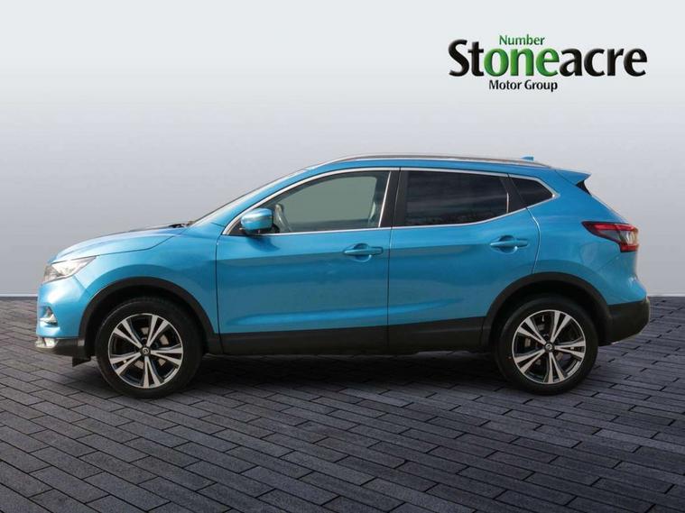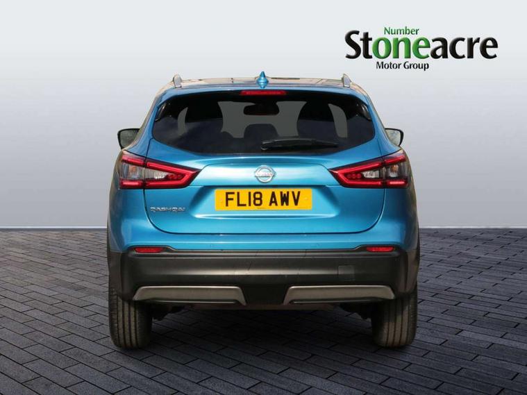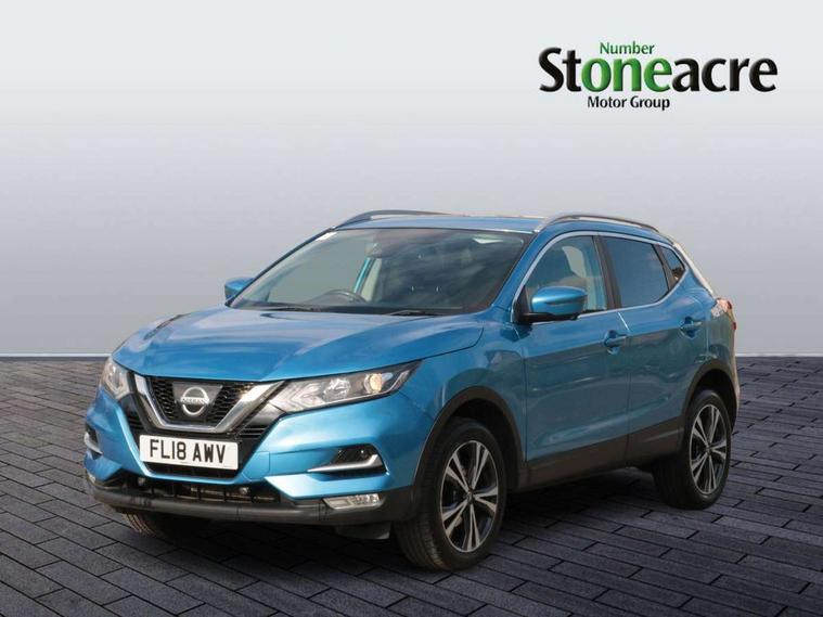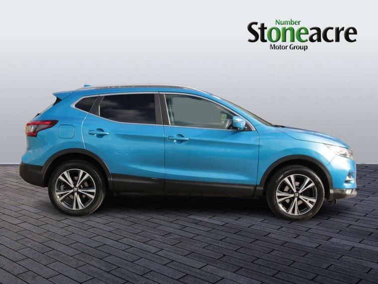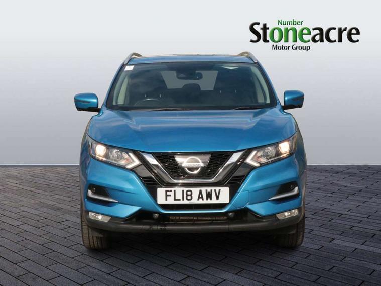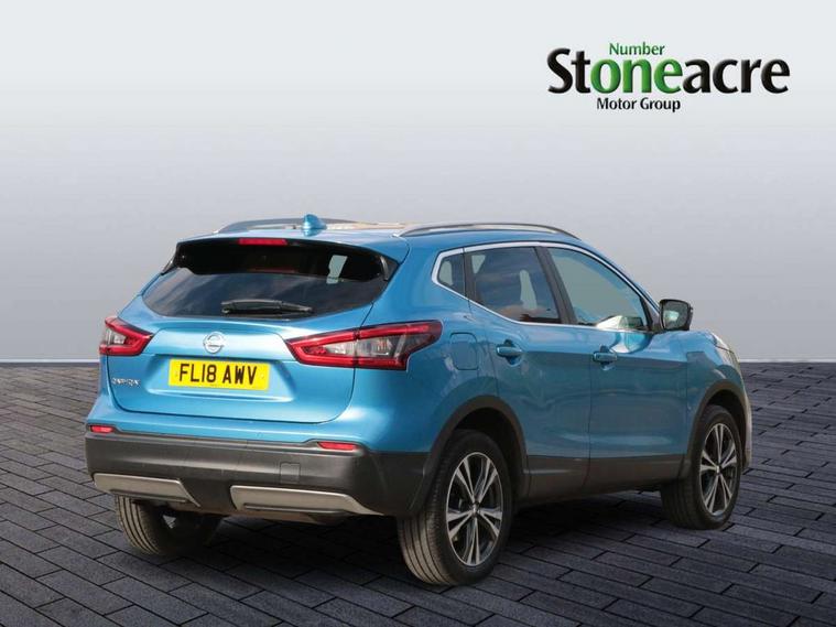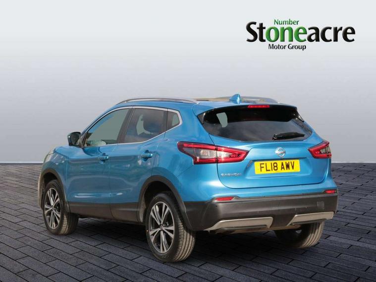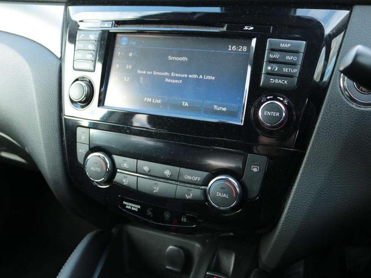 5" TFT driver information centre, Around View Monitor, Bluetooth phone integration system, Cruise control, Electric speed sensitive power steering, Front and rear parking sensors, Lane departure warning system, Nissan connect sat nav system, Outside temperature display, Push button starter, Rear view camera, Service interval indicator, Speed limiter, Traffic sign recognition, Trip computer, 'Shark fin' mobile antenna, 6 speakers, DAB Digital radio, Radio/CD, Smartphone apps, Steering wheel mounted audio controls, USB/aux input socket, Automatic headlamp activation, Body colour bumpers, Body colour door handles, Body colour door mirrors, Chrome window surround, Electric folding and heated door mirrors, High beam assist, Interior mirror with auto anti dazzle, LED indicators in door mirrors, Matt silver roof rails, One touch electric front/rear windows, Privacy glass, Rain sensor windscreen wipers, Rear roof spoiler, Rear wiper, 2 X front 12v power sockets, 60/40 split folding rear seat, Ambient interior lighting, Centre console with armrest, Chrome interior door handles, Cloth upholstery, Configurable luggage board system, Driver + front passenger lumbar support, Dual zone climate control, Front and rear door pockets with bottle holders, Front headrests, Front seat belt pre-tensioners with load limiters, Height adjustable driver's seat, Height adjustable passenger seat, Illuminated electric window switch, Isofix child seat preparation, Leather gearknob, Leather interior door handles, Leather knee rest, Leather steering wheel, Luggage compartment lighting, Parcel shelf, Pollen filter, Rake/reach adjustable steering wheel, Rear headrests, ABS, brake assist and EBD, Child locks on rear doors, Curtain airbags, Driver/front passenger airbag, Electronic parking brake, ESP + traction control, Forward emergency braking, Front passenger airbag deactivation, Height adjustable front seatbelts, Hill start assist, Seatbelt warning, Side airbags, Three 3 point rear seatbelts, Tyre pressure monitoring system, Alarm, Immobiliser, Intelligent Key, Remote central locking, Piano black interior trim, 18" Bi-colour alloy wheels, Tyre puncture repair kit,