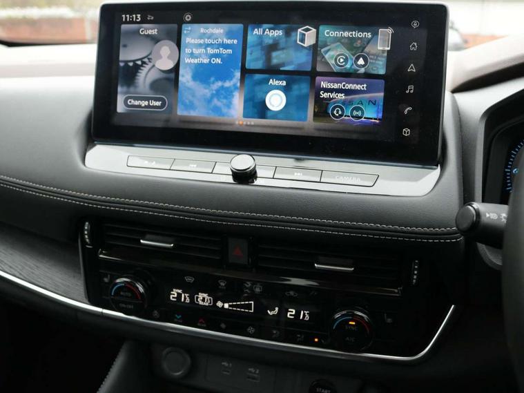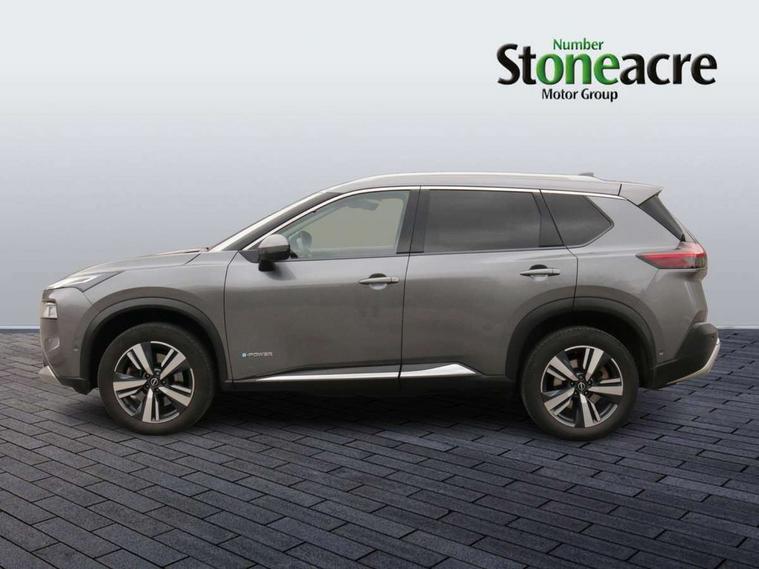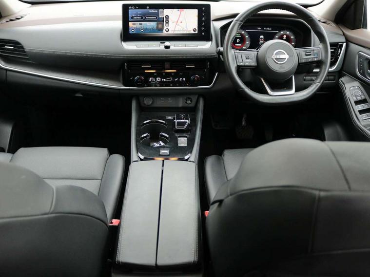 Advanced 10.8" head up display, Android auto/Apple CarPlay (Wired), Blind spot warning, Drive modes (sport, normal, eco), e-Pedal step, Electric speed sensitive power steering, Emergency and breakdown call, Front and rear parking sensors, Full Digital 12.3" TFT Digital Combimeter, Google maps services - search, weather, 3D maps and Google street view, Hands free power tailgate, Idle stop/start system, Intelligent around view monitor, Intelligent driver alert system, Intelligent forward collision warning, Intelligent lane departure warning, Intelligent lane intervention, Intelligent lane keep assist, Lane departure prevention, Maximum speed limiter, Moving object detection, Nissan connect 12.3 inch touchscreen infotainment system, Nissan connect nav with TomTom traffic, Pro pilot and head up display, ProPilot park, Push button starter, Rear cross traffic alert, Rear view camera, Remote control services - door locks, lights, horn and car locator, Telematics - notifications and connectivity services, TomTom live traffic services, Traffic jam pilot, Traffic sign recognition with legal speed adjustment, Trip computer, Virtual personal assistant and firmware over the air capability, Wireless apple carplay, Wireless charging pad, 6 speakers, AM/FM audio system with DAB, Bluetooth audio streaming, Front USB connections (Type-A and Type-C), Rear USB charging only ports (Type-A and Type-C), 3rd brake light, Auto dimming rear view mirror, Auto rear wiper when reversing, Body colour mirror caps, Body coloured door handles, Bodyside mouldings, Chrome side window finisher, e-POWER badging, Electric auto folding door mirrors, Electrically adjustable and heated door mirrors, Follow me home headlights, Headlights auto levelling system, High beam assist, Intelligent auto headlights, LED daytime running lights, LED headlights with adaptive driving beam, LED rear lights, One touch front and rear electric windows with remote opening and closing, Partially body coloured bumpers, Rain sensing wipers, Rear privacy glass, Rear reversing light (bulb lighting), Rear roof spoiler, Rear side wing doors, Rear styling plate, Shark fin antenna, Splash free wipers, Super UV and infrared cut glass, Thermaclear heated windscreen, Three blink turn signal, 12v power socket in dashboard and luggage, 3 bench rear seats in 2nd row, 3 rear headrests, Butteryfly console, Chrome interior door handles, Driver and front passenger sunvisors with illuminated vanity mirrors, Driver seat back pocket, Electric adjustable 2 way lumbar support for driver, Electric adjustable 2 way lumbar support for passenger seat, Electrically adjustable driver seat, Front and rear heated seats, Front centre console and armrest, Front cupholders, Front door with bottle holders, Heated steering wheel, Height adjustable driver's seat, Height adjustable front headrests, Height adjustable passenger seat, Leather shift knob, Leather steering wheel, Luggage board system, Luggage space lighting, Multifunction steering wheel, Passenger seat back pocket, Rear armrest with 2 cupholders, Rear door bottle holders, Single front passenger seat, Sliding second row seats, Split folding 2nd row - 40/20/40, Steering column mounted gear shift paddles, Synthetic leather monoform upholstery, Tilt/telescopic adjustable steering wheel, Tri zone automatic climate control with pollen filter, Two rear isofix child seat anchorage points with top tether, Sky pack - X-Trail, 3x3 point rear seatbelt pretensioners + load limiters, ABS with EBD and brake assist, Active brake limited slip, Auto hold function, Child locks on rear doors, Curtain and front side, far side airbags, Driver and passenger airbags, Driver, passenger and 2nd row rear seat belt reminder, Electronic parking brake, Front seatbelt pretensioners + load limiters, Height adjustable front seatbelts, Hill start assist, Intelligent blind spot intervention, Intelligent front emergency braking with pedestrian, cyclist recognition and junction assist, Intelligent rear automatic braking, Tyre pressure monitoring system, Vehicle dynamic control, Engine immobiliser, Intelligent Key, Remote central door locking with deadlocking, Thatcham Cat.1 alarm, 19" Diamond cut alloy wheels, Tyre puncture repair kit,