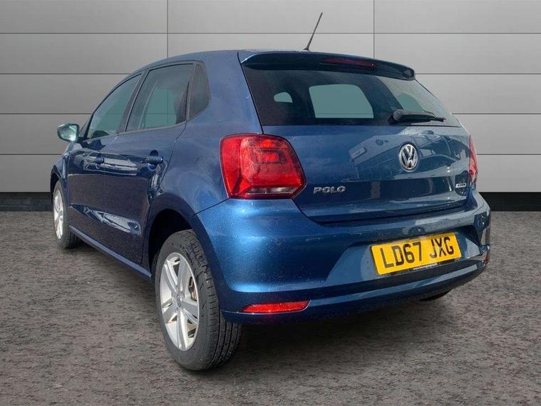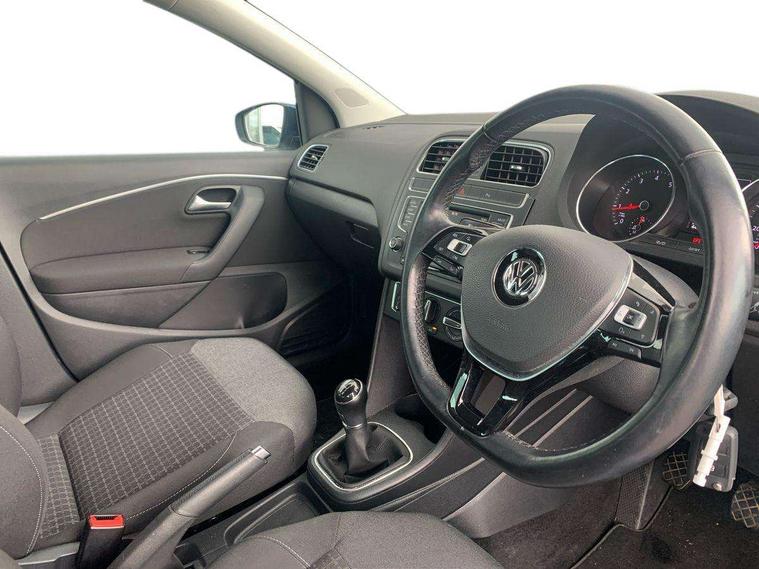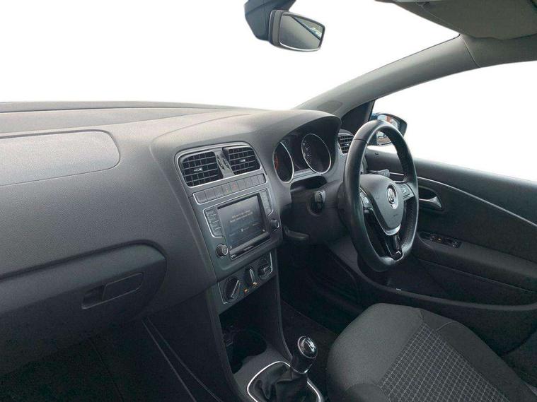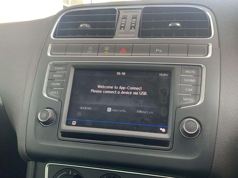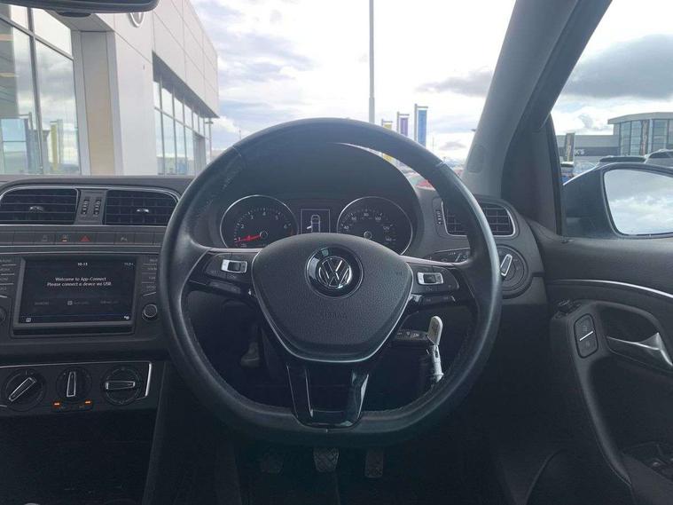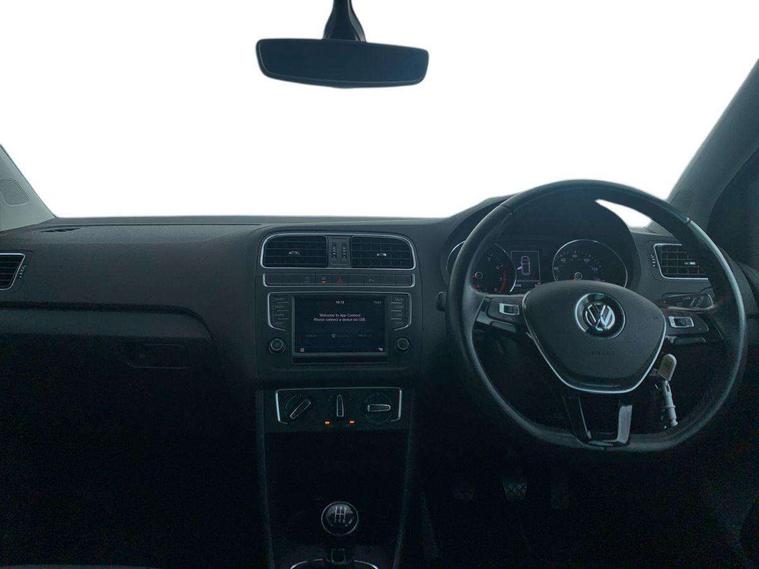 App-Connect, Bluetooth Telephone preparation, Cruise control + speed limiter, Driver alert system, Multi function display, Multifunction computer, PAS - speed related, Service interval indicator, Ultrasonic front and rear optical and audible parking sensors, Warning buzzer and light for front seatbelts unfastened, 6 speakers, Composition media system with radio, glovebox mounted CD, colour touch screen, SD card, aux-in, USB, multimedia interface, DAB Digital radio, Black grille with chrome surround, Body colour bumpers, Body colour door handles, Body colour door mirrors, Body coloured side sills, Chrome trimmed front air intake surrounds, Electric folding door mirrors, Electric front windows, Electric operated/heated door mirrors, Front fog lights with static cornering function, Front wash/wipe with interval delay, Heat insulated tinted glass 65% light absorbing from B pillar back, Heated rear window with auto timer, Rear electric windows, Rear windscreen washer and wiper with interval delay, 12V power socket in centre console, 2 bag hooks in luggage compartment, 2 cupholders, 3 rear head restraints, 3 spoke steering wheel, 4 grab handles, 60/40 split folding rear seat, Centre console storage, Chrome interior door handles, Driver and passenger sunvisors, Driver seat height adjust, Dust/pollen filter, Front door pockets, Front passenger seat height adjust, Front seat backrest storage nets, Front/rear reading lights, Glovebox, Height/reach adjustable steering column, Illuminated vanity mirror, Interior light with delay, Isofix Preparation 2 Rear child seats, Luggage compartment cover, removable, Luggage compartment lighting, Matt chrome gear lever gaiter surround, Multifunction leather steering wheel with leather gear knob/handbrake grip, Storage compartment in front doors, Storage compartment in rear doors, Sunglasses holder, Variable boot floor, Light and sight pack - Polo, 3 point height adj front seatbelts + pretensioners, 3x3 point rear seatbelts, ABS, Automatic post collision braking, Driver/front passenger airbag, Driver/Passenger whiplash optimised head restraints, ESC - Electronic Stability Control + traction control, ESP with EDL + ASR, Hill hold control, Hydraulic Brake Assist (HBA), Tyre pressure monitoring system, Alarm with remote central locking and interior protection, Electronic engine immobiliser, Air vents in Matt chrome, Matt chrome interior trim, 15" steel spare wheel,