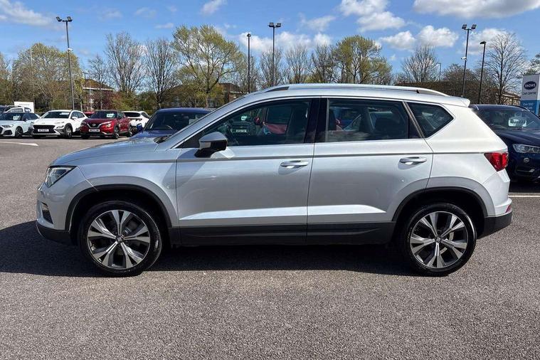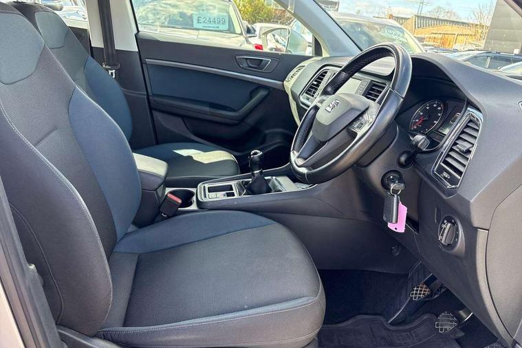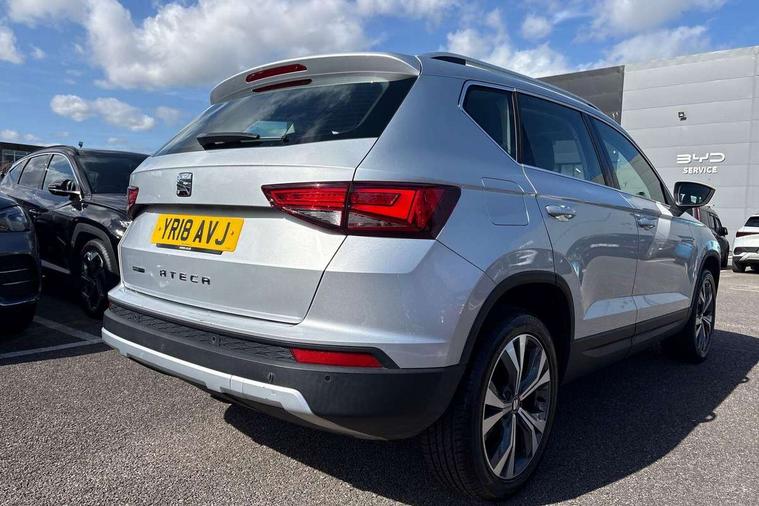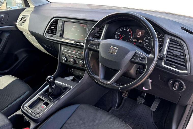 'Lights On' Reminder warning buzzer, Apple car play/Android Auto, Driver alert system, Electric speed sensitive power steering, Low fuel warning light, Multi function display, Outside temperature gauge, Rear parking sensor, Remote fuel flap release, SEAT logo boot release, Trip computer, Comfort suspension, XDS electronic differential lock, 2 USB sockets in rear, Mirror link app interface, Steering wheel mounted audio/phone controls, Aluminium roof rails, Automatic headlights, Body colour bumpers, Body colour door handles, Body colour door mirrors, Chrome headlight surround, Chrome side window trim, Chromed centre radiator grille surround, Electric folding door mirrors, Electrically adjustable and heated door mirrors, Front and rear electric windows, LED daytime running lights, LED front fog lights with static cornering light function, LED Headlights, LED tail lights, Matt black radiator grille, Rear wash/wipe, 12V power point front, 3 height adjustable rear headrests, 4 Lashing eyes in boot, 60/40 split folding rear seat, Active head restraints, Adjustable front armrest with storage compartment, Card holder, Cloth upholstery, Comfort front seats, Driver seat lumbar adjustment, Driver/passenger lumbar adjustment, Driver/passenger sunvisors with illuminated vanity mirrors, Dual zone climate control, Footwell illumination, Front cupholders x 2, Front reading lights, Front seat back storage pockets, Height adjustable driver's seat, Height adjustable front headrests, Height adjustable passenger seat, Illuminated boot, Illuminated glovebox, Isofix child seat preparation, Leather steering wheel and gear knob, Rear armrest, Rear central air outlet, Rear reading lights, Storage box under drivers seat, Navigation system pack - Ateca, Seat Media System Plus pack - Ateca, 3x3 point rear seatbelts, ABS, Auto hold function, Automatic post collision braking, Curtain airbags, Driver/Front Passenger airbags, Drivers knee airbag, Electronic parking brake, ESP+EBA, Front and rear seatbelt reminder, Front assist including city emergency braking, Front passenger airbag deactivation, Front side airbags, Hill hold control, Predictive pedestrian protection, Tiredness recognition system, Traction control, Tyre pressure monitoring system, 2 folding remote keys with window open/close function, Immobiliser, Locking wheel bolts, Remote central locking, Volumetric alarm with back up horn, Chrome effect dashboard facia,