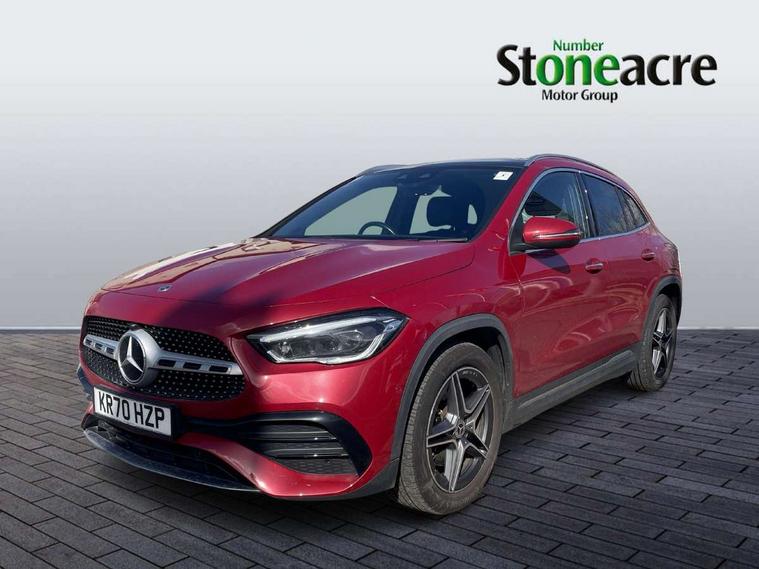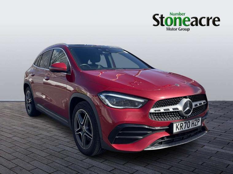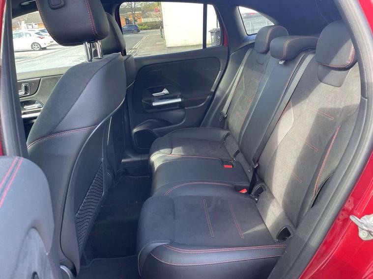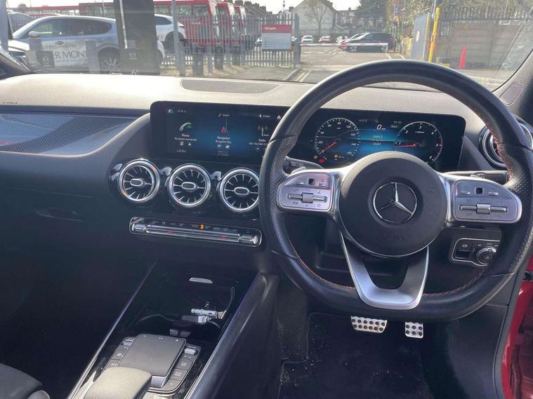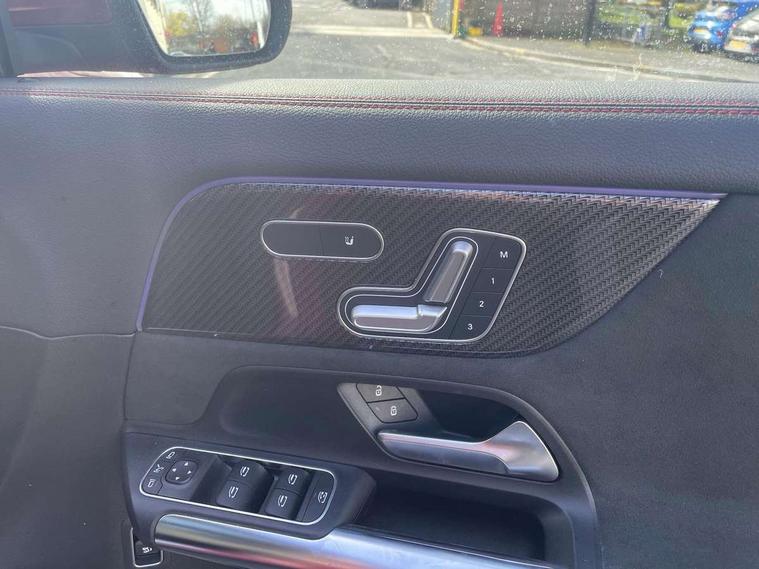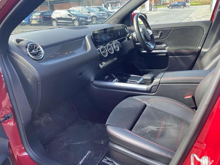 10.25 inch touchscreen central media display, 10.25" Digital instrument cluster display screen, Active lane keeping assist, Attention assist, Augmented reality navigation, Direct steering, DYNAMIC SELECT with a choice of driving modes (ECO, Comfort, Sport, Sport+ and Individual), Easy-pack tailgate, ECO start/stop function, Fluid level warning indicator for fuel, oil, coolant and washer fluid, Hard-disk navigation, Hey Mercedes Voice activation, Lamp failure indicator, Mercedes me connect including emergency call system, accident recovery, breakdown and maintenance management, Multi function trip computer, Outside temperature gauge, Owners manual and service booklet in English, Pre-installation for Vehicle Monitoring, Pre-installation for Vehicle set up, Pre-installation of private car share, Radio aerial integrated into front and rear windshields, Service indicator (ASSYST), Smartphone integration with Apple CarPlay and Android auto, Status display for rear seat belts in instrument cluster, Traffic sign assist, Wireless charging, Lowered comfort suspension, Rear axle multi-link, 2 USB ports (type C) in rear stowage compartment and one in front of center console, Bluetooth connectivity including audio streaming, DAB Digital radio, MBUX multimedia system with DAB digital radio and touchpad including satellite navigation, Media interface, Mercedes-Benz advanced sound system - 225W, Adaptive brake lights, Aerial for GPS, Aluminium roof rails, AMG front and rear apron, AMG specific/dual flow exhaust pipes in chrome (non-functional), Automatic headlamp activation, Beltline strips and weather strip in chrome, Black grained claddings with chrome parts, Body colour bumpers, Body colour door mirrors, Body coloured door handles with chrome insert for keyless entry, Car wash function, Dark privacy glass from B-pillar backwards, Electric front windows, Electric rear windows, Electrically adjustable and heated door mirrors with integrated LED indicators, Heated glass rear windscreen + timer control, Heated windscreen wash system, Interior mirror with black reading lamps and frameless, LED tail lights in two piece design, LED third brake light, Matt titanium grey front and rear apron trim, Multibeam LED headlamps with adaptive highbeam assist plus, Panoramic sunroof, Pre-installation for trailer coupling, Rain sensor windscreen wipers, Rear fog lights, Roof spoiler, Single lamella raditor grille with chrome dotted diamond grille and inlay, 12V power socket in centre console, 3 spoke multifunction sports steering wheel in nappa leather with flattened bottom and perforated grip area, 40:20:40 split folding rear seat backrests, Adjustable head restraints, Air conditioning - Two zone thermotronic luxury automatic climate control with display, Ambient lighting in front headrests, AMG floor mats with AMG lettering and stiched edging, Artico man-made leather/Microfibre Dinamica upholstery with red contrast stitching, Auto Mercedes-Benz child seat recognition sensor, Black roof lining, Brushed door pulls in silver chrome, Courtesy light in boot, Electrically adjustable front memory seats with four way lumbar support, Front centre armrest with stowage, Galvanished gear shift paddles on steering wheel, Heated front seats, Illuminated door sills, Illuminated glovebox, Interior lighting - 64 colour Ambient lighting, Leather trimmed gearknob, Luggage net on driver/front passenger seat backrest, Manually height and reach adjustable steering column, Multi-gesture touchpad control on center console, Net in front passenger footwell, Seat cushion angle adjustment, Seat cushion depth adjustment for improved seating, Sports pedals in brushed stainless steel with black rubber studs, Sports seats, Stowage compartment in centre console, Stowage compartment with retractable cover, Sunvisors with illuminated vanity mirrors, Twin front cup holders, Two outer rear seat isofix and top tether child seat fixing points, AMG body styling pack - GLA, Interior lighting with light and sight pack - GLA, Load compartment pack - GLA, Mirror pack - GLA Class, Off road engineering pack - GLA, Parking pack - GLA, 3 rear 3 point seatbelts, ABS with Brake Assist, Active bonnet pedestrain safety measure which detects an impact and raises bonnet by 65mm, Active brake assist includes forward collision warning system with autonomous braking, Adaptive brake assist with hold function and hill start assist, Bonnet with power domes, Brake pad wear warning indicator, Childproof locks manually operated for rear doors and electrically operated for rear power windows, Crash responsive emergency lighting, Driver and passenger head and side airbags, Drivers knee airbag, Dual stage driver/passenger airbags, Electronic parking brake, ESP curve dynamic assist, ESP with ASR, Front and rear seatbelt reminder, Front brake callipers with Mercedes Benz logo lettering on front, Front brake discs internally ventilated and perforated, Front passenger seat occupancy sensor, Tyre pressure monitoring system, Warning triangle and first aid kit, Window airbags, Alarm system with immobiliser and interior protection -Thatcham category 1, Keyless Go Lock/Unlock function, Keyless Go starting function, Remote central locking and crash sensor with emergency opening function, Vehicle key with decorative surround in chrome, Carbon structure trim, Chrome air vent surrounds, 19" AMG 5 twin spoke light alloy wheels aerodynamically optimised painted in tantalite grey with a high sheen finish, Summer tyres, Tirefit tyre sealant kit,