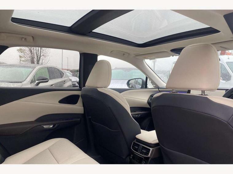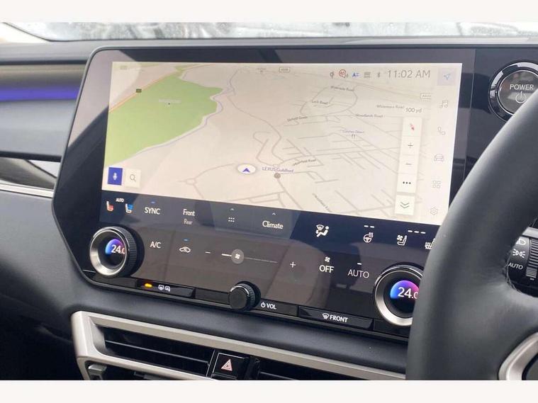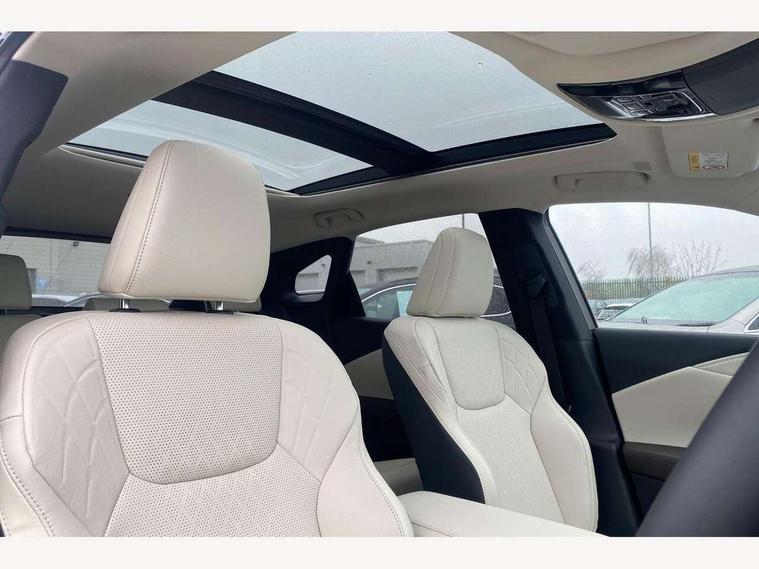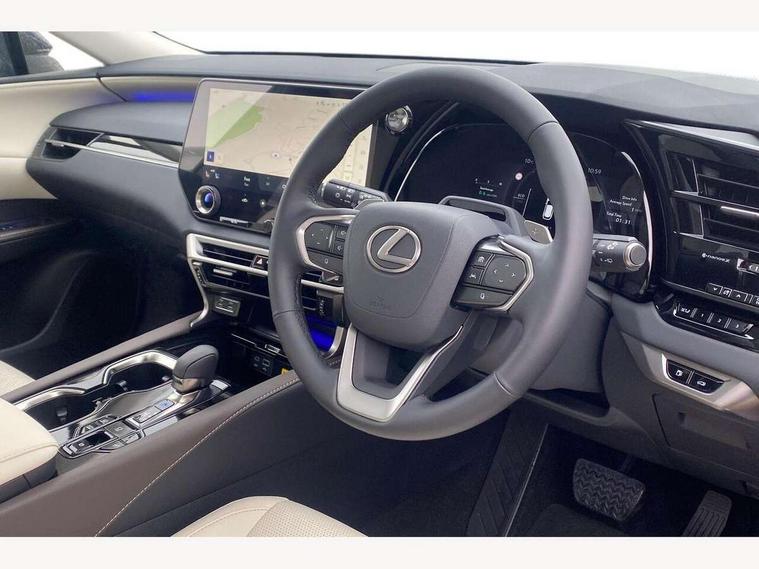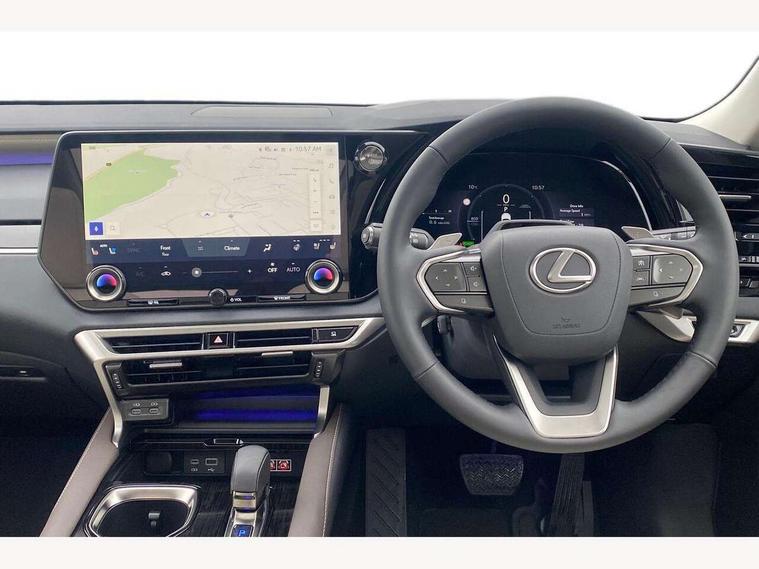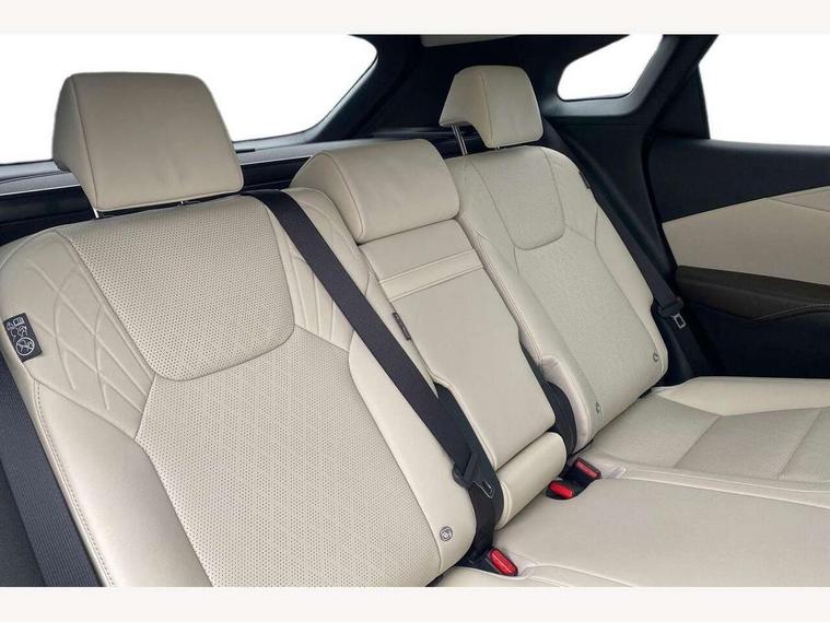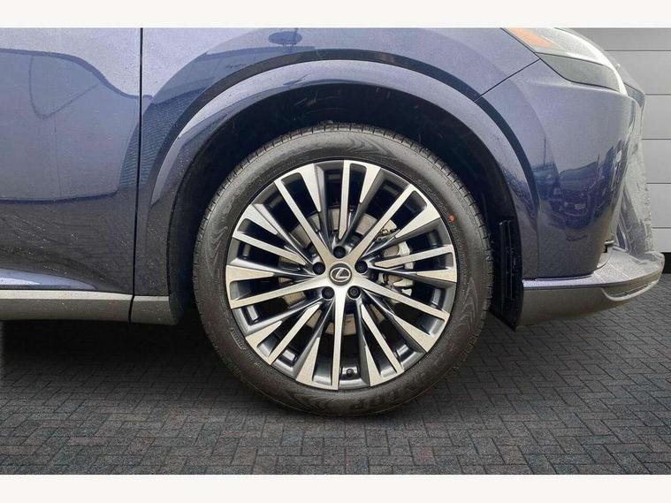 360 degree panoramic view monitor, Bluetooth mobile phone connectivity, BSM - Blind spot monitoring, Drive mode selector, Driver monitoring system, E-call, Head up Display, Intelligent clearance sonar, Lexus link connected services including over the air updates, MM21 Lexus link pro - 14" HD touchscreen with embedded and cloud based navigation, voice assistant, connected services, over the air and always online, Push button starter, Rear cross traffic alert, Speed sensitive electric power assisted steering, Ultrasonic parking sensors, Wireless Apple CarPlay and wired Android Auto, Wireless Smartphone charger, 3 pin to Type 2 10A charging cable, 6.6 kW onboard charger, E-Four Automatic transmission, Type 2 AC charging, Type 2 mode 3 32A charging cable, Vehicle Stability Control (VSC), 12 speakers audio, 5 USB ports (3 front USB C and 2 rear USB C), DAB Digital radio, 3 projector bi-beam LED headlight with auto high beam, Auto dimming rear view mirror, Auto headlights, Front and rear one touch power windows with voice command, Front and rear silver window frame mouldings, Glove and towel set, Headlight washers, Heated, auto-folding door mirrors, auto dimming with rerverse tilt, turn indicators and panoramic view sensors, L-shaped rear light bar, LED brake lights and rear lights with emergency brake signal, LED cornering headlights, LED daytime running lights, LED front and rear fog lights, LED Indicators, Power back door with kick sensor, Privacy UV glass, rear doors and tailgate, Rain sensor windscreen wipers, Rear side wing doors, Rear wash/wipe, Roof rails, Variable front intermittent wipers, 12V accessory port centre console and luggage compartment, 2 cup holders in centre console, 2 way electric lumbar support for driver and front passenger, 2 x Sunvisors with vanity mirror and lamp, 3 rear headrests, 3 seat bench in 2nd row, 40:20:40 split folding rear seats, 64 colour LED ambient interior illumination with 14 pre-set themed colour tones, 8 way electrically adjustable front seats, Charge cable bag, Driver seat memory function, Easy access driver seat, Easy access steering wheel, Front aluminium scuff plates, Front headrests, Front tray in front of centre console, Glovebox, Heated and ventilated front seats, Heated steering wheel, Leather steering wheel, Lever type shft control, Manually adjustable rear seats, Power adjustable steering wheel, Rear resin scuff plates, Single front passenger seat, Smooth leather upholstery, Textile carpet mats, Three zone climate control air conditioning system, Two way opening centre armrest with storage, 2 x Isofix child rear seat restraints, 3 point ELR front and rear seatbelts with pretensioners, ABS, Curtain shield airbags (front and rear), Driver and front passenger 2 stage airbag, Driver/front passenger side airbags, Drivers knee airbag, E-Latch with safe exit assist, EBD + Brake Assist, Electronic parking brake, Electronically controlled braking, Extended lexus safety system+ 3 - lane change assist, front cross traffic assist, Front and rear left/right force limiters and tension reducers, Front and rear left/right seatbelt reminders, Front centre airbag, Hill assist control, Lexus safety system+ 3 - dynamic radar cruise control, pre collision system day and night, lane tracing assist, road sign, Manual child lock in rear doors, Passenger airbag cut-off device, Traction control, Tyre pressure warning, 2 x remote key fobs, Customisable auto door lock, Locking wheel nuts, Motion sensor key, Smart keyless entry, Thatcham category 1 alarm + immobiliser, VIN etching, Black Inlay, 21" Alloy wheels,