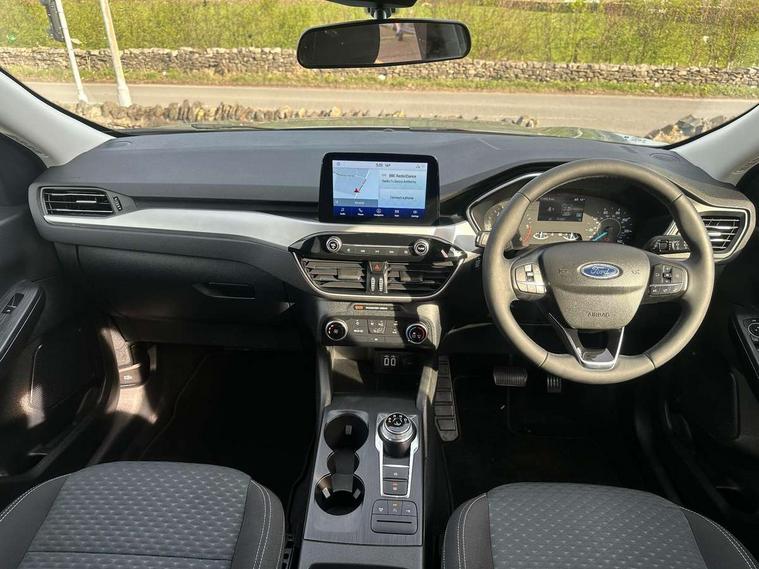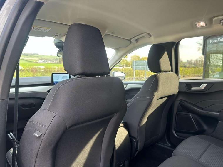Analogue cluster with speedometer, rev counter and trip computer, Cruise control with adjustable speed limiter, Ford easy fuel, Ford SYNC 3 with 8" TFT LCD touchscreen, App Link, andriod auto/apple carPlay, emergency assistance and navigation with Ford pass connect, Front and rear parking sensors, Lane keeping aid with lane departure warning, Manual tailgate, Power assist steering, Selectable drive modes, Service interval indicator, Standard suspension, Twist beam rear suspension, Ford DAB audio system with 6 speakers, 2 USB ports and Radio/CD, Auto headlamps (on/off), Day/night rear view mirror, Electrically operated and heated door mirrors, Front fog lights, Halogen Projector Headlamps, LED daytime running lights, LED rear lights, Power front/rear windows with global close, Privacy glass, Quickclear heated windscreen, Rear spoiler, Silver roof rails, Third brake light, Twin exhausts, 2nd row sliding seats with 60:40 split, 4 way manually adjustable passenger seat, 8 way manual driver seat including lumbar support and height adjust, Centre console with electronic parking brake, Cloth upholstery, Front and rear head restraints, Front floor mats, Manual air conditioning, Rear charging point, Sports seats, 3x3 point rear seatbelts, Airbags - front driver/passenger, front and rear curtain, Drivers knee airbag, Electronic stability control (ESC) and ABS, Ford MyKey Gen 2 safety system, Manual child proof rear door locks, Post collision braking, Pre collision assist with autonomous emergency braking, Rear seat Occupancy alert, Tyre pressure monitoring system, Engine immobiliser, Ford Power start button, Locking wheel nuts, Remote powered central double locking doors, Thatcham category 1 alarm, 17" 5x2 spoke shadow silver finish alloy wheels,