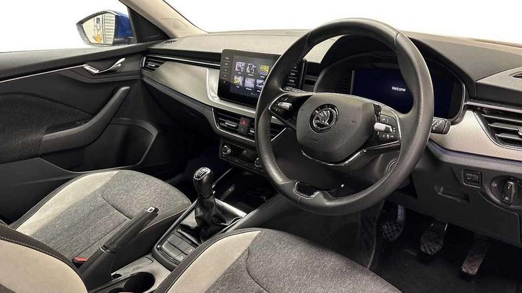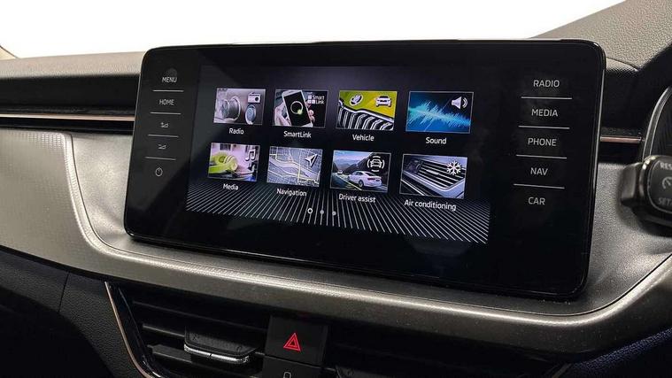 Amundsen satellite navigation with 9.2" glass colour touchscreen display, web radio, voice control and traffic sign recognition, Bluetooth system, E-call, Front assist system, Gesture control, PAS, Rear view camera, Service indicator, Speed limiter, Wireless SmartLink for apple car play, android auto and mirrorlink, 8 Speakers, Auxiliary input socket, DAB Digital radio, Body colour bumpers, Body colour door mirrors and handles, Chrome grille surround, Dimming rear view mirror with black surround, Electric folding door mirrors, Electrically adjustable and heated door mirrors, Front and rear electric windows, Headlight range control, Heated rear window, LED rear lights with dynamic indicators, LED third brake light, Light sensors, Privacy glass, Rain sensor, Rear fog lights, Rear side wing doors, Rear wiper, 12V Accessory socket in centre console, 3 seat bench in 2nd row, Chrome inner door handles, Dual zone climate control, Front head restraints, Glove compartment with illumination, Ice scraper, Isofix child seat fittings on outer rear seats, ISOFIX on front passenger seat, Manual lumbar support for front seats, Rake/reach adjustable steering wheel, Reading lights, Single front passenger seat, Sun visors with illumination on front passenger, Textile floor mats, Third rear headrest, Top tether for front passenger seat, Umbrella in driver's door, 3x3 point rear seatbelts, Airbags - driver and front passenger, ESP, Front passenger airbag deactivation switch, Front side airbags with curtain airbags, Hill hold control, Manual parking brake, Manual rear child locks, One tone horn, Rear disc brakes, Seatbelt reminder for driver an co-driver, Traction control, Tyre pressure monitor, Anti-theft alarm system with interior monitoring, backup horn, towing protection and remote central locking with SAFE system, Anti-theft wheel bolts, Electronic engine immobilizer, Latice curved decorative insert on the dashboard with hot stamping in copper and white ambient lighting white,