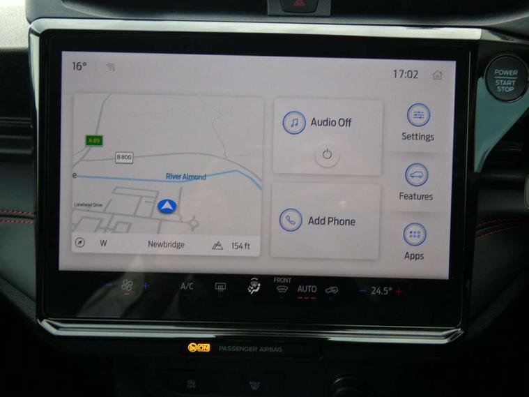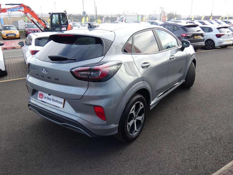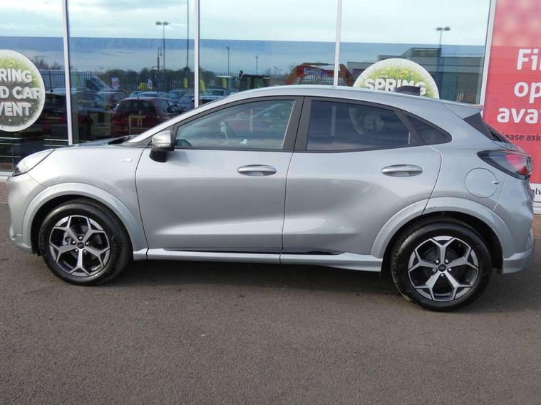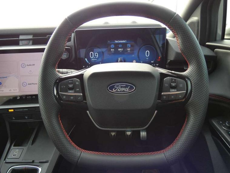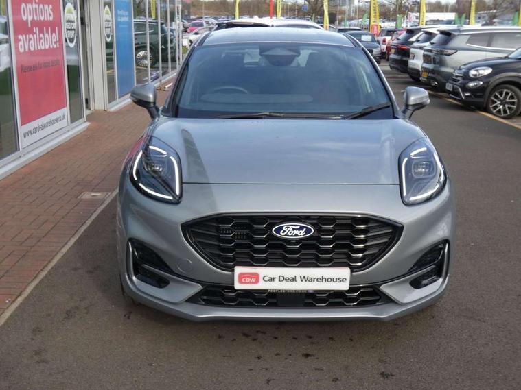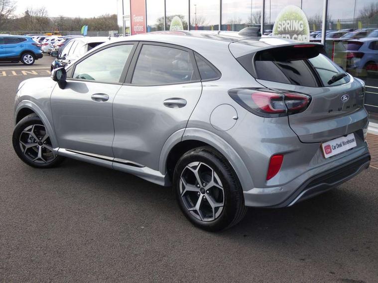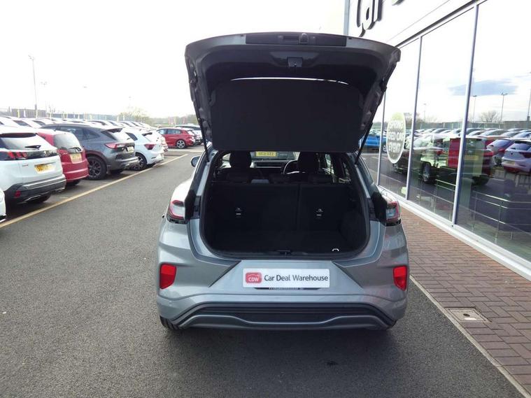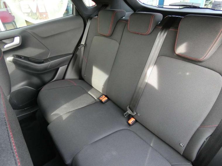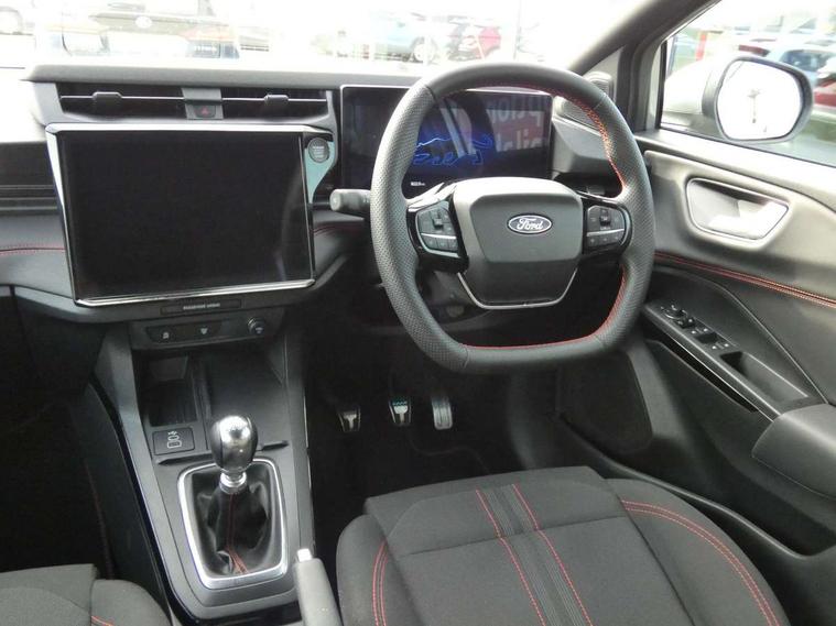 Driver impairment monitor, Emergency call service, Ford easy fuel, Full digital 12.8" instrument cluster, Lane keeping aid with lane departure warning, Power assist steering, Selectable drive modes(Normal, Eco, Sport, Slippery and Trail), Speed sign recognition, Sport suspension, 12" landscape touchscreen display with wireless apple car play and android auto 6 speaker audio system, Ford pass connect and emergency assistance, Ford SYNC4 with connected navigation, Automatic headlights with rain sensing wipers and auto high beam, Front fog lamps, LED daytime running lights, LED rear lamps, LED third brake light, Power foldable heated door mirrors with puddle lamps and puma logo protection, Quickclear heated windscreen, Rear privacy glass, Rear side wing doors, Rear wiper, ST-Line body styling kit with unique grille, 3 seat bench in 2nd row, Centre console with armrest and stowage, Electronic automatic temperature control (EATC), Ford megabox extended bootspace, Front and rear head restraints, Front floor mats, Manual 4 way driver seat adjust with lumbar adjustment, Single front passenger seat, ST- Line cloth trim with red stitching, 3 rear seatbelts, Child safety lock, Electronic stability control (ESC) and hill start assist, Pre-collision assist with autonomous emergency braking, pedestrian/cyclist detection & post-collision braking, Tyre pressure monitoring system (TPMS), Thatcham alarm,