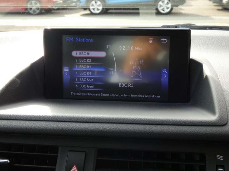Bluetooth mobile phone connection, Digital clock, Drive mode selector, EPS with speed sensitive steering, Lexus Navigaton System, Lexus safety systems+ Dynamic radar cruise control, pre-collision system, lane keep assist, road sign assist, automatic high beam, Push button starter, Rear parking sensors, Reversing camera, Trip computer, Vehicle Dynamics Integrated Management, Vehicle Stability Control (VSC), 2 USB ports, 4.2" thin film transistor, AUX socket with VTR compatibility, DAB Digital radio, Lexus media display with 6 speakers, 7" display screen, CD and rotary dial controller, Black scuff plates, Body colour bumpers, Front and rear one-touch automatic power windows equipped with a jam protection, Halogen headlights, Heated and electrically folding outside mirrors with turn indicators and puddle light, LED brake lights and rear lights with emergency brake signal, LED daytime running lights, LED front fog lamps, Rain sensor windscreen wipers, Rear spoiler, Rear wiper, 2 cup holders in the front and rear centre console, 2 map pockets in the rear of the front seats, 2 x coat hooks in the rear, 2 x sun visors with vanity mirror and lamp, 4 x tie down hooks in the boot, 60/40 split folding rear seat, Card holder installed in drivers sun visor, Driver 6-way manually adjustable front seat, Driver and passenger door pocket, Dual zone climate control, Fabric upholstery, Front and rear head restraints, Front and rear textile carpet mats, Front centre armrest with storage, Front glove box with lock, Manually reach and rake adjustable leather steering wheel, Multifunction steering wheel, Passenger 4-way manually adjustable front seat, Storage tray under the deck board boot + storage location for tonneau cover, Sunglasses storage by interior rear view mirror, Whiplash lessening front seats, 2 x Isofix child rear seat restraints, 3 point ELR front seatbelts with pretensioners, ABS, BAS (Brake Assist System), Driver and front passenger 2 stage airbag, Driver and front passenger knee airbag, Driver and passenger side airbags, ECB (Electronically Controlled Brake System), Electronic brake force distribution, Front and rear curtain airbags, Hill assist control, Passenger airbag cut-off device, Three 3 point rear seatbelts, Traction control, Tyre pressure warning, Anti-theft system with siren, intrusion sensor, tilt sensor and immobiliser, Locking wheel nuts, Remote central locking, Two motion door lock with double lock, VIN Window etching, 17" Alloy wheels, Space saver spare wheel,