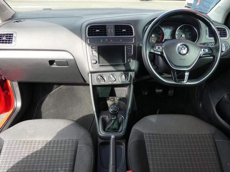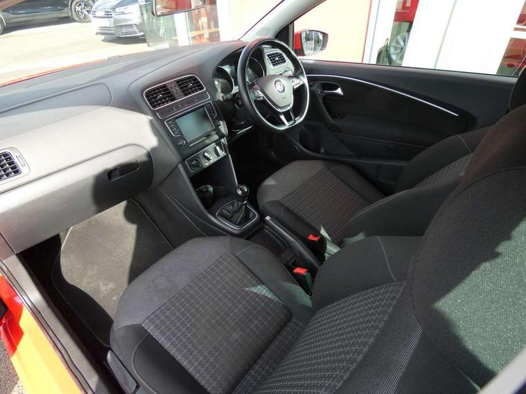 Bluetooth Telephone preparation, Driver alert system, Multi function display, Multifunction computer, PAS - speed related, Rear view camera, Service interval indicator, Warning buzzer and light for front seatbelts unfastened, 6 speakers, Composition media system with radio, glovebox mounted CD, colour touch screen, SD card, aux-in, USB, multimedia interface, DAB Digital radio, Black grille with chrome surround, Body colour bumpers, Body colour door handles, Body colour door mirrors, Body coloured side sills, Chrome trimmed front air intake surrounds, Electric front windows, Electric operated/heated door mirrors, Front fog lights with static cornering function, Front wash/wipe with interval delay, Heat insulated tinted glass 65% light absorbing from B pillar back, Heated rear window with auto timer, Rear windscreen washer and wiper with interval delay, 12V power socket in centre console, 2 bag hooks in luggage compartment, 2 cupholders, 3 rear head restraints, 3 spoke steering wheel, 4 grab handles, 60/40 split folding rear seat, Centre console storage, Chrome interior door handles, Driver and passenger sunvisors, Driver seat height adjust, Dust/pollen filter, Easy entry slide seats (access to rear seats), Front door pockets, Front passenger seat height adjust, Front seat backrest storage nets, Front/rear reading lights, Glovebox, Height/reach adjustable steering column, Illuminated vanity mirror, Interior light with delay, Isofix Preparation 2 Rear child seats, Luggage compartment cover, removable, Luggage compartment lighting, Matt chrome gear lever gaiter surround, Multifunction leather steering wheel with leather gear knob/handbrake grip, Storage compartment in front doors, Sunglasses holder, Variable boot floor, Cruise and Park Pack - Polo, 3 point height adj front seatbelts + pretensioners, 3x3 point rear seatbelts, ABS, Automatic post collision braking, Driver/front passenger airbag, Driver/Passenger whiplash optimised head restraints, ESC - Electronic Stability Control + traction control, ESP with EDL + ASR, Hill hold control, Hydraulic Brake Assist (HBA), Tyre pressure monitoring system, Alarm with interior protection, Electronic engine immobiliser, Remote central locking with 2 remote folding keys, Air vents in Matt chrome, Matt chrome interior trim, 15" steel spare wheel,