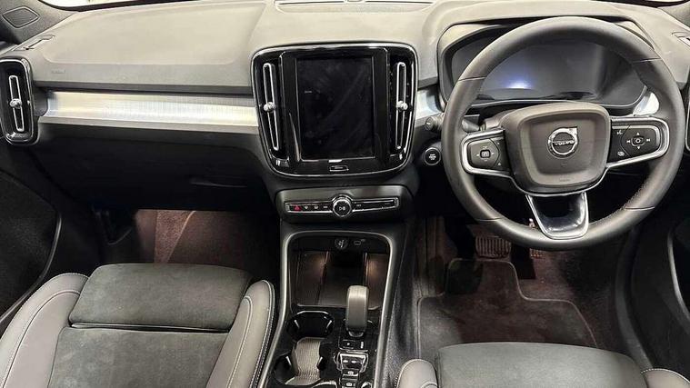 12.3" Progressive Driver Display, 9" centre console portrait touch screen, Adjustable steering wheel force, Android auto (Wired), Apple carplay (wired), Bluetooth handsfree system, Driver alert control, Driver assistance (pilot assist and adaptive cruise control), Driver awareness - Blind spot information system with steer assist, cross traffic alert with autobrake and rear collision warning and mitigation, E-call, Front and rear parking sensors, Front park assist, Google automotive services - Enabled entertainment apps, navigation with google maps, voice recognition with google assistant, Hands free power tailgate, Intelligent speed assistance, Lane keeping aid, Oncoming Lane Mitigation, Speed sensitive steering, Volvo cars services with app - Driving journal, engine remote start, remote door locking/unlocking and vehicle dashboard, Wireless/Inductive Mobile Phone Charging, Automatic transmission with start/stop and manual change functions, Dynamic chassis, DAB Digital radio, Steering wheel mounted remote controls, Adaptive brake lights with high level LED brake lights, Auto dimming feature for exterior door mirrors, Auto dimming interior mirror, Auto folding and heated power door mirrors, Automatic headlamp levelling, Automatic LED Headlights + Active high beam incorporating daytime running lights, Front aluminium tread plates, Front and rear electric windows, High gloss black front and rear skid plate, High gloss black front bumper deco, High gloss black mesh front grille with high gloss black surround, High gloss black window trim, Home safe and approach lighting, Integrated roof rails in high gloss black, LED front fog lights, Puddle lights, Rain sensor with automatic windscreen wiper activation, Rear side wing doors, Rear wiper, Roof antenna, Roof spoiler, Visible VIN plate, 12V socket in front tunnel console and luggage compartment, 2-Zone electronic climate control with CleanZone air quality system and pollen filter, 3 seat bench in 2nd row, 3 Spoke tailored steering wheel with chrome trim, 60/40 versatile split folding rear seat, Centre console cupholders and storage, Charcoal carpet and floor mats, Charcoal headlining, Connect suede textile/microtech upholstery, Flexible load floor and grocery bag holder, Front headrests, Front seat cushion extensions, Glovebox bag hook, Heated front seats, Height adjustable passenger seat, Height/reach adjustable steering column, High gloss centre tunnel deco, High level illumination - Front door pocket, front side step (under door), tailgate, instrument panel, front door inlay, rear courtesy&reading lights, Integrated waste bin, Isofix attachments on outer rear seats, Load cover, Load protection net, Mid level illumination - Front footwell, luggage & glovebox compartment, front cabin courtesy & reading lights, illuminated vanity mirrors+ticket holder, Multi directional lumbar support for driver and passenger seat, Power driver seat with memory + exterior mirrors memory, Rear armrest with cupholders, Rear headrests, Single front passenger seat, Underfloor luggage compartment storage, Climate pack without heated front seats - XC40, 3x3 point rear seatbelts, City safety with steering support with Pedestrian + cyclist + front collision warning with full auto brake and rear auto brake, Driver and passenger airbags, Drivers knee airbag, Electronic parking brake with auto hold, First aid kit, Front and outer rear seatbelt reminder and pretensioners, Front seats SIPS airbags, Hill descent control - Off-road drive mode, Hill start assist, IC (Inflatable Curtains) - Full Length, Passenger airbag cut-off device, Power child locks on rear doors, Road sign information display, Run off Road Protection, SIPS (Side Impact Protection System), Slippery road and hazard light alert, Stability and Traction Control with Spin control, Engine Drag Control and Corner Traction Control, Tyre pressure monitoring system, Vehicle deceleration control with Anti-lock Brake System, Electronic Brake Distribution and Emergency Brake Assist, Warning triangle, WHIPS whiplash protection system - front, 2 x Key integrated remote control central locking including with deadlocking system and auto open/close windows, Anti-theft alarm including immobiliser/volume sensor + level sensor, Keyless drive includes keyless entry and keyless start, Locking wheel nuts,
