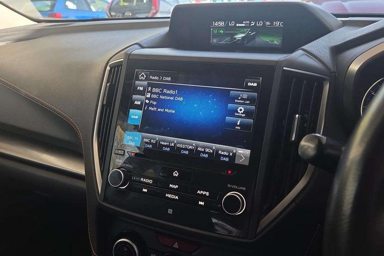 8" touch screen, Apple car play/Android Auto, Blind spot monitoring, Bluetooth system, EyeSight driver assist - Adaptive cruise control, lane keep assist/sway warning and pre-collision braking, Interior fuel flap release, Lane change assistant, Multi function display, Rear cross traffic alert, Rear view camera, Satellite navigation system, Speed sensitive power steering, Trip computer, Voice control system, Sports suspension, SVDC - Subaru Vehicle Dynamics Control, 2 USB ports, 6 speakers, Auxiliary input socket, DAB Digital radio, iPod connection, Radio/CD, Steering wheel mounted audio controls, Subaru Audio system, Automatic headlights, Automatic rain sensing wipers, Body colour bumpers, Body colour door handles, Body colour door mirrors, Daytime running lights, Electric folding door mirrors, Electric front windows + drivers one touch/anti-trap, Electric glass tilt and slide sunroof, Front fog lights, Heated door mirrors, Heated rear window with timer, Heated windscreen + washer jets, High beam assist, LED Headlights, Pop-up headlight washers, Rear privacy glass, Rear wiper, Roof antenna, Roof rails, Roof spoiler, Steering responsive headlights, UV reducing glass, Wheel arch extensions, Windscreen wiper de-icer, 60/40 split folding rear seat, 8 way electric adjustable drivers seat, Adjustable height seatbelt anchor, Cargo hooks, Centre console cupholder, Centre console storage box, Defroster vents for front and side windows, Door pockets with bottle holder, Dual zone automatic air conditioning, Front armrest, Front map lights, Front passenger side seatback pocket, Heated front seats, Height adjustable driver's seat, Illuminated centre tray, Illuminated driver/passenger vanity mirror, Isofix child seat attachment, Leather gear knob, Leather upholstery, Luggage area lamp, Luggage hooks, Multifunction leather steering wheel with gearshift paddle, Rear armrest, Rear headrests, Rear seat heater ducts, Retractable luggage cover, Tilt/reach adjustable steering wheel, Tonneau cover, Two 12V accessory power outlets, Under floor storage in luggage area, 3x3 point rear seatbelts, ABS + traction control, Active front headrests, Childproof rear door locks, Curtain airbags, Driver and passenger seatbelts with warning light, Driver/Front Passenger airbags, Drivers knee airbag, EBD + Brake Assist, Electronic parking brake, ESP, Front seatbelt pretensioners + load limiters, Hill descent control, Hill hold control, Safety pedal system, Side airbags, WIL whiplash protection front seats, Immobiliser, Keyless smart entry with push button start, Remote central locking, Thatcham Cat.1 alarm, 18" alloy wheels, Tyre repair kit,