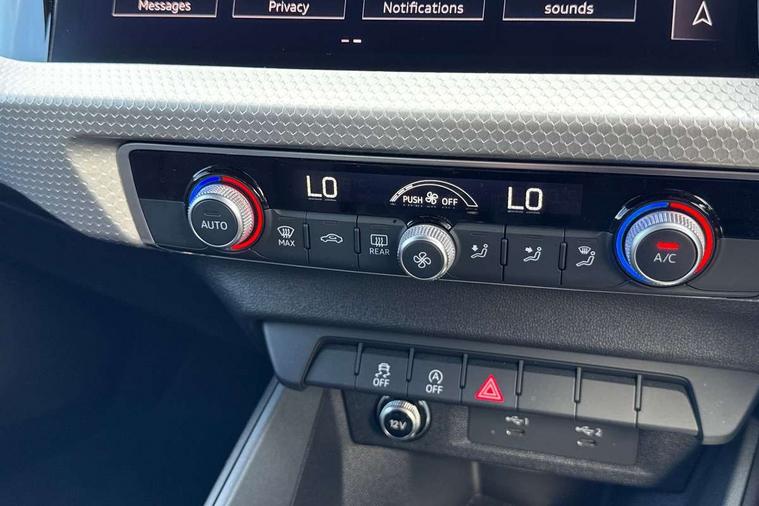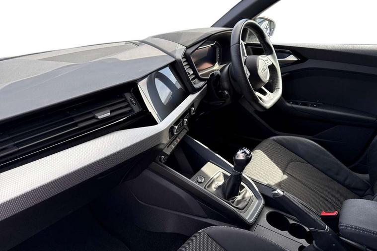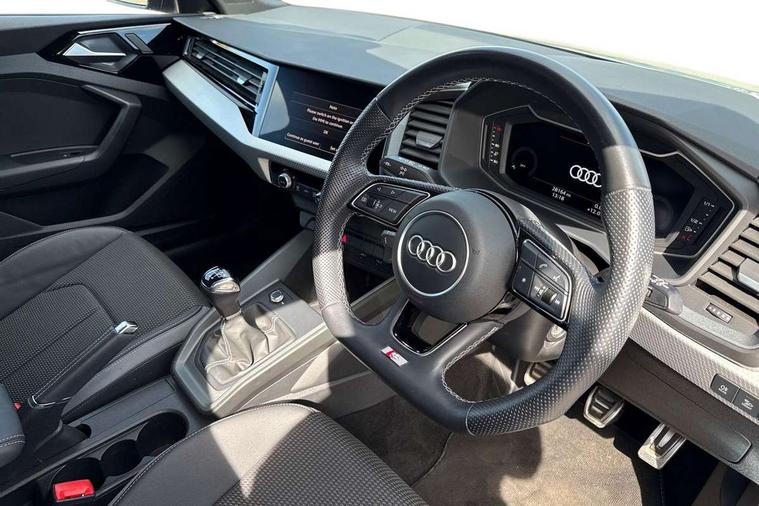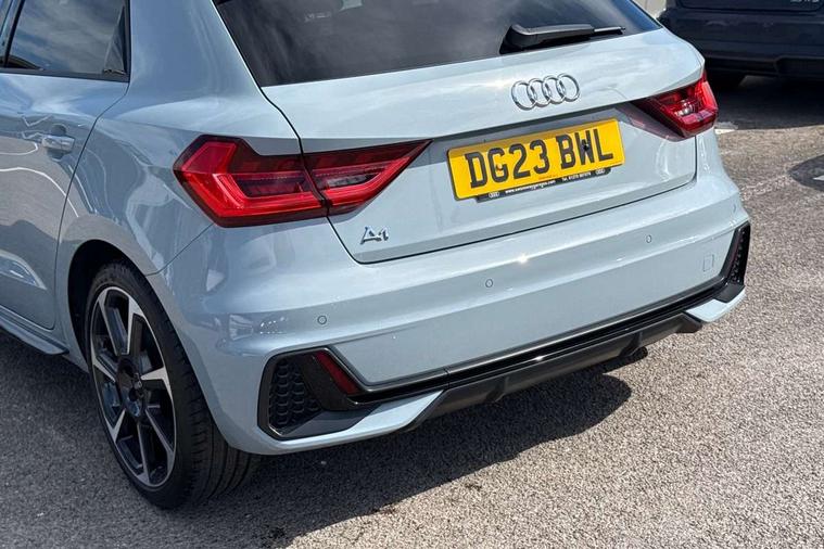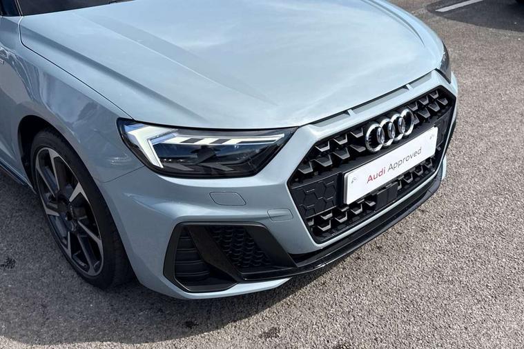 10.25" Digital instrument cluster display classis style instrument dials + speed, odometer, time, outside temperature, telephone menu + fuel level warning, Audi smartphone interface with connect compatible smartphone via USB directly MMI display + Nav, music, third party apps controlled via MMI controller, Automatic start/stop system, Bluetooth interface, Cruise control, Driver's information system, Electromechanical power steering, Emergency e-call, Emergency services call system, Lane departure warning system, Service interval indicator, Speed limiter, Voice control system, Washer fluid level indicator, Sports suspension, 1 x SDXC card reader, 2 x USB type C connection points, DAB Digital radio, MMI radio plus with 8.8" colour MMI display screen and MMI touch, Auto dimming rear view mirror, Black door mirrors, Black side skirts, Body coloured bumpers, Door sill trims with aluminium inlays and logo, Electric front and rear windows, Electrically adjustable, heated, folding door mirrors with integrated LED side indicator, Front side air inlets in grained matt black and C frame in anthracite black, Front wing badges, Heat insulating glass windscreen and side windows, Heated rear windscreen, High level LED brake light, LED headlights with LED rear lights + dynamic rear indicators + headlight adjustment and high beam, turning light + LED daytime running lights, Radiator protective grille frame in matt aluminium silver, Rain and light sensors, Rear diffuser strip in matt titanium black, Rear fog lights, Rear side wing doors, Rear wing door, Rear wiper, Side front spoiler lips in grained matt black, 12V socket in centre console with two cup holders, 3 rear seats with headrests, 3 seat bench in 2nd row, 3 spoke flat bottomed multi-function plus leather steering wheel with S badging, grips in preforated leather and contrast stitching, 40:60 Split folding rear seat or folded fully, Black cloth headlining, Driver and passenger seat with manual height adjust with forward and backwards adjustment, Front and rear black floor mats with contrast stitching in fine silver, Front head restraints, Front passenger seat, Height and reach adjustable steering wheel, ISOFIX child seat mounting for front passenger and outer rear seats including top tether attachment point of outer rear seats, Leather gear knob with aluminium trim, Luggage compartment light with front and rear reading lights, Manually adjustable lumbar support in front seats, Stainless steel pedals, Black styling pack - A1 Sportback Black Edition, LED interior lighting pack - A1, Luggage compartment pack - A1, 3x3 point rear seatbelts, Audi pre-sense front with pedestrain and cyclist recognition, Brake assist function, Driver and front passenger airbag with front side and head airbags, Electronic Stability Control including ABS, EBD, ASR and EDL, Front passenger airbag deactivation switch, Hill hold assist, Manual rear child locks, Seatbelt height adjustment for front seats, Seatbelt monitoring, Tyre pressure warning light, Warning triangle and first aid kit, Anti theft alarm, Anti theft wheel bolts and loose wheel warning, Immobiliser, Remote central locking with 2 foldaway keys, Aluminium trim for control switches, air vents and digital instrument cluster, Silver grey inlays polygon structure in diamond paint finish, Structured grey accent areas including air vents, door handle recesses and centre console in quartz paint finish, 18" 7 spoke rotor design alloy wheels in gloss anthracite black, diamond cut finish,