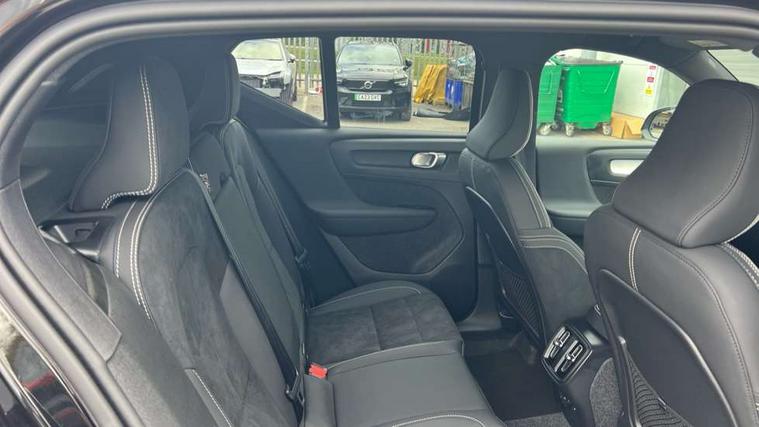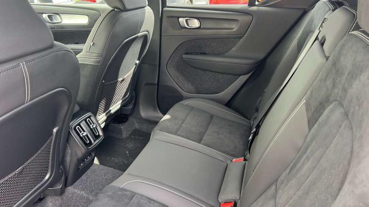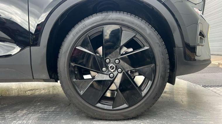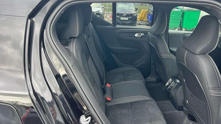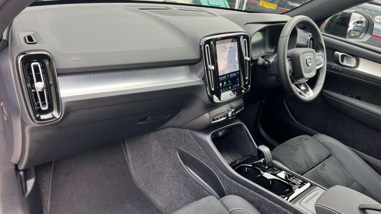 12.3" Progressive Driver Display, 9" centre console portrait touch screen, Adjustable steering wheel force, Android auto (Wired), Apple carplay (wired), Bluetooth handsfree system, Driver alert control, Driver assistance (pilot assist and adaptive cruise control), Driver awareness - Blind spot information system with steer assist, cross traffic alert with autobrake and rear collision warning and mitigation, E-call, Front and rear parking sensors, Front park assist, Google automotive services - Enabled entertainment apps, navigation with google maps, voice recognition with google assistant, Hands free power tailgate, Intelligent speed assistance, Lane keeping aid, Oncoming Lane Mitigation, Speed sensitive steering, Volvo cars services with app - Driving journal, engine remote start, remote door locking/unlocking and vehicle dashboard, Wireless/Inductive Mobile Phone Charging, Automatic transmission with start/stop and manual change functions, Dynamic chassis, DAB Digital radio, Steering wheel mounted remote controls, Adaptive brake lights with high level LED brake lights, Auto dimming feature for exterior door mirrors, Auto dimming interior mirror, Auto folding and heated power door mirrors, Automatic headlamp levelling, Automatic LED Headlights + Active high beam incorporating daytime running lights, Dark tinted windows - rear side windows and rear screen, Front aluminium tread plates, Front and rear electric windows, High gloss black front and rear skid plate, High gloss black front bumper deco, High gloss black front grille strikethrough and ironmark, High gloss black rear model, engine and volvo logo badges, High gloss black window trim, Home safe and approach lighting, Integrated roof rails in high gloss black, LED front fog lights, Puddle lights, Rain sensor with automatic windscreen wiper activation, Rear side wing doors, Rear wiper, Roof antenna, Roof spoiler, Visible VIN plate, 12V socket in front tunnel console and luggage compartment, 2-Zone electronic climate control with CleanZone air quality system and pollen filter, 3 seat bench in 2nd row, 3 Spoke tailored steering wheel with chrome trim, 60/40 versatile split folding rear seat, Centre console cupholders and storage, Charcoal carpet and floor mats, Charcoal headlining, Connect suede textile/microtech upholstery, Flexible load floor and grocery bag holder, Front headrests, Front seat cushion extensions, Glovebox bag hook, Heated front seats, Height adjustable passenger seat, Height/reach adjustable steering column, High gloss centre tunnel deco, High level illumination - Front door pocket, front side step (under door), tailgate, instrument panel, front door inlay, rear courtesy&reading lights, Integrated waste bin, Isofix attachments on outer rear seats, Load cover, Load protection net, Mid level illumination - Front footwell, luggage & glovebox compartment, front cabin courtesy & reading lights, illuminated vanity mirrors+ticket holder, Multi directional lumbar support for driver and passenger seat, Power driver seat with memory + exterior mirrors memory, Rear armrest with cupholders, Rear headrests, Single front passenger seat, Underfloor luggage compartment storage, Climate pack without heated front seats - XC40, 3x3 point rear seatbelts, City safety with steering support with Pedestrian + cyclist + front collision warning with full auto brake and rear auto brake, Driver and passenger airbags, Drivers knee airbag, Electronic parking brake with auto hold, First aid kit, Front and outer rear seatbelt reminder and pretensioners, Front seats SIPS airbags, Hill descent control - Off-road drive mode, Hill start assist, IC (Inflatable Curtains) - Full Length, Passenger airbag cut-off device, Power child locks on rear doors, Road sign information display, Run off Road Protection, SIPS (Side Impact Protection System), Slippery road and hazard light alert, Stability and Traction Control with Spin control, Engine Drag Control and Corner Traction Control, Tyre pressure monitoring system, Vehicle deceleration control with Anti-lock Brake System, Electronic Brake Distribution and Emergency Brake Assist, Warning triangle, WHIPS whiplash protection system - front, 2 x Key integrated remote control central locking including with deadlocking system and auto open/close windows, Anti-theft alarm including immobiliser/volume sensor + level sensor, Keyless drive includes keyless entry and keyless start, Locking wheel nuts, 20" 5 spoke high gloss black alloy wheels,