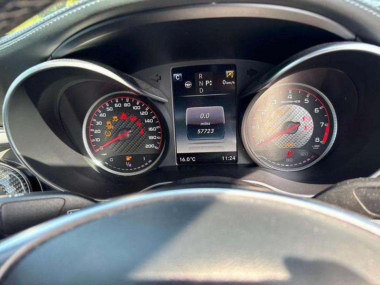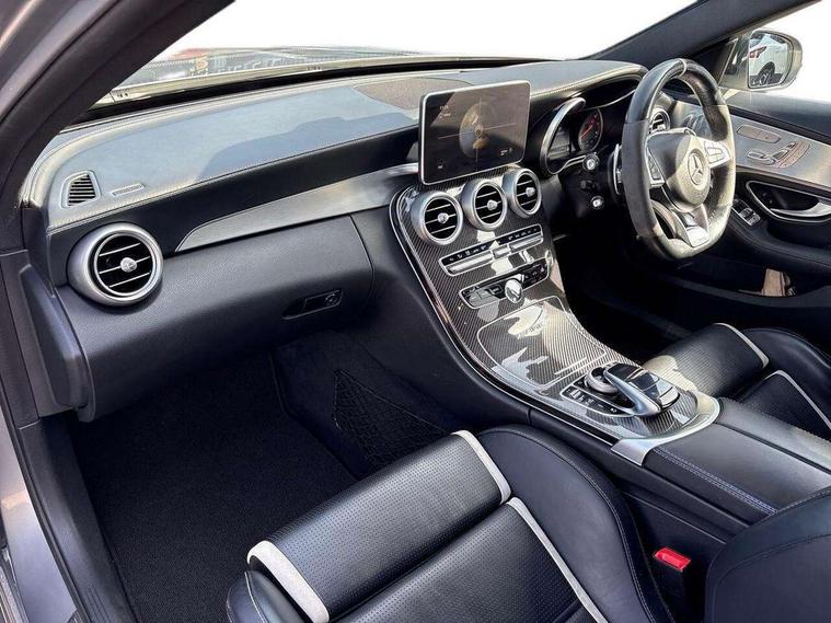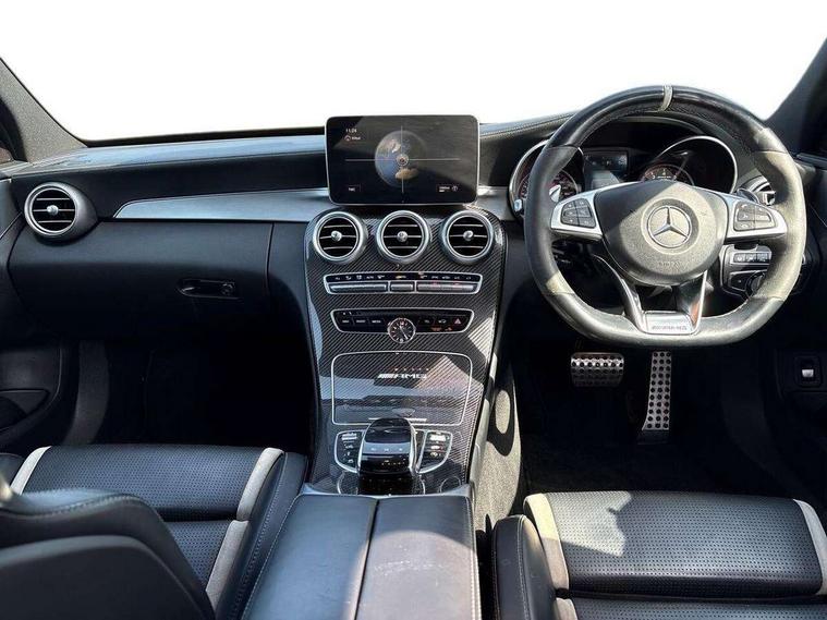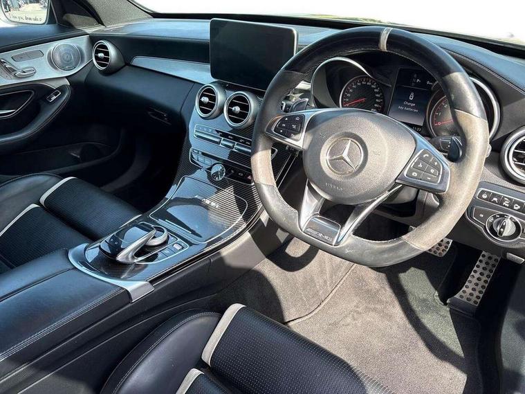 Active park assist with parktronic system, Attention assist, Bluetooth interface for hands free telephone, Collision prevention assist, COMAND online nav with colour display, radio/CD/DVD/MP3, SD card, 10GB music, Emergency Call system, speed limit assist, linguatronic voice control, Multi function trip computer, Outside temperature gauge, Remote boot release, Service indicator (ASSYST PLUS), Speed sensitive steering, AMG Ride Control sports suspension, Burmester surround sound system, DAB Digital radio, USB connection, Adaptive brake lights, AMG body styling, Body coloured bumpers, Electric front sliding and fixed rear panoramic glass sunroof, Electric windows one touch open/close, Electrically adjustable and heated door mirrors, Green tinted glass, Heated windscreen washers, Intelligent LED headlight system with active Light System, cornering light function, Adaptive High Beam Assist and blue LED locator lighting, LED daytime running lights, Radiator grille with integral star and 2 louvres in matt iridium silver with chrome trim, Rain sensor windscreen wipers, 12V power socket in centre console, 2 cupholders in front centre console, 2 way rear head restraints, 3 spoke AMG steering wheel in Nappa leather/Dinamica, 4 way adjustable front head restraints, Advanced multicolour ambient light and LED interior light, AMG floormats, AMG performance seats, Auto Mercedes-Benz child seat recognition sensor, Bottle holders, Dashboard - upper and lower sections, beltline and door panels in Artico with top-stitching, Dual zone automatic climate control, Front centre armrest with storage compartment, Gearshift paddles, Heated front seats, Illuminated glovebox, Multifunction steering wheel, Nappa leather upholstery, Rear top tether child seat ISOFIX attachment, Sports pedals with stainless steel surfaces and rubber studs, Sunvisors with illuminated vanity mirrors, Lighting pack - C class, Memory pack - C Class, Mirror pack - C Class, Seat comfort pack - C Class, Stowage space pack - C Class, 3 rear 3 point seatbelts, ABS with Brake Assist, Active bonnet, Adaptive brake system, Child proof door locks, Drivers knee airbag, Dual stage driver/passenger airbags, Electronic parking brake, ESP with ASR, Front passenger seat occupancy sensor, Front side airbags, Hill start assist, Pre-Safe anticipatory safety system, Red brake calipers, Tyre pressure monitoring system, Warning triangle and first aid kit, Window airbags, Alarm system/interior protection/immobiliser, Chrome surround in electric key, Keyless entry and keyless start, Remote central locking, Tyre inflation kit,