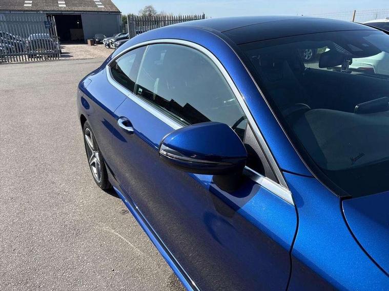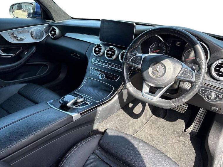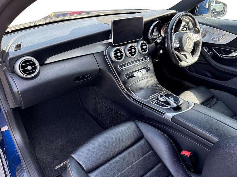 Active park assist with parktronic system, Attention assist, Bluetooth interface for hands free telephone, Collision prevention assist plus, COMAND online nav with colour display, radio/CD/DVD/MP3, SD card, 10GB music, Emergency Call system, speed limit assist, linguatronic voice control, DYNAMIC SELECT with a choice of driving modes (ECO, Comfort, Sport, Sport+ and Individual), Instrument cluster with 5.5-inch TFT multi-function display, Multi function trip computer, Outside temperature gauge, Remote boot release, Service indicator (ASSYST), Speed sensitive steering, Diesel particulate filter, 2 USB ports, Burmester surround sound system, DAB digital radio module, Frontbass loudspeakers, Media interface, Steering column mounted multifunction controls, Adaptive brake lights, AMG front, rear apron and side skirts, Auto dimming driver's door mirror, Auto dimming rear view mirror, Body coloured bumpers, Chrome grille surround, Door sill plates with "Mercedes-Benz" lettering, Electric adjustable/heated/folding door mirrors, Electric front sliding and fixed rear panoramic glass sunroof, Electric windows one touch open/close, Green tinted glass, Heated windscreen washers, LED daytime running lights, LED tail lights, Radiator grille with integral star, Rain sensor windscreen wipers, Side windows surround in polished aluminium, Twin chrome exhaust tailpipes, 2 cupholders in front centre console, 2 rear head restraints, 3 spoke flat bottom multi-function leather AMG steering wheel, 4-way lumbar support for drivers seat, 4-way lumbar support for front passenger seat, 40:20:40 split folding rear seats, Advanced multicolour ambient light and LED interior light, AMG floormats, Auto dual-zone climate control system, Auto Mercedes-Benz child seat recognition sensor, Door courtesy lamps, Electric front seats, Electric height adjustable front seats, Front centre armrest with storage compartment, Front footwell illumination, Heated front seats, Height/reach adjustable steering column, Illuminated front/rear door handle recesses, Illuminated glovebox, Isofix rear child seat fastenings, LED reading lights, Sports pedals with stainless steel surfaces and rubber studs, Sports seats with integrated headrests, Steering wheel gearshift paddles, Sunvisors with illuminated vanity mirrors, Memory pack - C Class, Seat comfort pack - C Class, Stowage space pack - C Class, 2 rear seatbelts, ABS + BAS, Active bonnet, Adaptive brake system, Brake calipers with Mercedes-Benz lettering + perforated brake discs, Drivers knee airbag, Drivers pelvis airbag, Dual stage driver/passenger airbags, Electronic parking brake, ESP with ASR, Front side airbags, Hill hold control, Hill start assist, Tyre pressure monitoring system, Warning triangle and first aid kit, Window airbags, Alarm system/interior protection/immobiliser, Chrome surround electric key, Keyless entry and keyless start, Remote central locking, Tyre inflation kit,