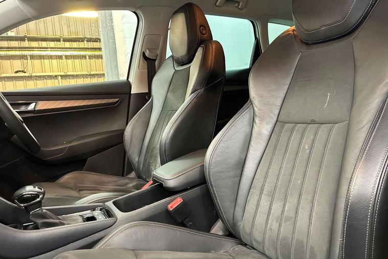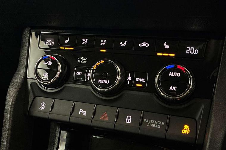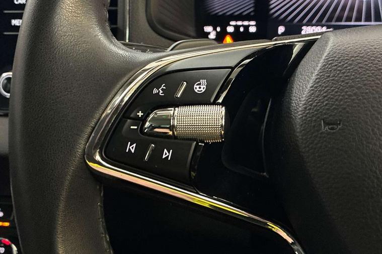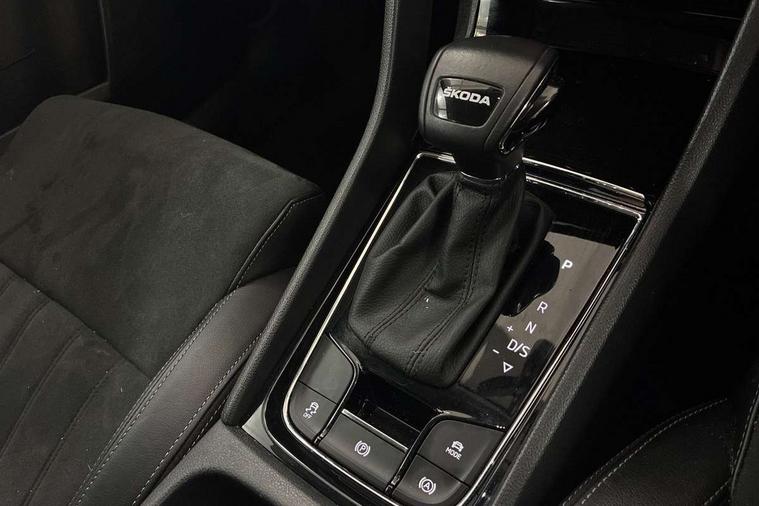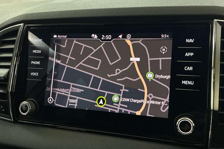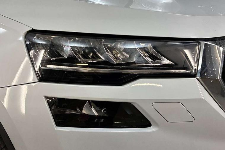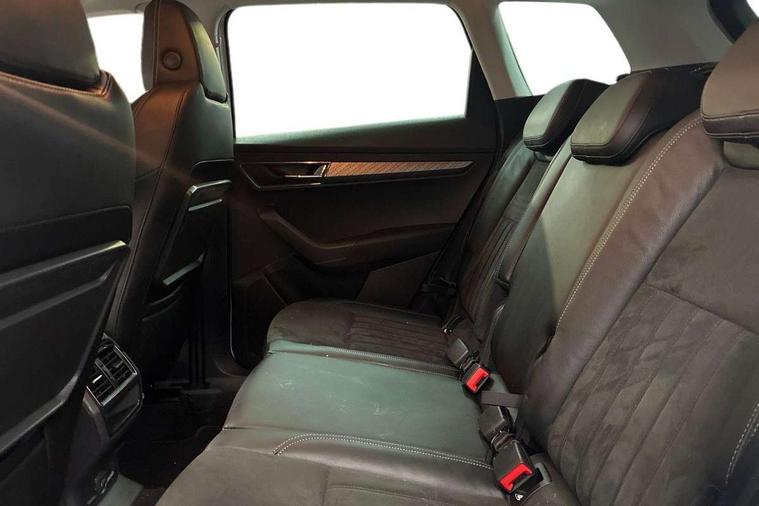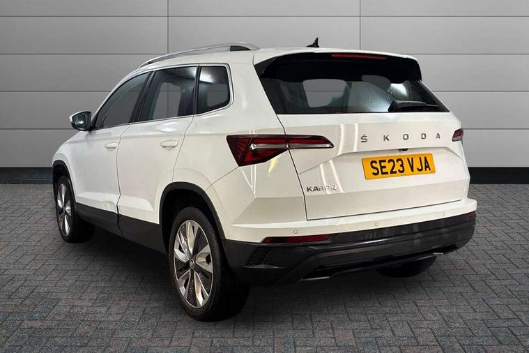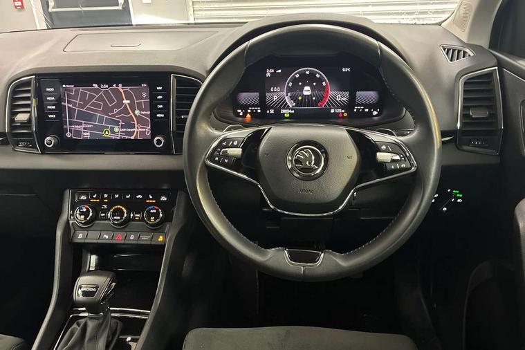 8" Digital display, Care connect, Driver fatigue sensor, Emergency services call system, Outside temperature gauge, Service interval indicator, SmartLink wireless for Apple and wired for Android, Start/stop system with regenerative braking, USB C Port x 2 in front centre console, 8 Speakers, DAB radio with Bluetooth, USB connection, Acoustic glass, Aero front windscreen wipers with intermittent function, Auto dimming rear view mirror with light and rain sensors, Black electric window control buttons, Body colour door mirrors and handles, Dynamic headlight range control with cornering light function, Electric front and rear windows with child proof lock, Heated rear windscreen, LED daytime running lights, LED rear lights with high functionality welcome effect and dynamic indicators, Light assistant (coming/leaving home/tunnel light), Plastic scuff plates, Privacy glass, Rear side wing doors, Rear spoiler, Rear window wiper with washer system and intermittent control, Safety reflectors on front doors, 1.5 litre bottle holders in driver and front passenger door panels, 12V socket in boot, 12v socket in front centre armrest with storage compartment and rear air vents, 2 spoke leather heated multifunction steering wheel with DSG paddles, 2 x Tablet holder, 3 rear height adjustable headrests, 3 seat bench in 2nd row, 4 foldable roof handles with rear coat hooks, Black floor carpet, Chrome inner door handles, Decorative door sills with KAROQ badging, Double sided boot floor, Foldable hooks in the boot, Front head restraints, Height adjustable front three point seats belts with tensioners, Height/reach adjust steering wheel, Ice scraper, Illuminated glovebox, Illuminated luggage compartment, Isofix child seat preparation for front passenger seat, Isofix child seat preparation outer rear, Manual lumbar support for front seats, Pen holder, Pollen filter, Rear boot cover, Rear reading lights, Rubbish bin door, Safety vest holder, Single front passenger seat, Storage box in upper central dashboard closed, Sunvisors with illuminated vanity mirrors, Textile floor mats, Ticket holder, VarioFlex seats with standard rear seat release, Boot pack - Karoq, Chrome roof rails + chrome pack - Karoq, Parking pack - Karoq, Automatic door unlocking in case of crash, Automatic fuel cut off in case of crash, Child locks on rear doors, Driver airbag, Electronic parking brake with auto hold function, Emergency rear braking signal, ESC including ABS, MSR, ASR, EDS, HBA, DSR, RBS, MKB and traction control, Front side airbags, Hill hold control, Knee airbags, Passenger airbag with switch-off function, Pedestrian monitor, Seatbelt reminder signalisation and pretensioner for all seats, Three point seatbelts rear, Two tone horn, Tyre pressure display, Tyre pressure monitor, Alarm with interior monitoring, back up horn and tilt sensor with safe function, Electronic engine immobiliser, Keyless entry and start/stop, Remote central locking with 2 remote folding keys, Chrome framed air vents, 18" Miran alloy wheels in black, Anti-theft wheel bolts protection, Storage on wheel cover, Tool kit,