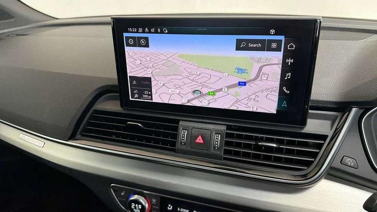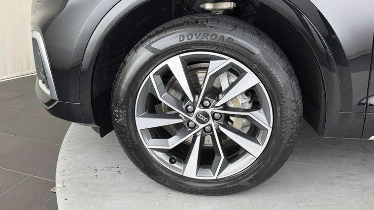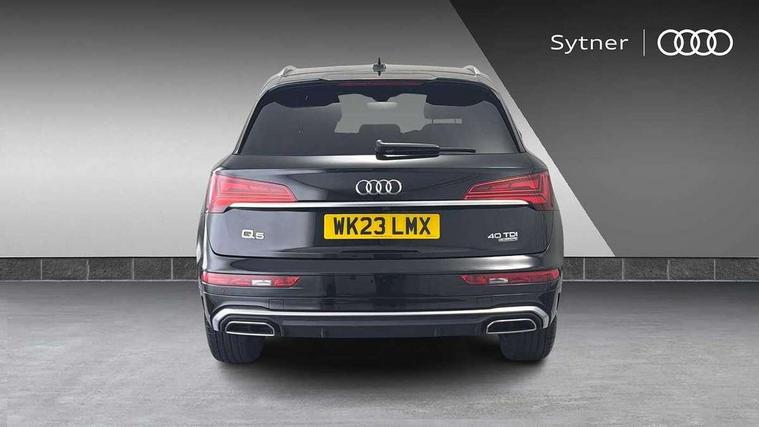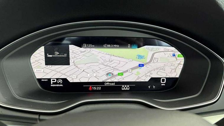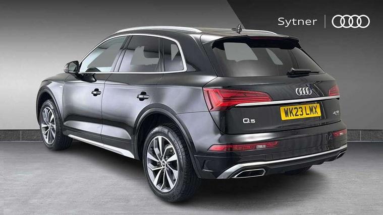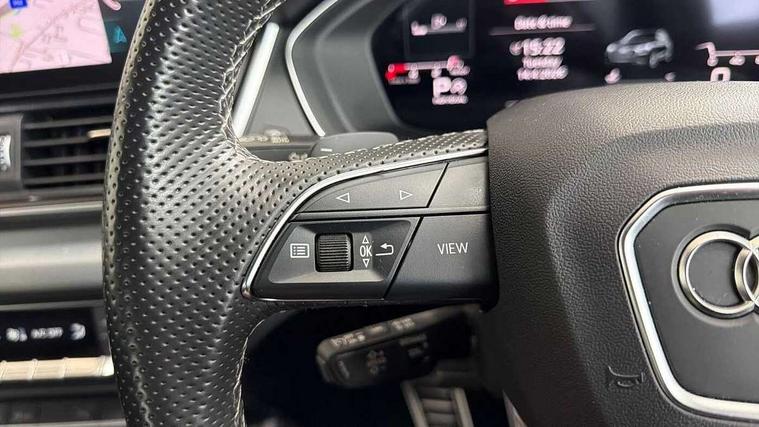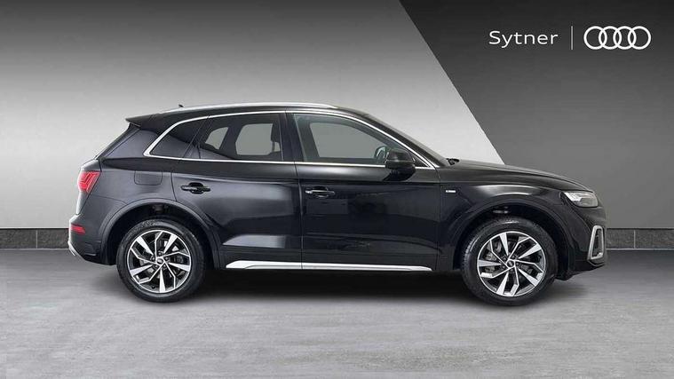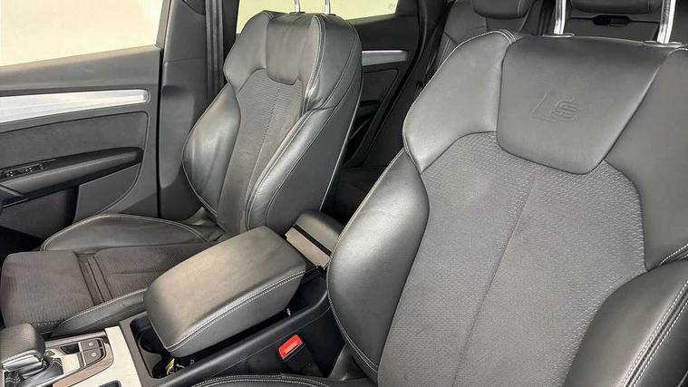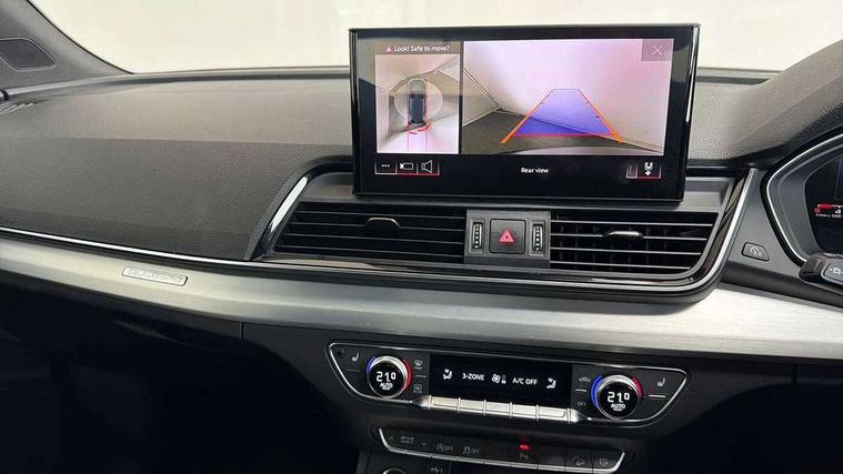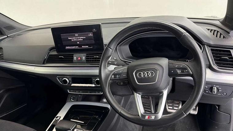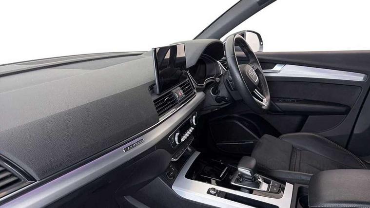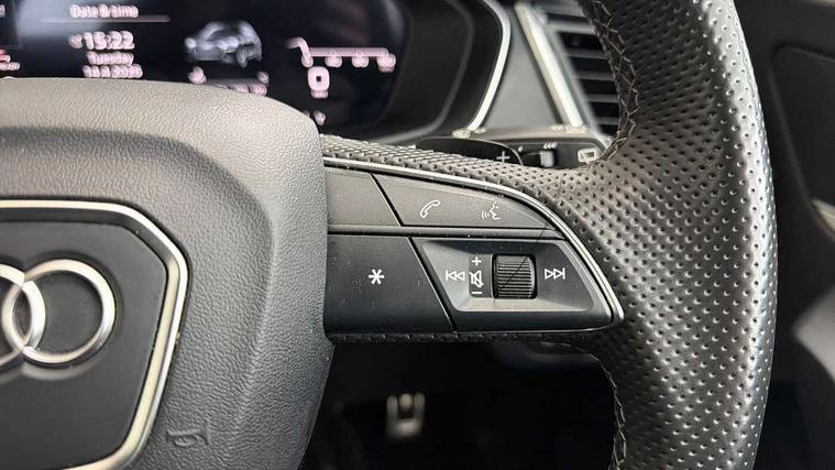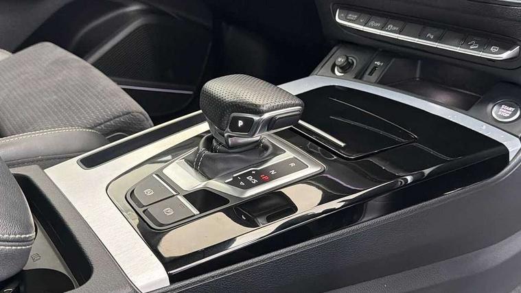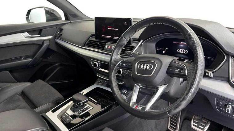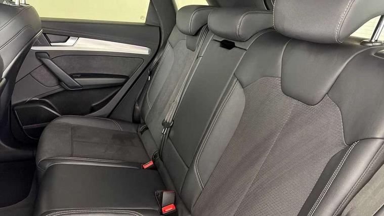 Acoustic front and rear parking sensor, Audi connect safety and service (e-call), Audi connect with Amazon Alexa Integration, Audi drive select, Audi virtual cockpit plus with 12.3" screen and three different layout designs, Audi wireless smartphone interface, Automatic start-stop system with coasting functionality and efficiency programme, Bluetooth interface, Electro - mechanical power assisted steering, MMI navigation plus with 10.1" touch screen, Power tailgate, Reversing camera, Service interval indicator, Voice control system with Audi hotword activation "Hey Audi", Diesel particulate filter, Quattro on demand, S line sports suspension, 2 x USB charging port with aux input socket, 8 loudspeakers, DAB Digital radio, Acoustic windscreen, Aluminium roof rails, Audi matrix LED headlights with dynamic front and rear indicators, Auto dimming door mirrors, Auto dimming frameless rear view mirror, Automatic headlight adjustment, Automatic headlights and windscreen wipers, Body colour bumpers, Body colour door mirrors, Body colour rear diffuser with matt aluminium silver surrounds, Body colour underbody protection, Chrome plated exhaust trims, Daytime running lights, Door sills in Selenite silver, Electric adjustable/heated/folding door mirrors, Front air inlet surrounds in aluminium, Front and rear electric windows, Front radiator grille in honeycomb design, Headlight washers, High level LED brake light, Lower bumpers painted in contrast Manhattan grey, Rear chrome trim strip below lights, Rear privacy glass and rear side windows, Rear side wing doors, Rear wiper, Roof bars, S Line badges on the front wings, S Line front and rear bumpers, S Line rear spoiler, S Line side skirts, 3 rear headrests, 3 spoke leather multifunction steering wheel with S badging perforated leather grips, 40:20:40 split folding 3 rear bench seat in 2nd row with rear centre armrest, Black cloth headlining, Comfort front centre armrest, Contrast stitching on seats, steering wheel and gear lever gaiter, Deluxe 3 zone electronic climate control, Front/rear floor mats, Gear lever in black leather, Heated front seats, Height adjustable front head restraints, Height/reach adjustable steering column, Illuminated door sill trims with S logo, Luggage compartment cover, Manual seat adjustment with 4-way electric lumbar support, Removable luggage compartment floor, Single front passenger seat, Stainless steel pedals, Sunvisors with vanity mirrors, High gloss pack - Q5, LED interior light pack - Q5, 3 point seatbelts on all seats, 6 airbags - Driver, front passenger, curtain and side airbags, Electrically operated child locks on rear doors, Electromechanical parking brake, Electronic stabilisation control including ABS, ASR and EDL, First aid kit with warning triangle and vests, Front passenger airbag deactivation, Hill descent control, Hill hold assist, ISOFIX child seat mounting for front passenger seat and ISOFIX child seat mounting with Top Tether for outer rear seats, Multi collision brake assist, Pop-up bonnet for pedestrian protection, Pre sense city, Seat belt force limiter, Seatbelt monitoring, Tyre pressure warning, Anti theft alarm, Anti-theft wheel bolts, Keyless Go access/ignition system, Remote central locking, Air vents inserts and centre console in gloss black, Matt brushed aluminium inlays,