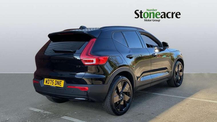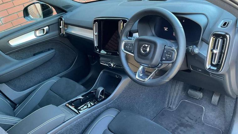 12.3" Progressive Driver Display, 9" centre console portrait touch screen, Adjustable steering wheel force, Android auto (Wired), Apple carplay (wired), Bluetooth handsfree system, Driver alert control, Driver assistance (pilot assist and adaptive cruise control), Driver awareness - Blind spot information system with steer assist, cross traffic alert with autobrake and rear collision warning and mitigation, E-call, Front and rear parking sensors, Front park assist, Google automotive services - Enabled entertainment apps, navigation with google maps, voice recognition with google assistant, Hands free power tailgate, Intelligent speed assistance, Lane keeping aid, Oncoming Lane Mitigation, Speed sensitive steering, Volvo cars services with app - Driving journal, engine remote start, remote door locking/unlocking and vehicle dashboard, Wireless/Inductive Mobile Phone Charging, Automatic transmission with start/stop and manual change functions, Dynamic chassis, DAB Digital radio, Steering wheel mounted remote controls, Adaptive brake lights with high level LED brake lights, Auto dimming feature for exterior door mirrors, Auto dimming interior mirror, Auto folding and heated power door mirrors, Automatic headlamp levelling, Automatic LED Headlights + Active high beam incorporating daytime running lights, Dark tinted windows - rear side windows and rear screen, Front aluminium tread plates, Front and rear electric windows, High gloss black front and rear skid plate, High gloss black front bumper deco, High gloss black front grille strikethrough and ironmark, High gloss black rear model, engine and volvo logo badges, High gloss black window trim, Home safe and approach lighting, Integrated roof rails in high gloss black, LED front fog lights, Puddle lights, Rain sensor with automatic windscreen wiper activation, Rear side wing doors, Rear wiper, Roof antenna, Roof spoiler, Visible VIN plate, 12V socket in front tunnel console and luggage compartment, 2-Zone electronic climate control with CleanZone air quality system and pollen filter, 3 seat bench in 2nd row, 3 Spoke tailored steering wheel with chrome trim, 60/40 versatile split folding rear seat, Centre console cupholders and storage, Charcoal carpet and floor mats, Charcoal headlining, Connect suede textile/microtech upholstery, Flexible load floor and grocery bag holder, Front headrests, Front seat cushion extensions, Glovebox bag hook, Heated front seats, Height adjustable passenger seat, Height/reach adjustable steering column, High gloss centre tunnel deco, High level illumination - Front door pocket, front side step (under door), tailgate, instrument panel, front door inlay, rear courtesy&reading lights, Integrated waste bin, Isofix attachments on outer rear seats, Load cover, Load protection net, Mid level illumination - Front footwell, luggage & glovebox compartment, front cabin courtesy & reading lights, illuminated vanity mirrors+ticket holder, Multi directional lumbar support for driver and passenger seat, Power driver seat with memory + exterior mirrors memory, Rear armrest with cupholders, Rear headrests, Single front passenger seat, Underfloor luggage compartment storage, Climate pack without heated front seats - XC40, 3x3 point rear seatbelts, City safety with steering support with Pedestrian + cyclist + front collision warning with full auto brake and rear auto brake, Driver and passenger airbags, Drivers knee airbag, Electronic parking brake with auto hold, First aid kit, Front and outer rear seatbelt reminder and pretensioners, Front seats SIPS airbags, Hill descent control - Off-road drive mode, Hill start assist, IC (Inflatable Curtains) - Full Length, Passenger airbag cut-off device, Power child locks on rear doors, Road sign information display, Run off Road Protection, SIPS (Side Impact Protection System), Slippery road and hazard light alert, Stability and Traction Control with Spin control, Engine Drag Control and Corner Traction Control, Tyre pressure monitoring system, Vehicle deceleration control with Anti-lock Brake System, Electronic Brake Distribution and Emergency Brake Assist, Warning triangle, WHIPS whiplash protection system - front, 2 x Key integrated remote control central locking including with deadlocking system and auto open/close windows, Anti-theft alarm including immobiliser/volume sensor + level sensor, Keyless drive includes keyless entry and keyless start, Locking wheel nuts, 20" 5 spoke high gloss black alloy wheels,