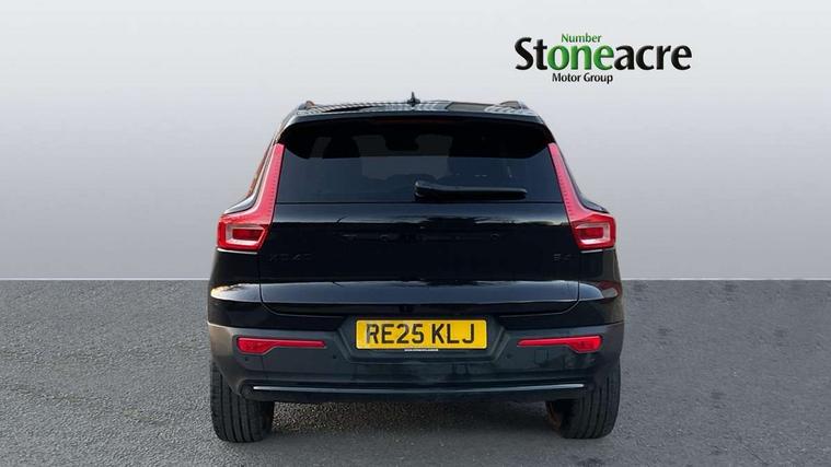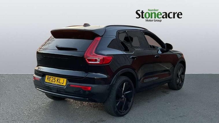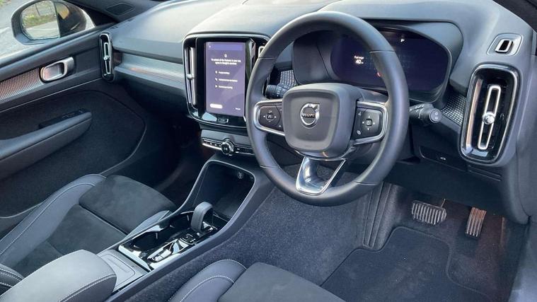12.3" Progressive Driver Display, 9" centre console portrait touch screen, Adjustable steering wheel force, Android auto (Wired), Apple carplay (wired), Bluetooth handsfree system, Driver alert control, Driver assistance (pilot assist and adaptive cruise control), Driver awareness - Blind spot information system with steer assist, cross traffic alert with autobrake and rear collision warning and mitigation, E-call, Front park assist, Google automotive services - Enabled entertainment apps, navigation with google maps, voice recognition with google assistant, Hands free power tailgate, Intelligent speed assistance, Lane keeping aid, Oncoming Lane Mitigation, Rear park assist, Speed sensitive steering, Volvo cars services with app - Driving journal, engine remote start, remote door locking/unlocking and vehicle dashboard, Wireless/Inductive Mobile Phone Charging, Automatic transmission with start/stop and manual change functions, Dynamic chassis, DAB Digital radio, Steering wheel mounted remote controls, Adaptive brake lights with high level LED brake lights, Auto dimming feature for exterior door mirrors, Auto dimming interior mirror, Automatic headlamp levelling, Automatic LED Headlights + Active high beam incorporating daytime running lights, Colour coordinated auto folding and heated power door mirrors, Dark tinted windows - rear side windows and rear screen, Front aluminium tread plates, Front and rear electric windows, High gloss black front and rear skid plate, High gloss black front bumper deco, High gloss black front grille strikethrough and ironmark, High gloss black rear model, engine and volvo logo badges, High gloss black window trim, Home safe and approach lighting, Integrated roof rails in high gloss black, LED front fog lights, Puddle lights, Rain sensor with automatic windscreen wiper activation, Rear side wing doors, Rear wiper, Roof antenna, Roof spoiler, Visible VIN plate, 12V socket in front tunnel console and luggage compartment, 2-Zone electronic climate control with CleanZone air quality system and pollen filter, 3 seat bench in 2nd row, 3 Spoke tailored steering wheel with chrome trim, 60/40 versatile split folding rear seat, Centre console cupholders and storage, Charcoal headlining, Connect textile/microtech upholstery, Flexible load floor and grocery bag holder, Floor mats, Front cabin courtesy lights, Front door pocket, front cupholder, ambient front door, rear reading, rear courtesy, instrument panel and tailgate lighting, Front footwell illumination, Front headrests, Front reading lights, Front seat cushion extensions, Front side step illumination (under door), Glovebox bag hook, Heated front seats, Height adjustable passenger seat, Height/reach adjustable steering column, High gloss centre tunnel deco, Illuminated glovebox, Illuminated luggage compartment, Illuminated vanity mirrors + ticket holder, Integrated waste bin, Isofix attachments on outer rear seats, Load cover, Load protection net, Multi directional lumbar support for driver and passenger seat, Power driver seat with memory + exterior mirrors memory, Rear armrest with cupholders, Rear headrests, Single front passenger seat, Underfloor cargo storage, Climate pack without heated front seats - XC40, 3x3 point rear seatbelts, City safety with steering support with Pedestrian + cyclist + front collision warning with full auto brake and rear auto brake, Driver and passenger airbags, Drivers knee airbag, Electronic parking brake with auto hold, First aid kit, Front and outer rear seatbelt reminder and pretensioners, Front seats SIPS airbags, Hill descent control, Hill start assist, Inflatable curtain, Passenger airbag cut-off device, Power child locks on rear doors, Road sign information display, Run off Road Protection, SIPS (Side Impact Protection System), Slippery road and hazard light alert, Stability and Traction Control with Spin control, Engine Drag Control and Corner Traction Control, Tyre pressure monitoring system, Vehicle deceleration control with Anti-lock Brake System, Electronic Brake Distribution and Emergency Brake Assist, Warning triangle, WHIPS whiplash protection system - front, 2 x Key integrated remote control central locking including with deadlocking system and auto open/close windows, Anti-theft alarm including immobiliser/volume sensor + level sensor, Keyless drive includes keyless entry and keyless start, Locking wheel nuts, 20" 5 spoke high gloss black alloy wheels,