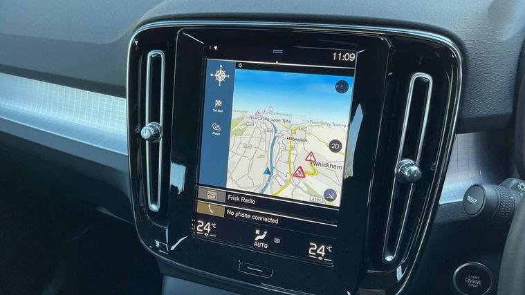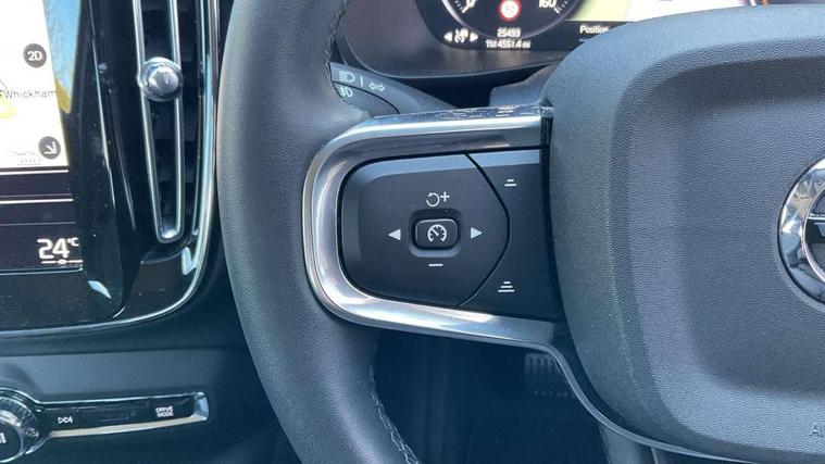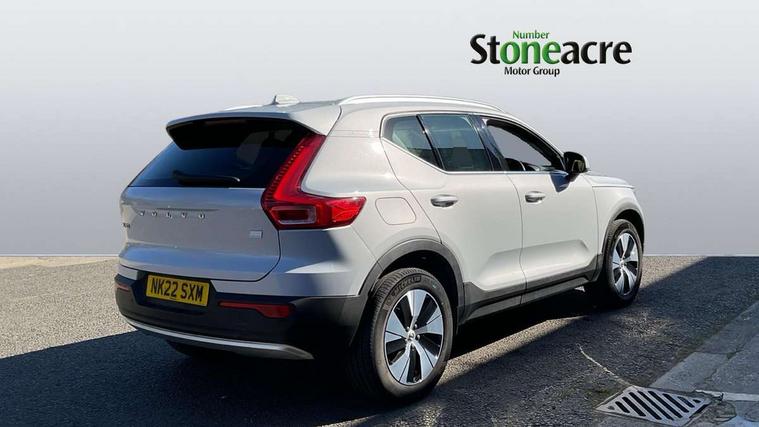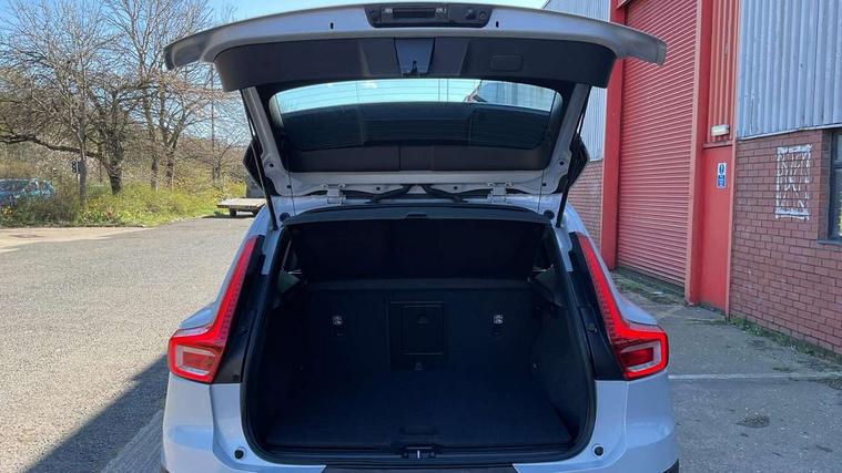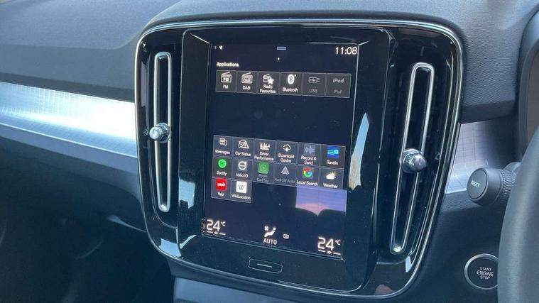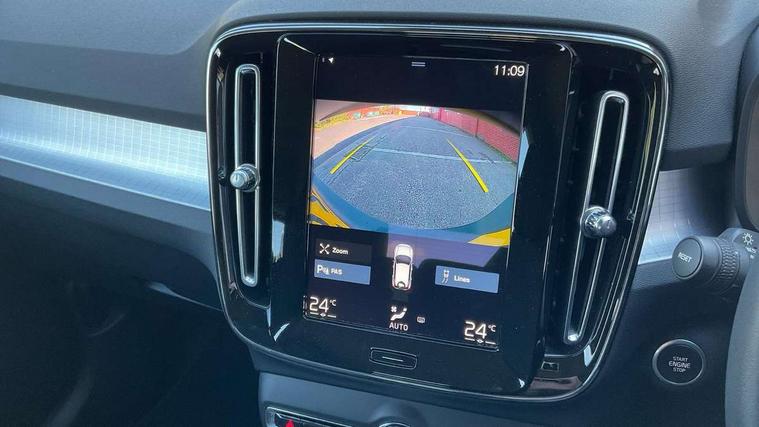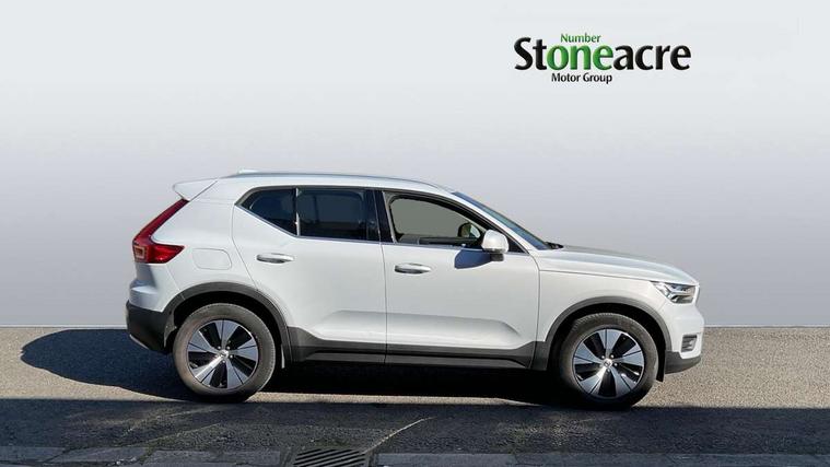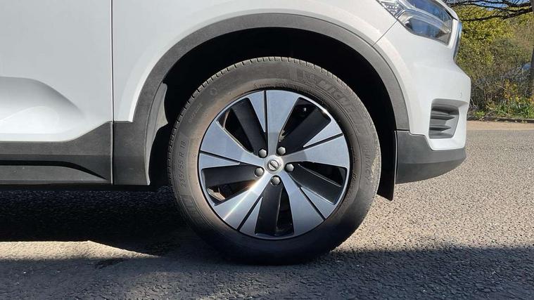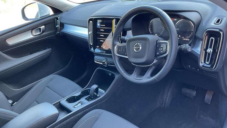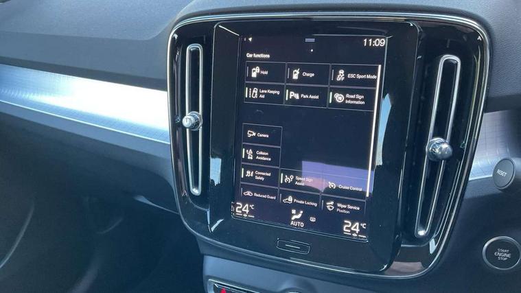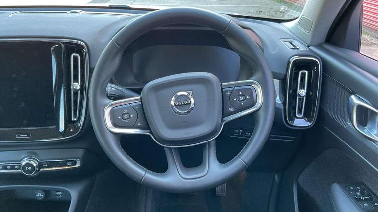12.3" Active TFT crystal driver's instrument display, 9" centre console portrait touch screen, Adjustable steering wheel force, Bluetooth hands free telephone kit, Drive mode selector, E-call, Lane keep assist with driver alert control, Oncoming Lane Mitigation, Power operated tailgate, Sensus navigation with European mapping and traffic information, Speed limiter, Speed sensitive steering, Voice activated control for key functions, Volvo on call, 7m 10amp charge cable with 3 pin plug and 7m 1 phase 16amp type 2/mode 3 charge cable, Dynamic chassis, Electric front axle drive, Recharging port located in nearside front wing, DAB Digital radio, Low speed exterior sound speaker, Steering wheel mounted remote controls, Adaptive brake lights with high level LED brake lights, Auto dimming interior mirror, Automatic headlamp levelling, Chrome window surround, Colour coordinated auto folding and heated power door mirrors, Front aluminium tread plates, Front and rear electric windows, High gloss black front grille with chrome inserts, High gloss black sensus surround deco, High Gloss silver front and rear skid plate, Home safe and approach lighting, Integrated roof rails in silver, LED Headlights + Active high beam incorporating daytime running lights, Rain sensor with automatic windscreen wiper activation, Rear side wing doors, Rear wiper, Roof antenna, Roof spoiler, Visible VIN plate, 12V socket in front tunnel console and luggage compartment, 2 zone electronic climate control and rear air vent, 3 seat bench in 2nd row, 3 Spoke tailored steering wheel with chrome trim, 60/40 versatile split folding rear seat, A-pillar parking ticket holder, Bright metal luggage threshold, Centre console cupholders and storage, Floor mats, Front footwell illumination, Front headrests, Front reading light and theatre lighting, Glovebox bag hook, Height/reach adjustable steering column, Height/tilt adjustable driver's seat, High gloss centre tunnel deco, Illuminated glovebox, Illuminated luggage compartment, Illuminated vanity mirrors, Isofix attachments on outer rear seats, Leather faced upholstery, Load protection net, Multi directional lumbar support, Orrefors Crystal gear lever knob, Power driver seat with memory + exterior mirrors memory, Rear armrest / integral cup holders / storage tray, Rear coat hook, Single front passenger seat, Underfloor cargo storage, Vanity mirror with ticket holder, Park assist pack - XC40, 3x3 point rear seatbelts, City safety includes pedestrian, cyclist and large animal detection and front collision warning with full auto brake, Drivers knee airbag, Dual stage driver/passenger airbags, Electronic parking brake with auto hold, First aid kit, Front and outer rear seatbelt reminder and pretensioners, Front seats SIPS airbags, Hill descent control, Hill start assist, Inflatable curtain, Passenger airbag cut-off device, Road sign information display, Run off Road Mitigation, Run off Road Protection, SIPS (Side Impact Protection System), Slippery road and hazard light alert, Stability and Traction Control with Spin control, Engine Drag Control and Corner Traction Control, Tyre pressure monitoring system, Vehicle deceleration control with Anti-lock Brake System, Electronic Brake Distribution and Emergency Brake Assist, Warning triangle, WHIPS whiplash protection system - front, Anti-theft alarm including immobiliser/volume sensor + level sensor, Care key with user defined top speed, Key integrated remote control central locking + fuel flap with deadlocking system and auto open/close power windows, Locking wheel nuts, Private locking for tailgate, Driftwood inlays,
