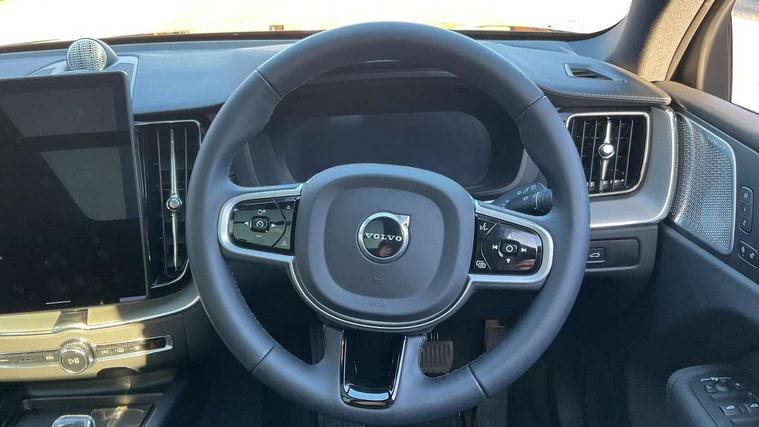 11.2" centre console touch screen, 12.3" Progressive Driver Display, 360 degree surround view parking camera with side proximity sensors, Adaptive cruise control, Adjustable steering wheel force, Android auto (Wired), Apple carplay (wired), Bluetooth handsfree system, Driver alert control with lane keeping aid, Driver understanding system, Emergency services call system, Front and rear park assist, Google Automotive Services, Intelligent speed assistance, Oncoming Lane Mitigation, PAS, Power operated tailgate with handsfree opening and closing, Service interval indicator, Speed limiter, Speed sensitive steering, Trip computer, Volvo cars services with app, Volvo on call with App, Wireless/Inductive Mobile Phone Charging, 8 speed automatic transmission with start/stop + manual change functions, Active four-C chassis + four corner adaptive damper with electronic rear air suspension, DAB Digital radio, Premium sound by Bowers and Wilkins, dirac live, dolby pro logic II surround sound, 14 speakers/1100W output and fresh air subwoofer, Steering wheel remote infotainment controls, Active bending headlights with adaptive shadow technology, Adaptive brake lights with high level LED brake lights, Auto dimming interior + exterior mirrors, Automatic headlight levelling system, Automatic LED Headlights + Active high beam incorporating daytime running lights, Dark tinted windows for rear side windows and cargo area, Electric adjustable/heated/auto power folding door mirrors, Electric front+rear windows, Front aluminium tread plates, Headlight cleaning system, High gloss black door mirrors and window surround, High gloss black front and rear bumper decoratives, High gloss black front grille, Surround, Strikethrough and Ironmark, High gloss black rear model, engine and volvo logo badges, Home safe and approach lighting, Integrated roof rails in high gloss black, LED front fog lights with static cornering light function, Power glass tilt and slide panoramic sunroof with sun curtain, Puddle lights, Rain sensor with automatic windscreen wiper activation, Rear side wing doors, Rear wiper, Roof antenna, Roof spoiler, Tinted windscreen, Visible VIN plate, 12V socket in front tunnel console and luggage compartment, 3 seat bench in 2nd row, 3 Spoke tailored steering wheel with chrome trim, 4 Zone electronic climate control, A-pillar parking ticket holder, Air purifier particulate matter (PM) 2.5 filter, B Pillar ventilation, Bright metal luggage scuff plate, Centre console cupholders and storage, Charcoal floor mats, Front and rear courtesy lights, Front and rear door pocket illumination, Front cupholder illumination, Front footwell illumination, Front headrests, Front reading lights, Front seat cushion extensions, Glovebox compartment with illumination, Heated front seats, Heated steering wheel, Height/reach adjustable steering column, Illuminated luggage compartment, Illuminated vanity mirrors + ticket holder, Inner door release handle illumination, ISOFIX attachment on outer rear seats, Load cover, Load protection net, Multi directional lumbar support, Nappa soft leather perforated and ventilated upholstery with front seat backrest massage and power side support, Power driver seat with memory + exterior mirrors memory, Power folding rear headrests, Power height adjustable passenger seat, Power passenger seat with memory, Rear armrest with cupholder, Rear footwell and front and rear side step illumination, Rear reading lights, Rear seat concealed storage, Single front passenger seat, Tailgate illumination and ambient door lighting, Underfloor stowage compartment, Versatile split folding rear seat - 60/40, Driver assist pack without Adaptive cruise control - XC60, 5 three point seatbelts, City safety with steering support with Pedestrian + cyclist + front collision warning with full auto brake and rear auto brake, Drivers knee airbag, Dual stage driver/passenger airbags, Electronic parking brake with auto hold, First aid kit, Front seats SIPS airbags, Hill descent control - Off-road drive mode, Hill start assist, IC (Inflatable Curtains) - Full Length, Passenger airbag cut-off device, Power child locks on rear doors, Run off Road Mitigation, Run off Road Protection, Seatbelt reminder and pretensioners, SIPS (Side Impact Protection System), Slippery road and hazard light alert, Stability and Traction Control with Spin control, Engine Drag Control and Corner Traction Control, Tyre pressure monitoring system, Vehicle deceleration control with Anti-lock Brake System, Electronic Brake Distribution and Emergency Brake Assist, Warning triangle, WHIPS whiplash protection system - front, Anti-theft alarm including immobiliser/volume sensor + level sensor, Key integrated remote control central locking + fuel flap with deadlocking system and auto open/close power windows, Keyless Drive (includes Keyless Entry and Keyless Start), Locking wheel nuts, Private locking for tailgate, Tailored instrument panel with contrast stitching, Summer tyres,