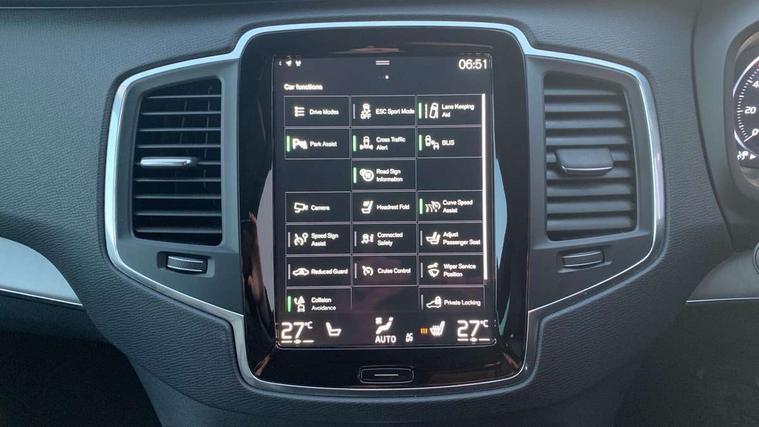 12.3" Active TFT crystal driver's instrument display, 9" centre console portrait touch screen, Adjustable steering wheel force, Bluetooth hands free telephone connection, Drive mode settings, Driver alert control with lane keeping aid, Driver assistance (pilot assist and adaptive cruise control), Driver awareness - Blind spot information system with steer assist, cross traffic alert with autobrake and rear collision warning and mitigation, Emergency call service, Front and rear park assist, Handsfree power tailgate opening and closing, Oncoming Lane Mitigation, Remote engine start, Sensus navigation with European mapping and traffic information, Service interval indicator, Speed limiter, Speed sensitive steering, Trip computer, Voice activated control for key functions, Volvo on call, 8 speed automatic transmission with start/stop + manual change functions, All wheel drive system, Touring chassis, DAB Radio (Digital Audio Broadcasting), Steering wheel remote infotainment controls, Adaptive brake lights with high level LED brake lights, Auto dimming interior + exterior mirrors, Automatic headlight levelling system, Automatic LED Headlights + Active high beam incorporating daytime running lights, Body colour bumpers, Chrome window surround, Colour coordinated auto folding and heated power door mirrors, Dual integrated exhaust pipes, Front and rear power windows, Home safe and approach lighting, Integrated roof rails in silver, Piano black waterfall front grille, Puddle lights, Rain sensor with automatic windscreen wiper activation, Rear side wing doors, Rear wash/wipe with intermittent wipe setting, Roof antenna, Roof spoiler, Visible VIN plate, 12V socket front tunnel console, rear passenger compartment and cargo area, 2 seat bench in 3rd row, 3 seat bench in 2nd row, 3 spoke tailored leather steering wheel with chrome trim in off- black, A-pillar parking ticket holder, B Pillar ventilation, Blond headlining, Bright metal luggage threshold, Cargo divider with grocery bag holder, Centre console cupholders and storage, Driver's side lower dashboard storage compartment, Floor mats, Front and rear aluminium tread plates, Front footwell and side step illumination, Front headrests, Front seat cushion extensions, Heated front seats, Height/reach adjustable steering column, Illuminated luggage compartment, Illuminated vanity mirrors + ticket holder, Illumination lockable glovebox compartment, Leather faced upholstery, Load protection net, Lower dashboard, tunnel console, Lower door panel in blond, Outboard armrest with cupholder and storage for third row passengers, Power driver seat with multi directional lumbar support and memory for seat and exterior mirrors, Power folding 2nd row headrests, Power passenger seat with multi directional lumbar support and memory, Rear headrests, Semi automatic load cover, Single front passenger seat, Underfloor cargo storage, 7 three point seatbelts, City safety includes pedestrian, cyclist and large animal detection and front collision warning with full auto brake, Drivers knee airbag, Dual stage driver/passenger airbags, First aid kit, Front seats SIPS airbags, Hill descent control, Hill start assist, IC (Inflatable Curtains) - Full Length, Passenger airbag cut-off switch, Power parking brake with auto hold function, Road sign information display, Run off Road Mitigation, Run off Road Protection, Seatbelt reminder and pretensioners for all seats, SIPS (Side Impact Protection System), Slippery road and hazard light alert, Stability and Traction Control with Spin control, Engine Drag Control and Corner Traction Control, Tyre pressure monitoring system, Vehicle deceleration control with Anti-lock Brake System, Electronic Brake Distribution and Emergency Brake Assist, Warning triangle, WHIPS whiplash protection system - front, Anti-theft alarm including immobiliser/volume sensor + level sensor, Care key with user defined top speed, Key integrated remote control central locking + fuel flap with deadlocking system and auto open/close power windows, Keyless drive (includes keyless entry and keyless start) with remote tag, Locking wheel nuts, Private locking for glovebox and tailgate, Iron ore inlays, Tempa spare wheel and jack,