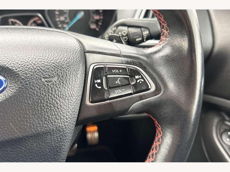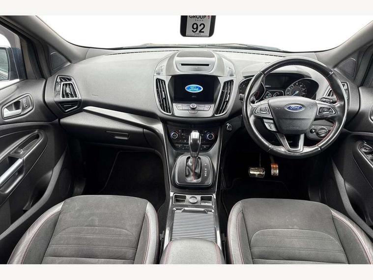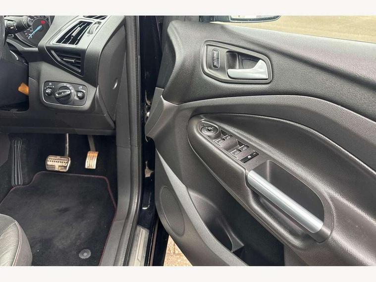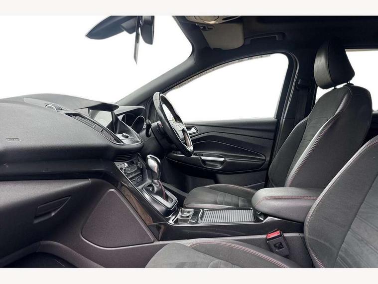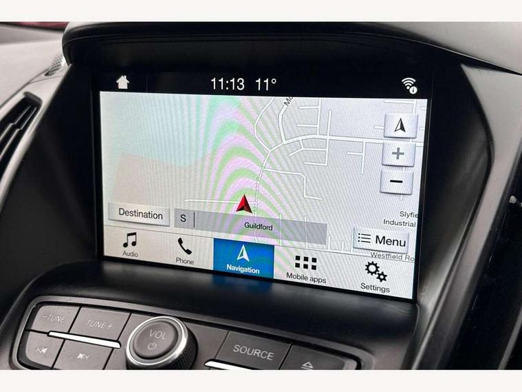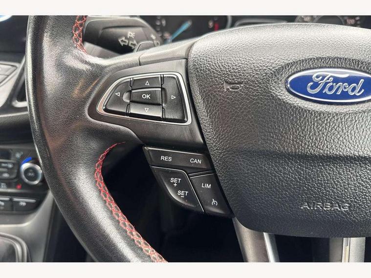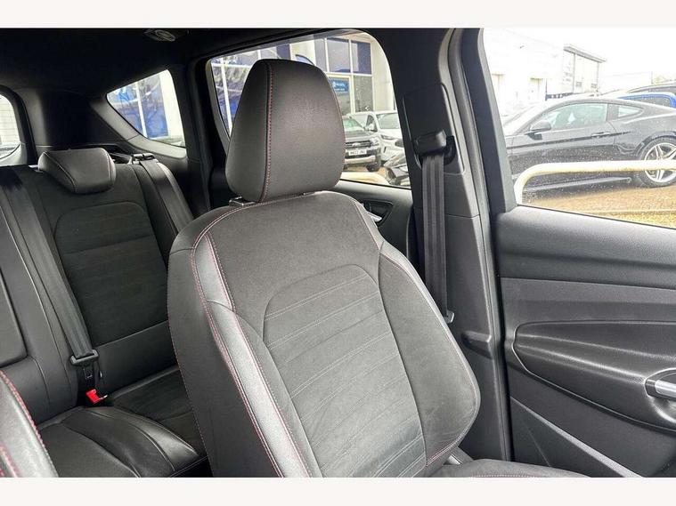 Bluetooth system, Enhanced active park assist including perpendicular parking pull out assist, flank guard and front/rear parking sensor, EPAS, Rear parking sensor, SYNC Emergency Assistance, Trip computer, Sports suspension, Auxiliary socket for external device, Remote audio controls on steering wheel, USB connection, Auto dimming rear view mirror, Automatic headlights, Black roof rails, Body colour bumpers, Body colour front/rear/side skirts, Body coloured wheel arches, Body styling kit, Door claddings, Electric folding mirrors, Electric panoramic glass sunroof, Electrically heated door mirrors, Front scuff plate, Halogen headlights, High gloss black mesh grille, LED daytime running lights, Power front and rear windows, Quickclear heated windscreen, Rain sensor windscreen wipers, Silver rear diffuser trim, Silver skid plates, Tailgate wash/wipe, Twin exhaust pipes, 10 way electric adjustable drivers seat, 6 way manually adjustable passenger seat, 60/40 split/folding rear back and cushion, Alloy Foot Pedals, Auxiliary power socket in luggage area, Centre console with stowage tray/bottle holder/CD stowage/front and rear 12V power point, Dark headlining, Dinamica/Leather Upholstery, Driver seat lumbar adjustment, Driver/passenger front seatback pockets, Dual electronic automatic temperature control, Floor mats with red stitching, Folding rear centre armrest, Footwell courtesy lights front and rear, Front head restraints, Front overhead courtesy lights with theatre style dimming and delay, Front/rear reading lights, Gearshift paddles, Heated front seats, Isofix system on outer rear seats, Leather gearknob, Leather steering wheel with red stitching, Passenger lumbar support, Reach + rake adjustable steering column, Rear floor mats, Rear head restraints, Sports style front seats, Stowage unit in upper instrument panel, Tie down hooks, Tonneau cover, Variable intensity instrument illumination, 3 point seatbelts on all 3 rear seats, ABS/EBD, Driver and passenger airbags, Driver and passenger side airbags, Electric traction assist system, Electronic parking brake, ESP+EBA, Front and rear curtain airbags, Hill start assist, Intelligent Protection System (IPS), Tyre pressure monitoring system, Immobiliser, Keyless entry system with hands free boot opening, Keyless start, Locking wheel nuts, Remote central locking, Thatcham Cat.1 alarm, 19" 5x2 spoke black alloy wheels, Mini steel spare wheel,