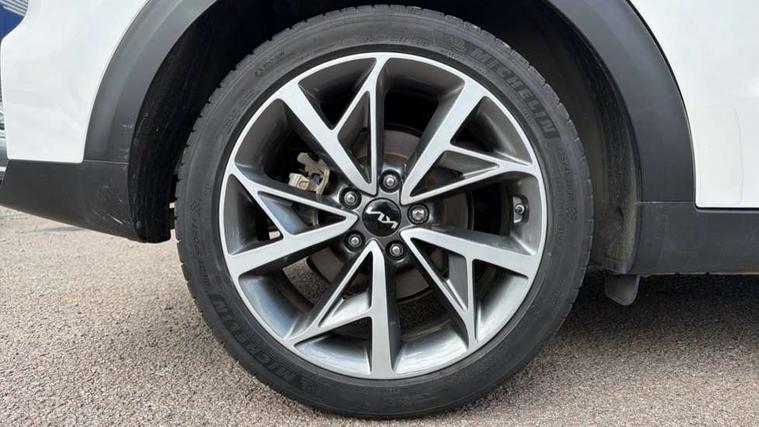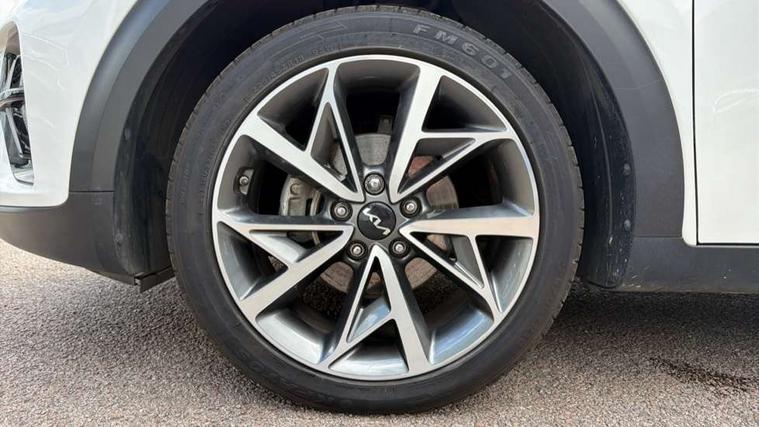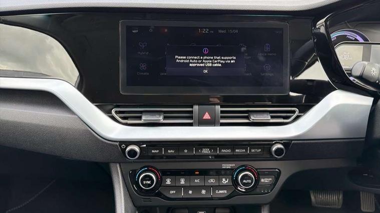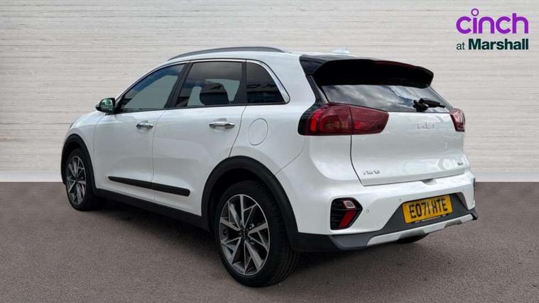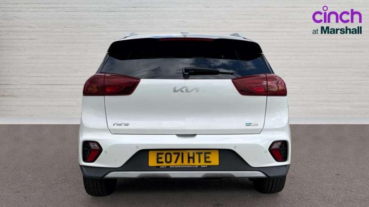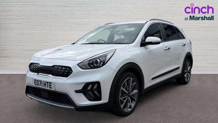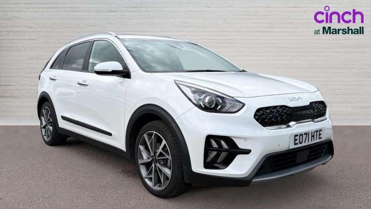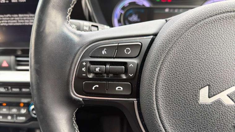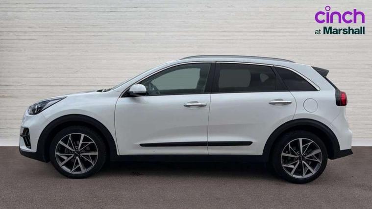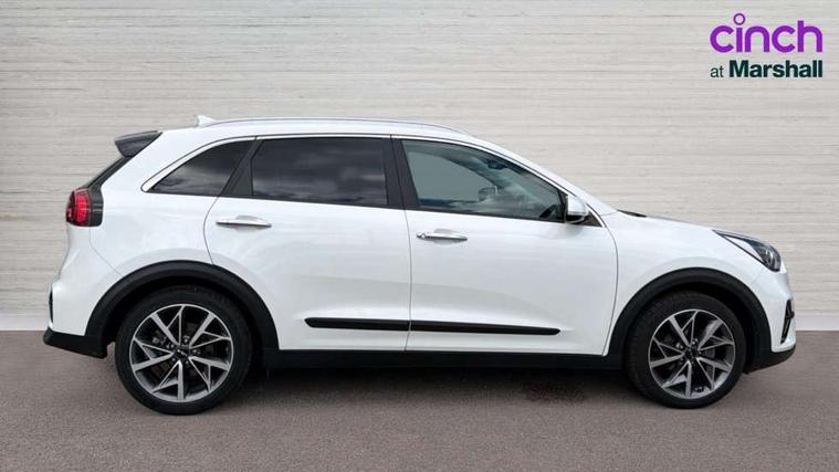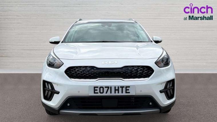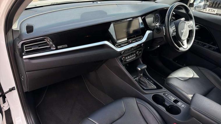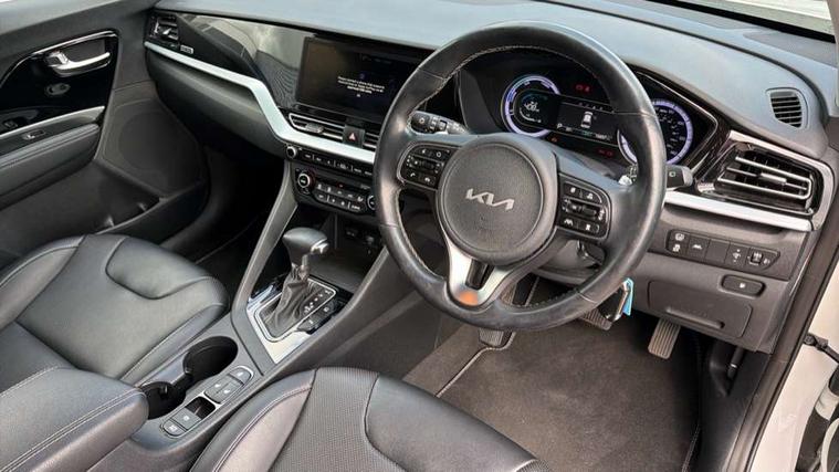 10.25" Touch screen satellite navigation with european mapping and traffic messaging channel, 7" full supervision cluster with TFT colour display, Adaptive smart cruise control function (SCC) with stop and go, Apple car play/Android Auto with voice control, Digital clock, Drive mode selector, Driver attention warning, Emergency stop signalling system, Forward collision avoidance assist, Front parking sensors, Kia connected services featuring TomTom live, Lane Following Assist (LFA), Lane keep assist, Motor driven power steering, Rear parking sensors, Reversing camera, Speed limiter, Trip computer with distance/fuel consumption/average speed, UVO connect, Wireless Smartphone charger, 'Shark fin' mobile antenna, 6 speakers, Bluetooth with music streaming, DAB Radio with MP3, Steering wheel mounted controls, USB connection located in centre console, USB port, All round electric windows with drivers and front passenger auto up/down function, Auto dimming rear view mirror, Automatic defog system, Automatic headlight control system, Black beltline mouldings, Black side sills, Black wheel arch mouldings, Body colour bumpers, Body coloured/high gloss door mirrors, Chrome door handles, Driver's side wide angle mirror, Electrically folding/adjustable/heated door mirrors with LED indicators, LED daytime running lights, LED fog lights, LED rear combination lights, Manual headlight levelling, Matt black radiator grille, Privacy glass - Rear windows and tailgate, Projector headlamps, Rain sensing front wipers, Rear spoiler, Rear wiper, Roof rails, Solar glass, Waistline black paint, Welcome and follow-me home light functionality, 3 x passenger assist grips, 60/40 split/folding 2nd row of seats, 8 way electric adjustable drivers seat, All-round height adjustable headrests, Aluminium door scuff plates, Bulb type overhead console lamp with sunglasses case, Centre console storage box, Centre room lamp, Cupholders in rear armrest, Driver/passenger sunvisors with illuminated vanity mirrors, Drivers seat power lumbar support, Dual zone automatic air conditioning, Front and rear door storage, Front/rear centre armrests, Headlining in Light grey, Heated front seats, Heated steering wheel, High gloss black lower console trim, High gloss black steering wheel trim, Illuminated ignition key hole, Interior door lock/unlock function, ISOFIX Child seat top tethers and anchor fixings, Leather trimmed door armrests, Leather trimmed gearshift, Leather trimmed steering wheel, Leather upholstery, Luggage area lamp, Luggage area load cover, Luggage net with hooks, Passenger seat height adjuster, Satin finish inner door handles, Seatback pocket - driver, Seatback pocket - front passenger, Steering wheel mounted paddle shift, Tilt/telescopic adjustable steering wheel, Under floor storage box, Ventiliation ducts to rear compartment, Towing pack - Niro, 3 point seatbelts on all seats, ABS, Automatic unlocking of doors in case of impact, Drivers knee airbag, Electric parking brake with auto hold function, Electronic stability control, Front passenger airbag cut-off switch, Height adjustable front seatbelts, Hill start assist control (HAC), Traction control, Twin curtain airbags with roll over sensor, Twin front and side airbags, Tyre pressure monitoring system, Alarm system and engine immobiliser, Deadlocks, Locking wheel nuts, Remote central door locking with fold away key, Speed sensitive auto door locking, Visible vehicle identification number, High gloss black centre fascia, High gloss black door inserts, 18" Alloy wheels, Tyre mobility kit,