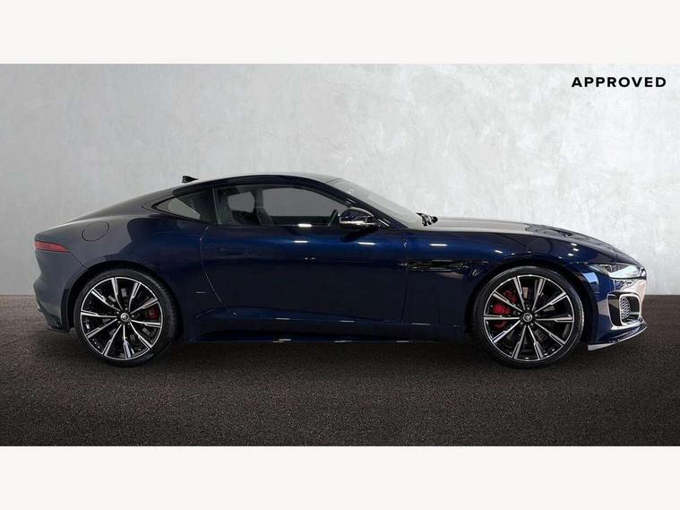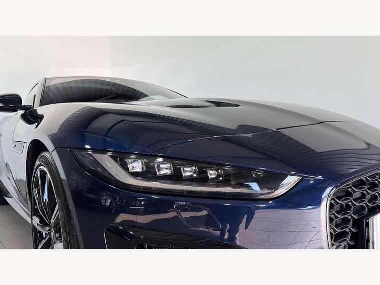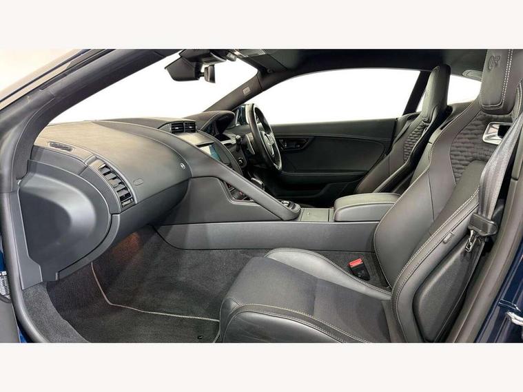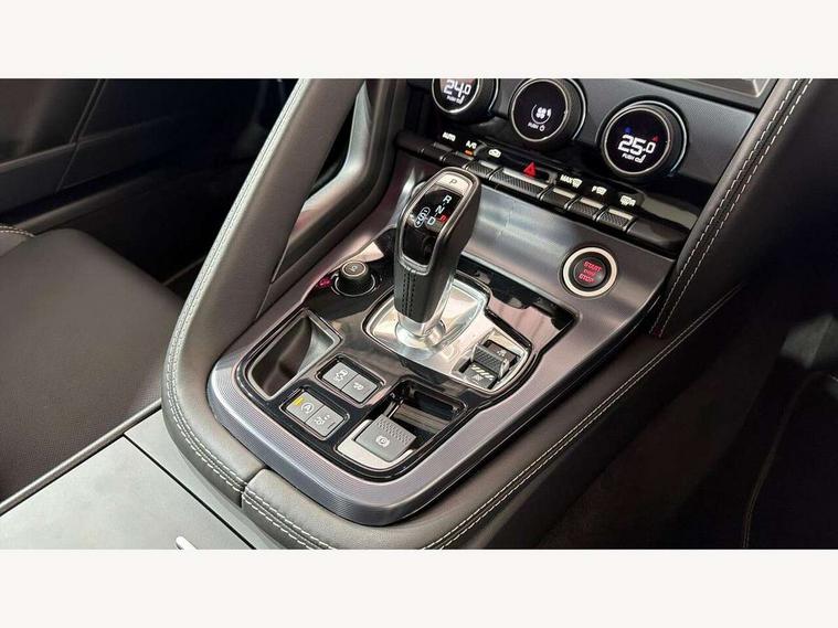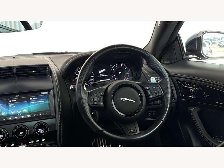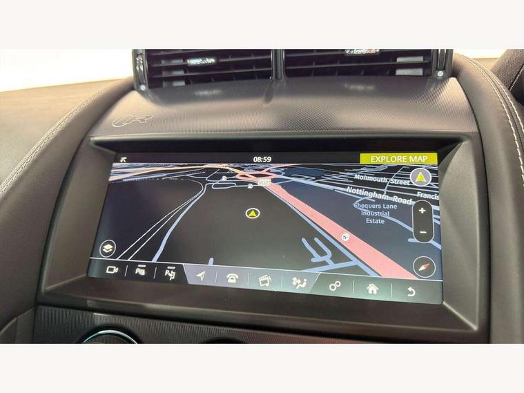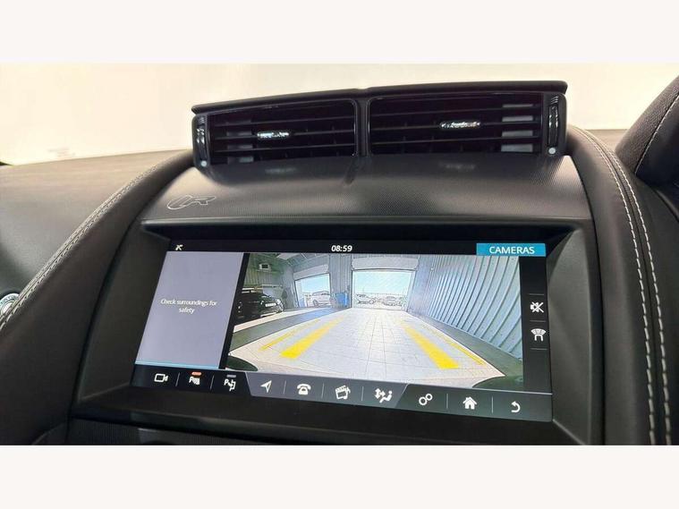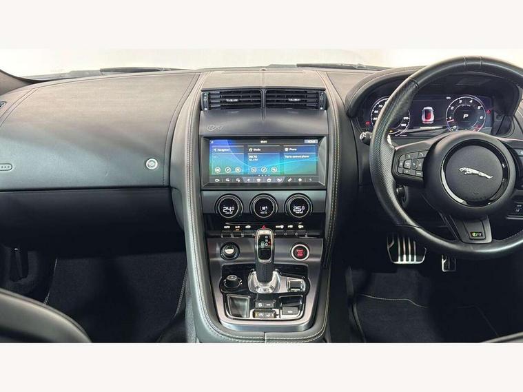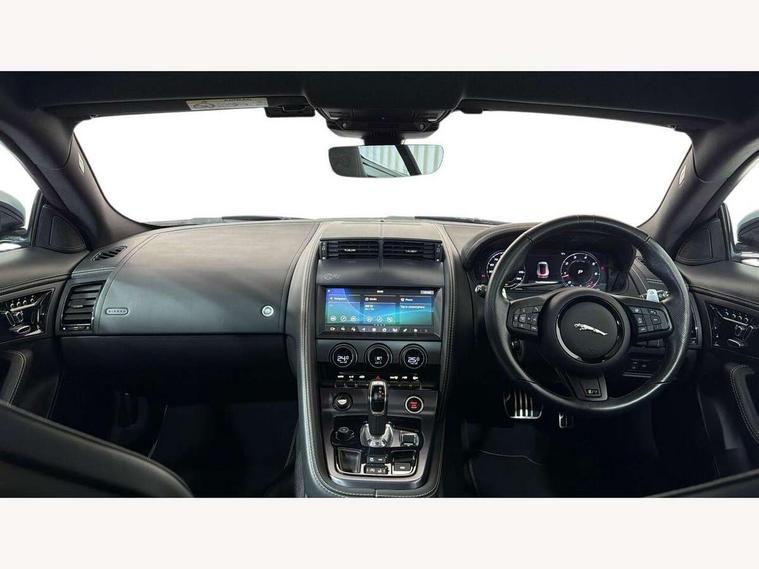 10" touch screen, Android Auto, Apple CarPlay preparation, Bluetooth telephone connectivity, Boot entrapment release lever, Connected navigation pro, Cruise control + speed limiter, Driver condition monitor, Incontrol pro service, InControl remote premium, Interactive driver display, Lane departure warning system, Lane keep assist, PAS, Push button start, Rear view camera, Stop/start system, Traffic sign recognition with adaptive speed limiter, Trip computer, Adaptive dynamics, Configurable dynamic mode, Electronic active differential with torque vectoring by braking, Audio remote control, Digital Audio Broadcast radio-DAB, InControl app, InControl protect, Auto dimming rear view mirror, Auto dimming/power fold heated door mirrors with memory function, Automatic headlights, Body coloured door mirror caps, Deployable boot lid spoiler, Electric front windows, F-Type badge, Flush exterior door handles, Headlight washers, Infra red reflective glass, LED tail lights, Pixel LED headlights with signature DRL, Quad outboard mounted exhaust pipes, R badge, Rain sensing windscreen wipers, Solar attenuating windscreen, Switchable active exhaust, Tinted glass, Bright metal foot pedals, Deployable front air vents, Electrically adjustable steering column with memory, Front centre armrest, Front headrests, Jaguar sense, Low line cubby box, Lumbar support, Memory function for passenger seat, Overhead console, Pollen filter, Power socket, Premium cabin lighting, R performance seats, Rain, Ice and snow mode, Twin front cupholders, USB with 12V socket in centre console, Online pack - F-Type, Smartphone pack - F-Type, 4 airbags in front, Anti-lock braking system (ABS), DSC - Dynamic Stability Control, Electronic brake force distribution, Electronic parking brake, Emergency brake assist, Emergency braking, Front/rear seatbelt pre-tensioners, Pedestrian contact sensing and deployable bonnet, Seatbelt reminder for driver and front passenger, Tyre pressure monitoring system, Deadlocks, Drive away door locking, Engine immobiliser, Keyless entry, Locking wheel nuts, Perimetric and volumetric anti theft alarm, Remote central locking, Two stage unlocking, Valet mode,